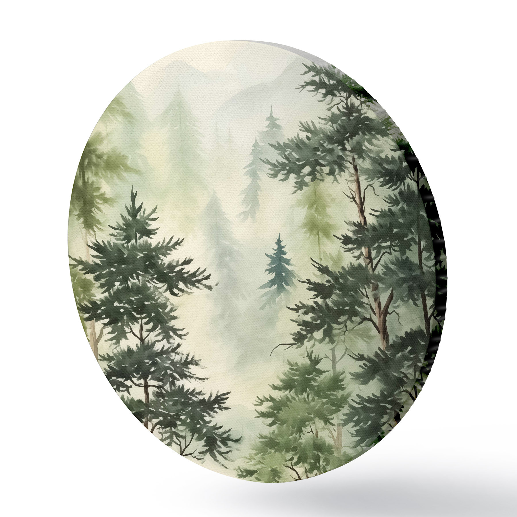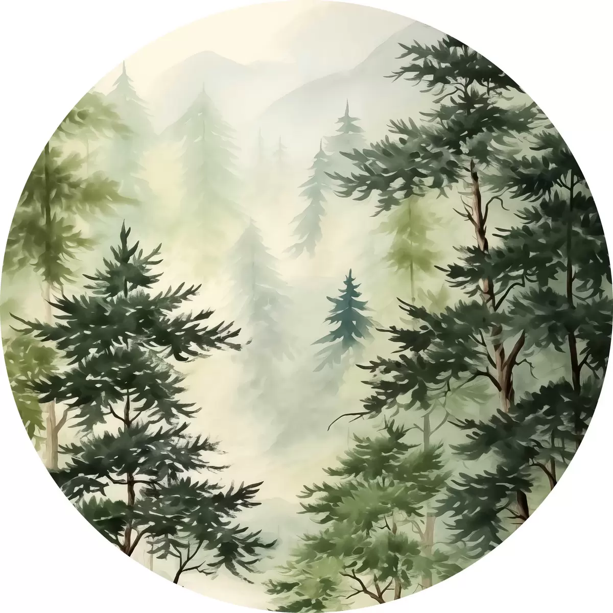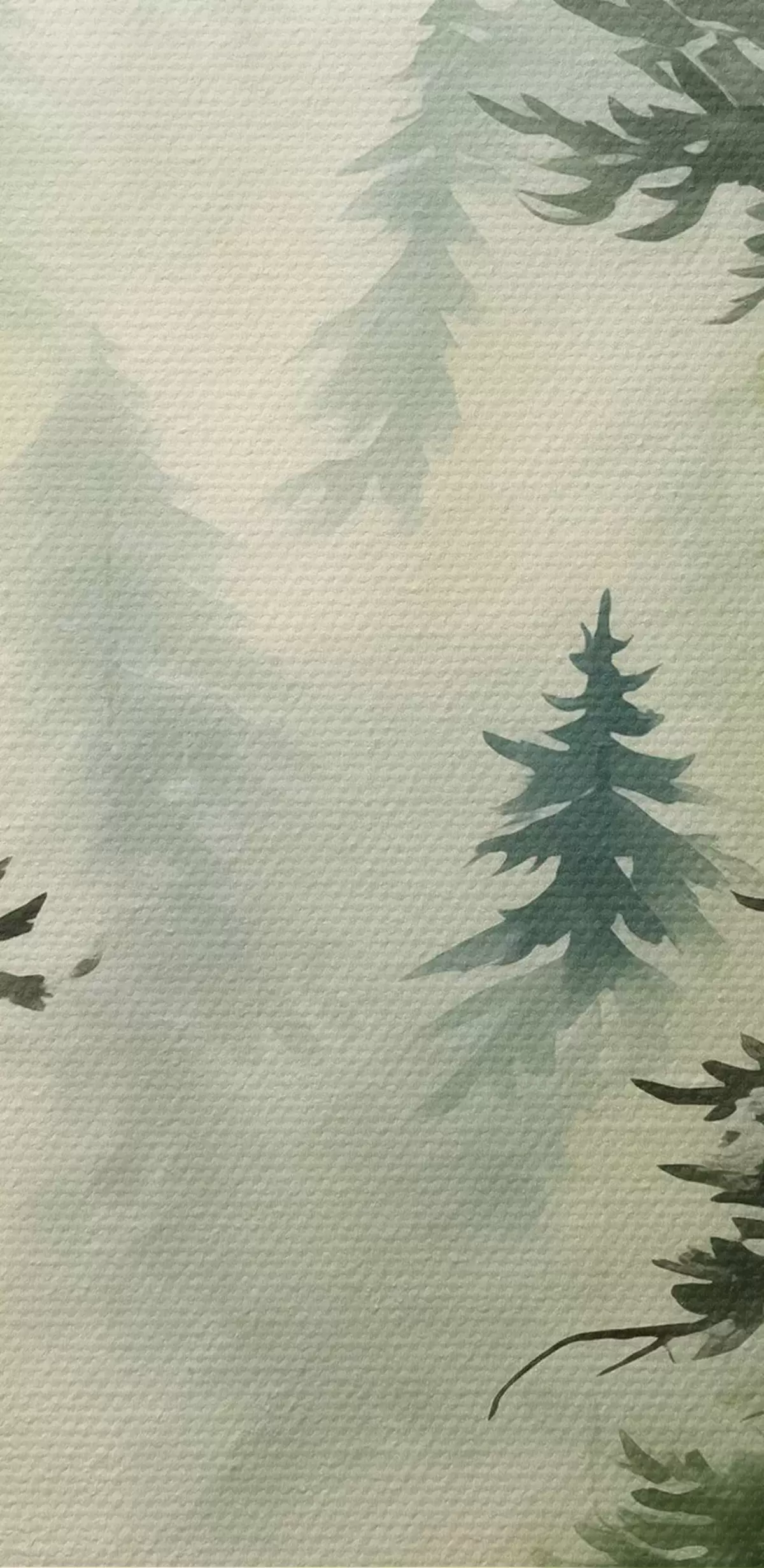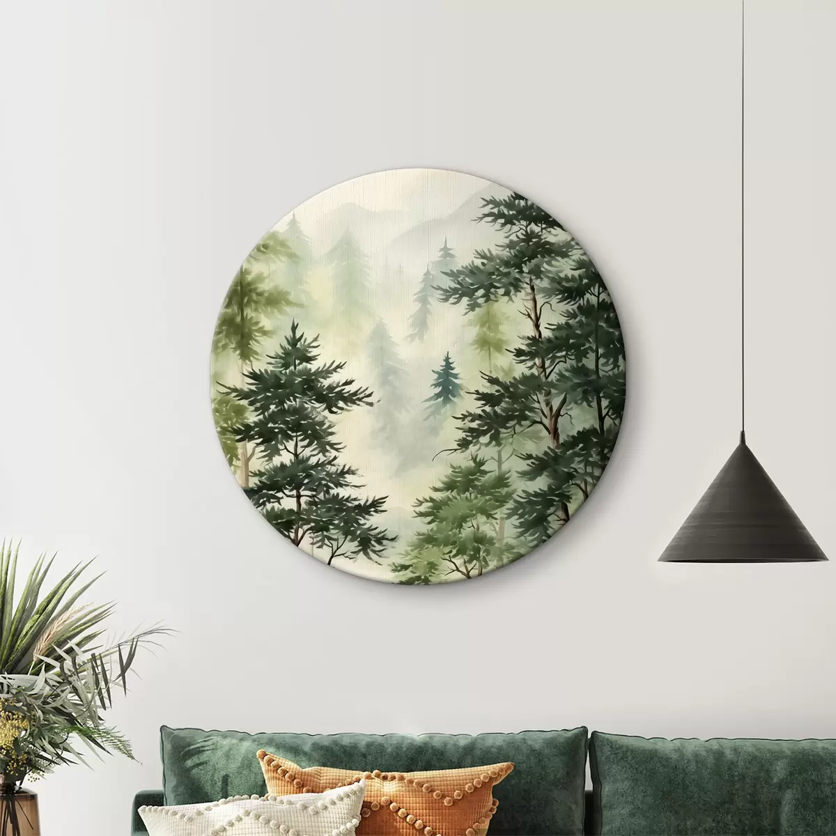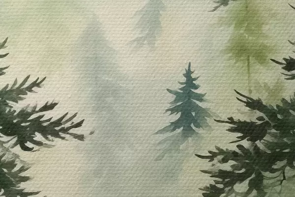 Pilt Kuusepuud metsas mägede taustal, akvarell, roheline Nr r40889
