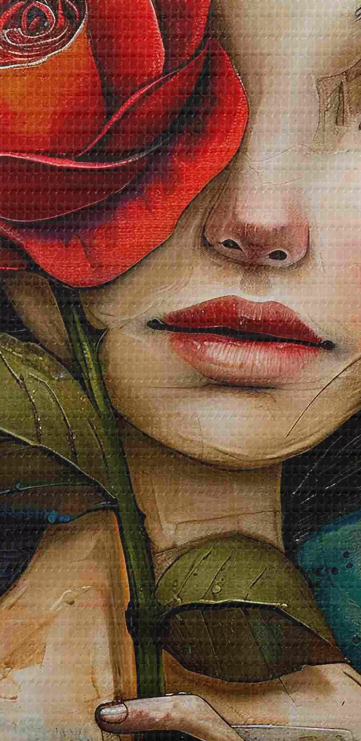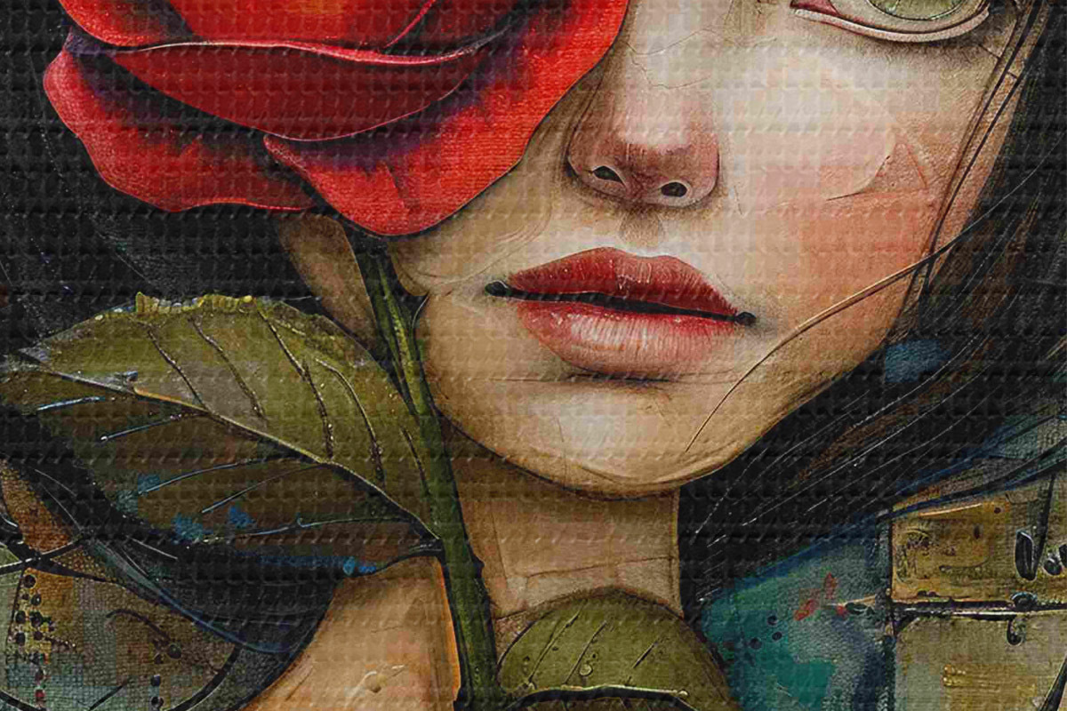 Selle lõuendi peenike niidipunus meenutab professionaalse kunstniku lõuendi pinda.