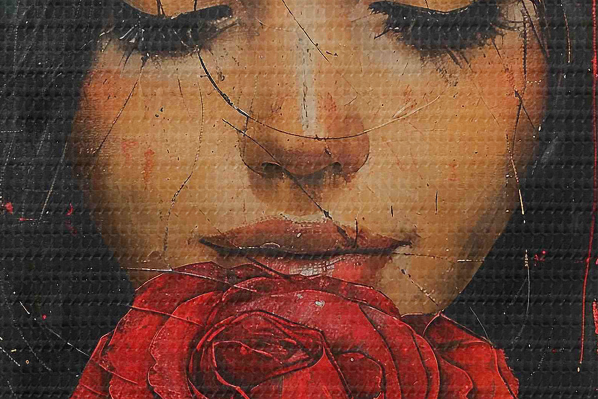 Selle lõuendi peenike niidipunus meenutab professionaalse kunstniku lõuendi pinda.