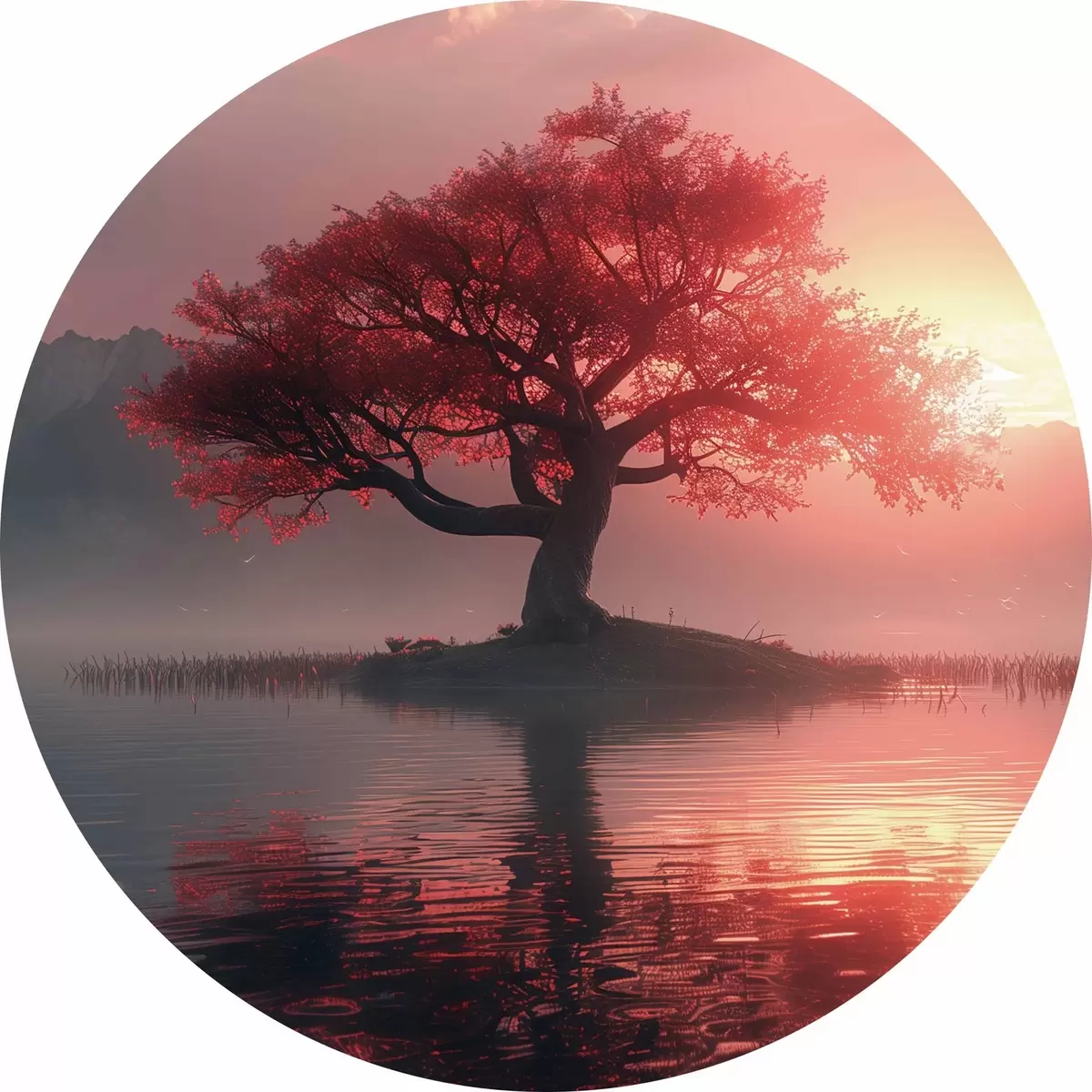 Pilt Puu tiigi ääres päikeseloojangul Nr r40934