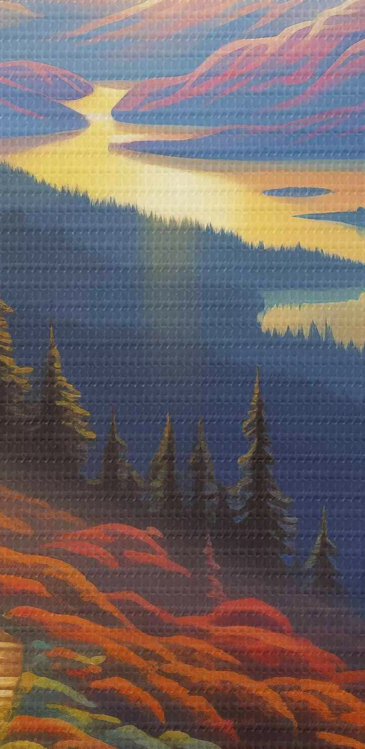 Selle lõuendi peenike niidipunus meenutab professionaalse kunstniku lõuendi pinda.