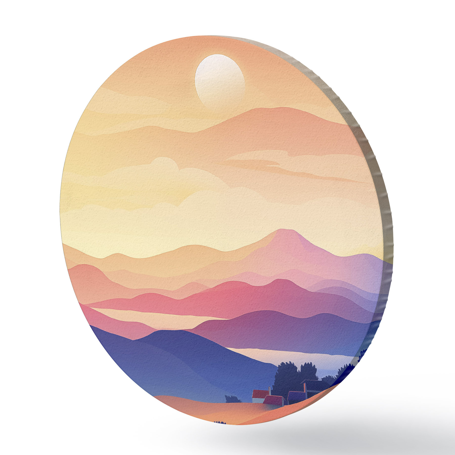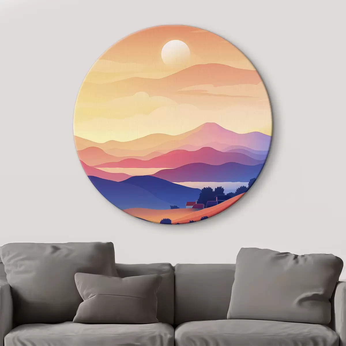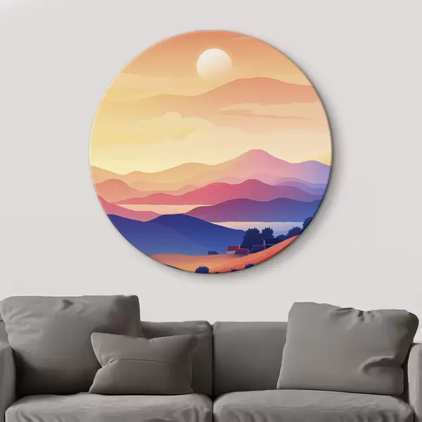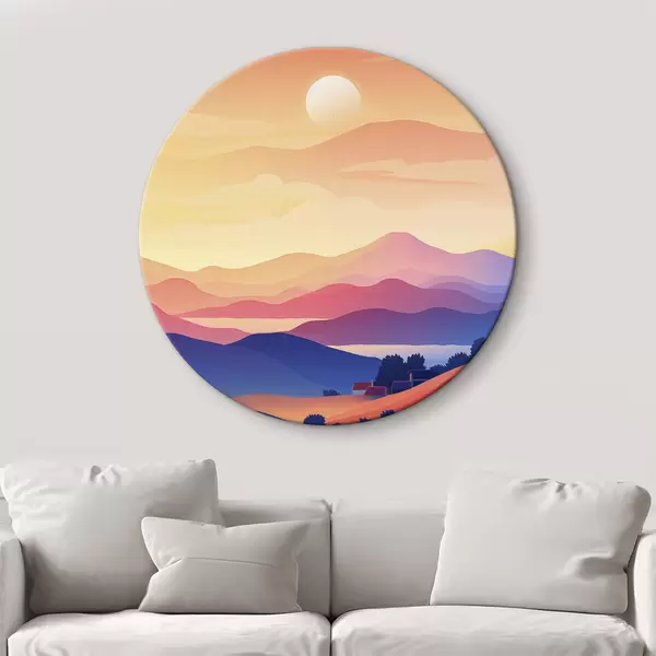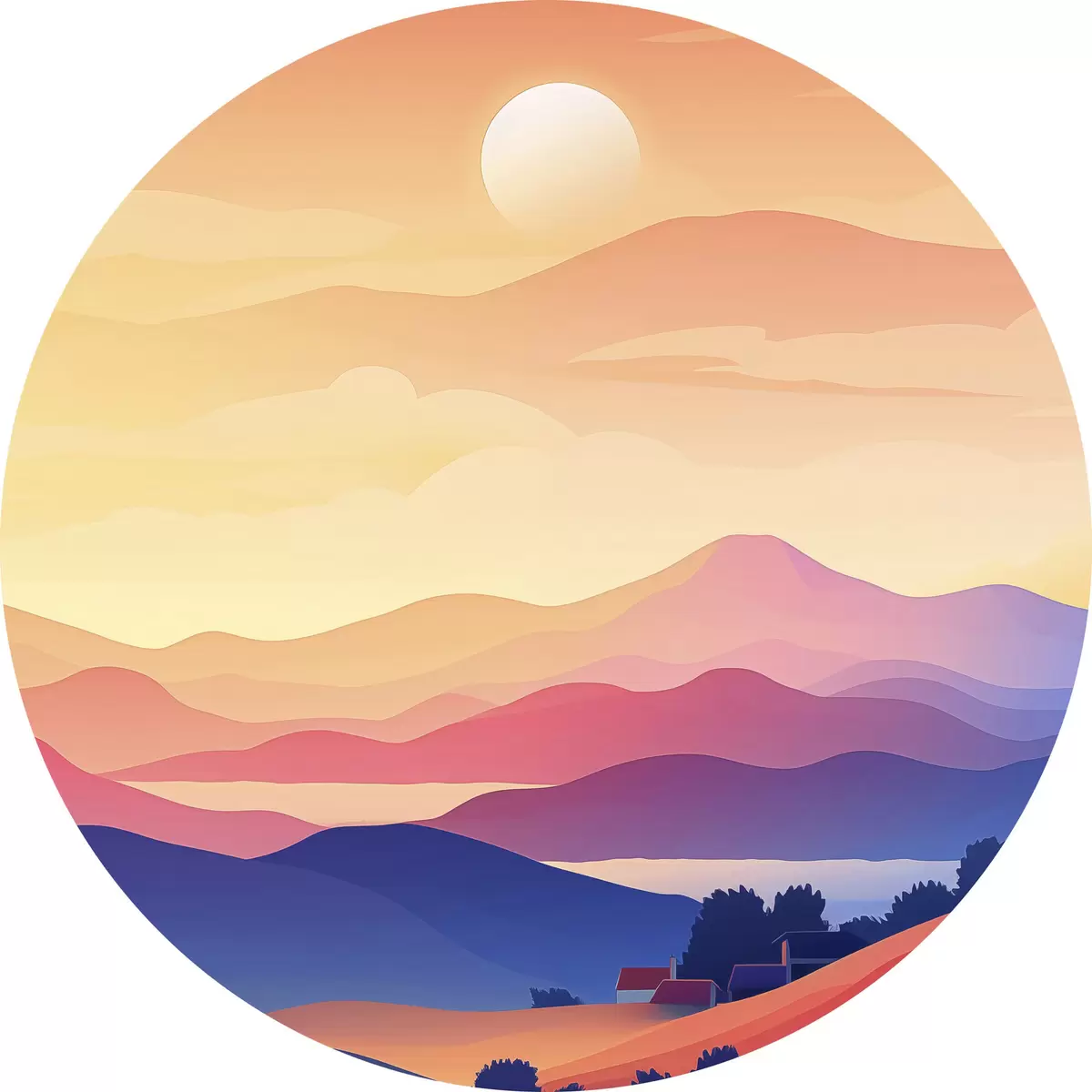 Pilt Abstraktsioon maastikud, mäed, päikeseloojang, majad Nr r40948