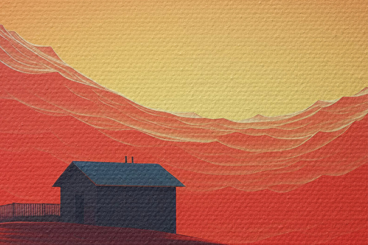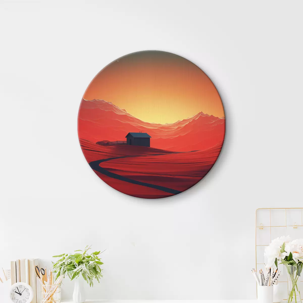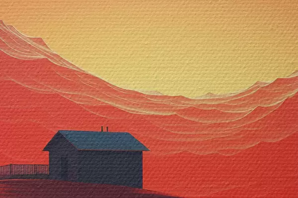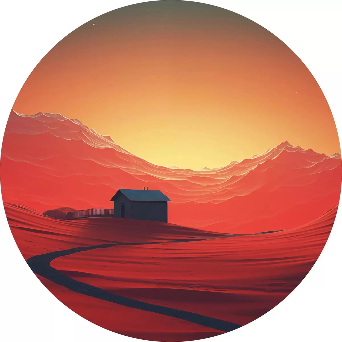 Pilt Öö kõrbes, kuu, punased liivad, futurism, väike maja Nr r40950