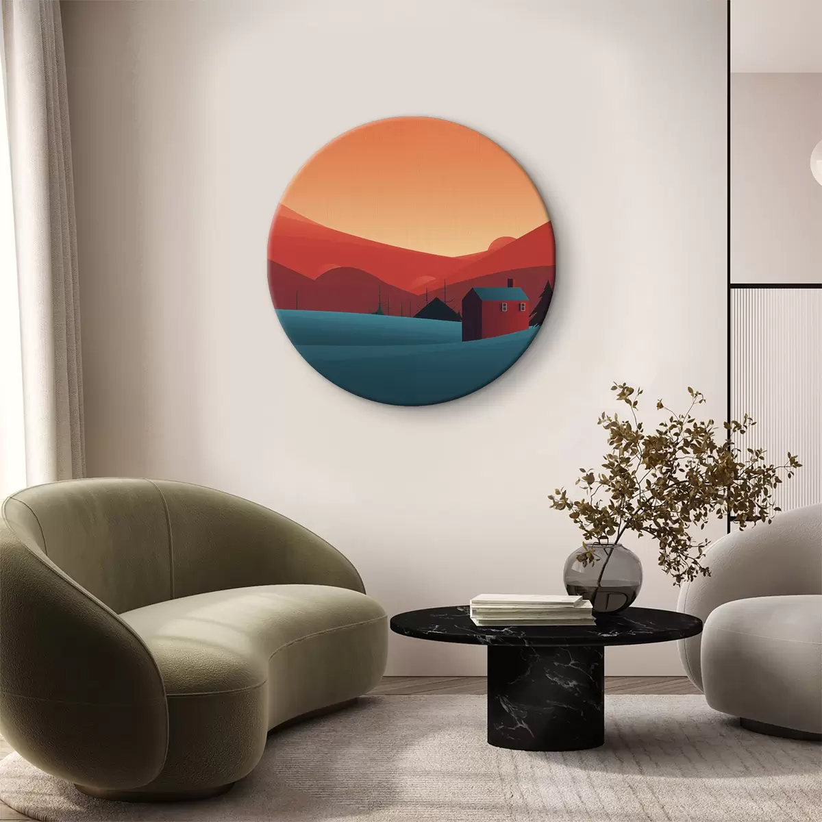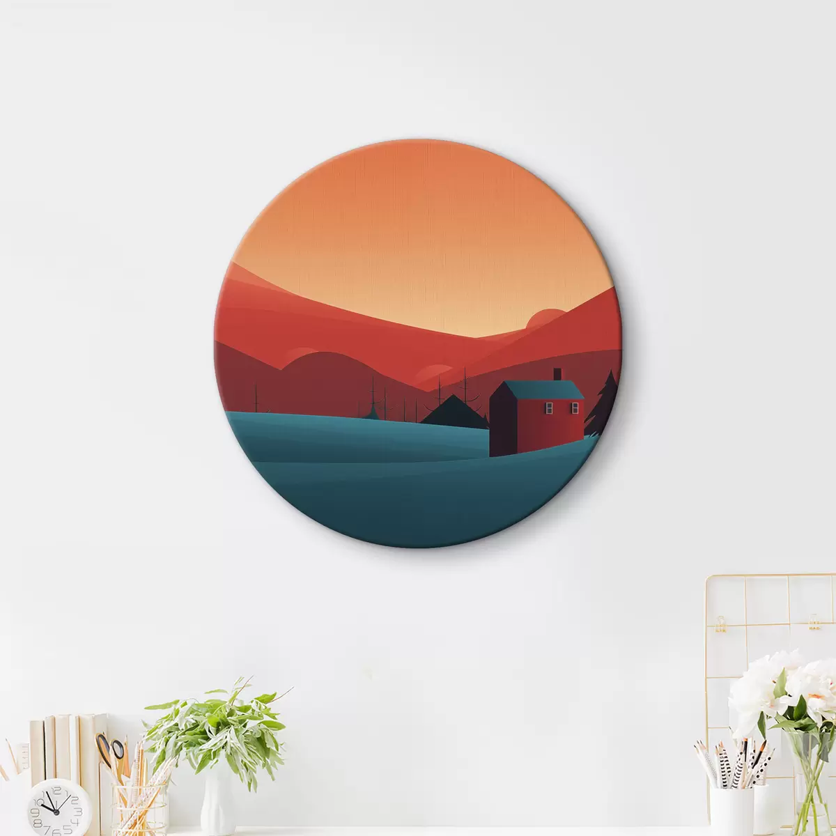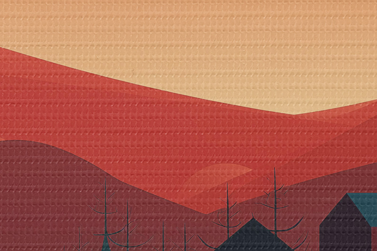 Pilt Minimalistlik maastik maja ja metsaga Nr r40952