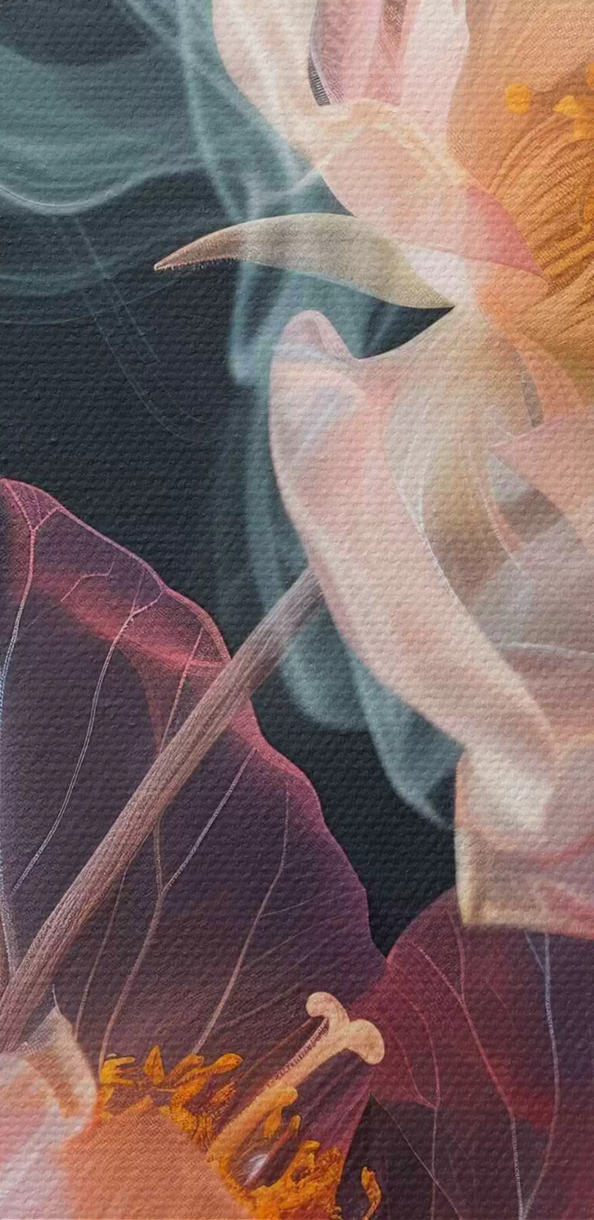Selle lõuendi peenike niidipunus meenutab professionaalse kunstniku lõuendi pinda.