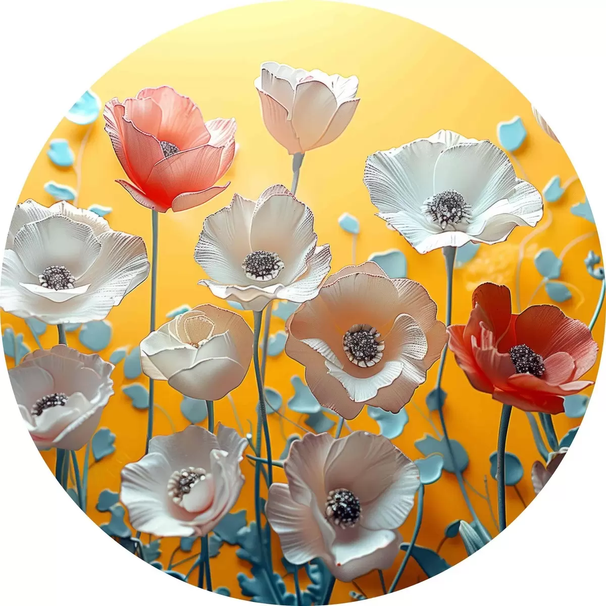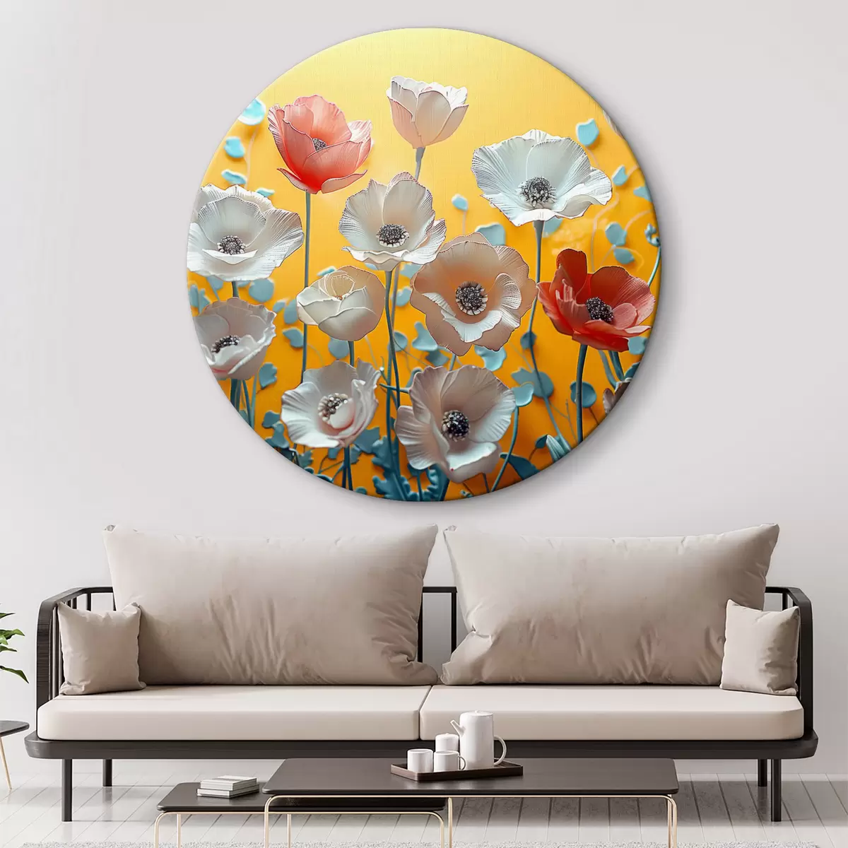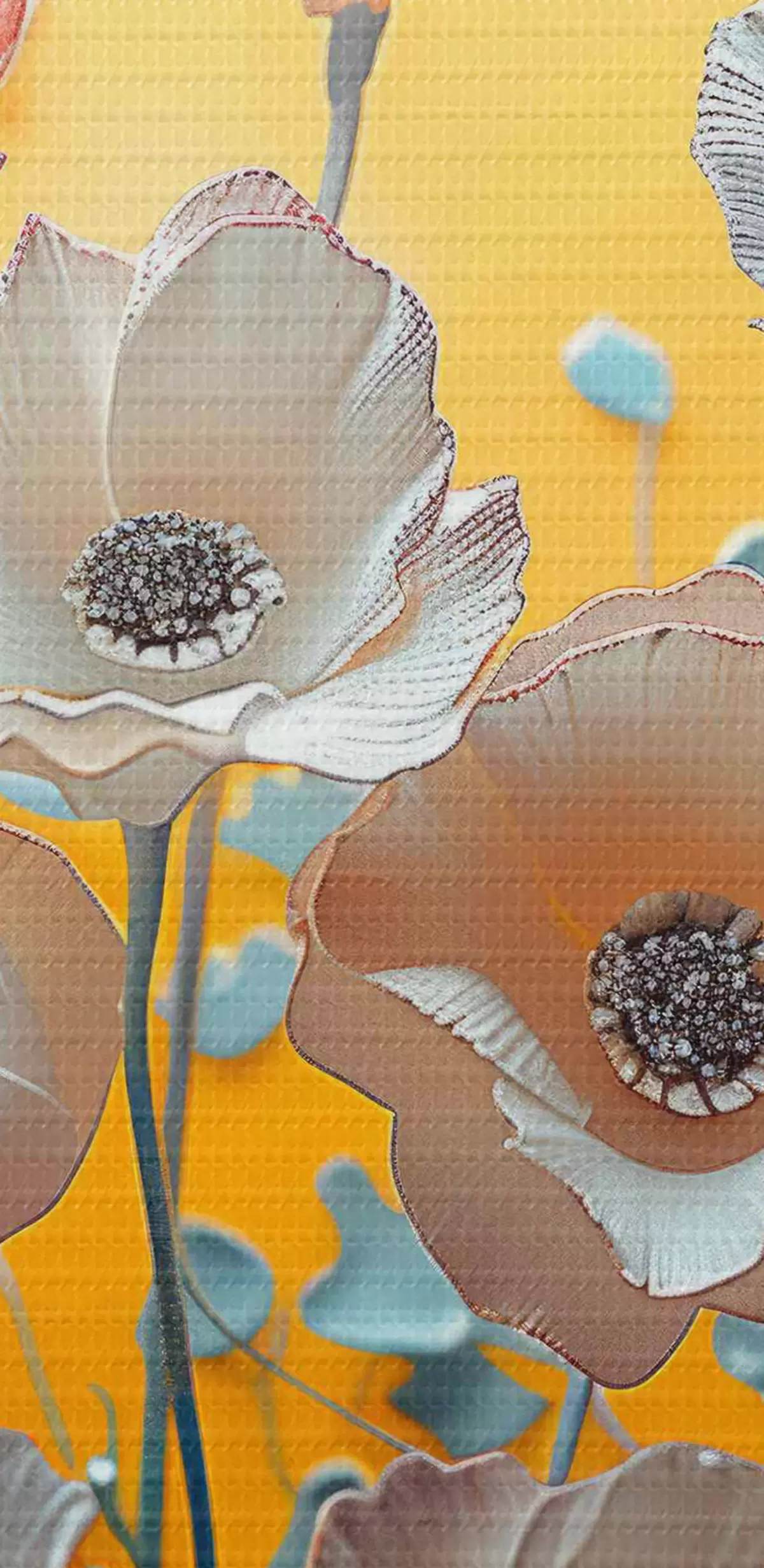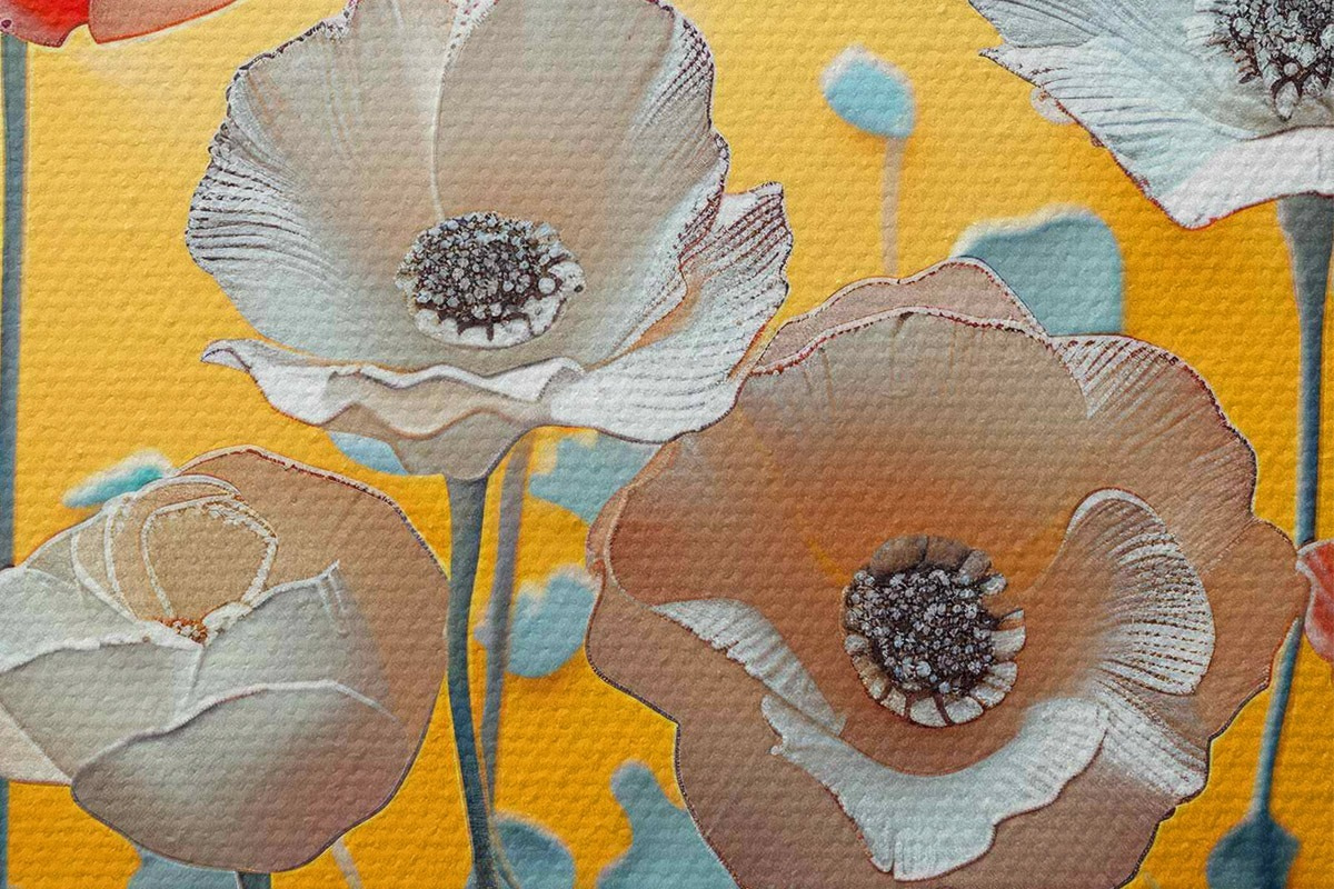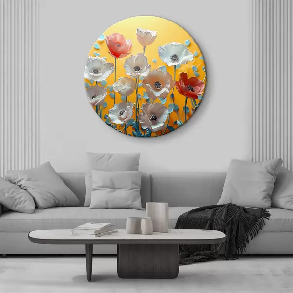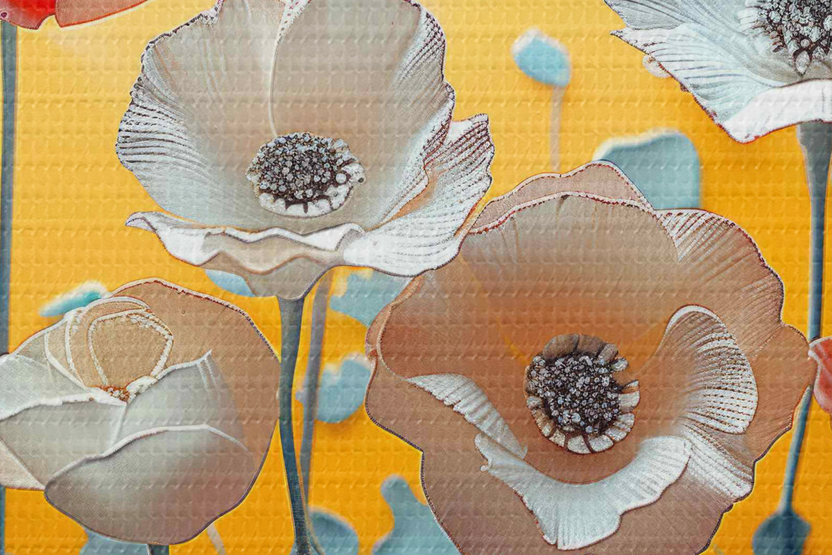 Pilt Valged ja punased pojengid kollasel taustal Nr r40975