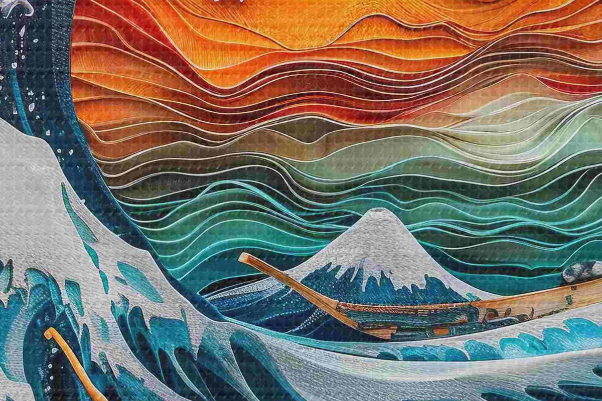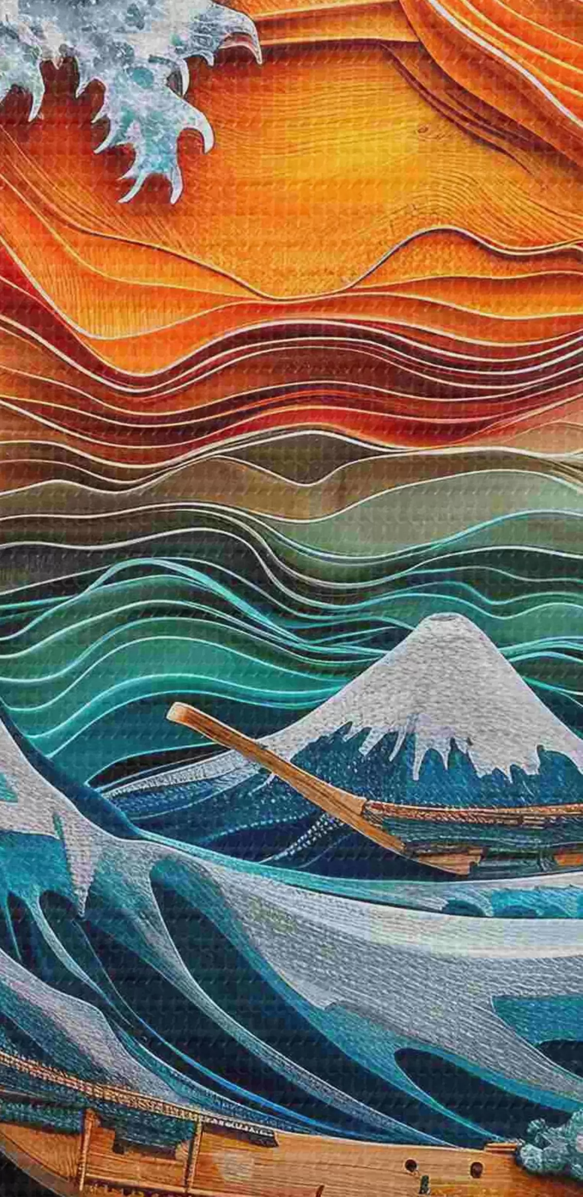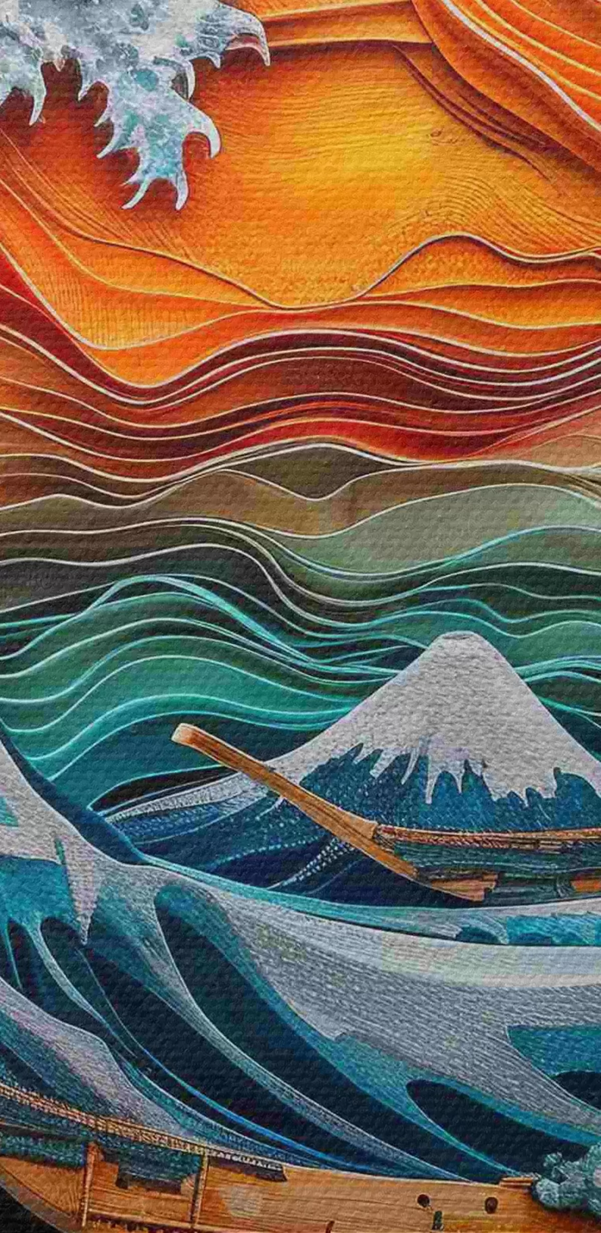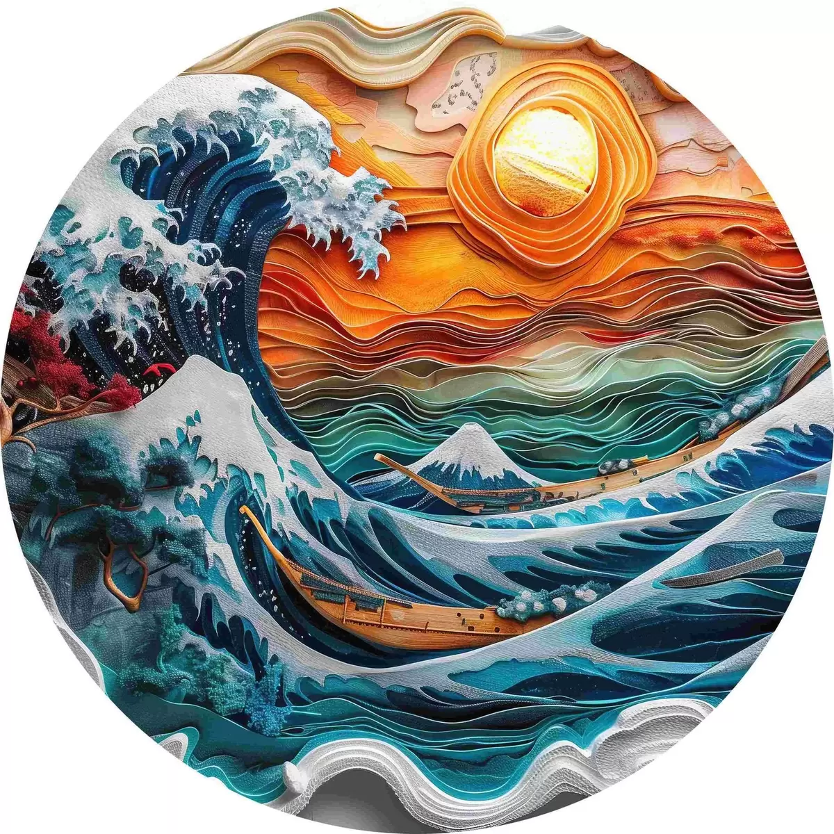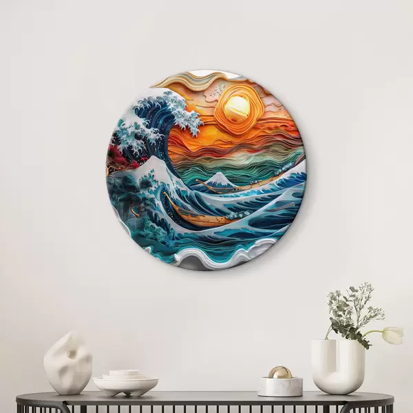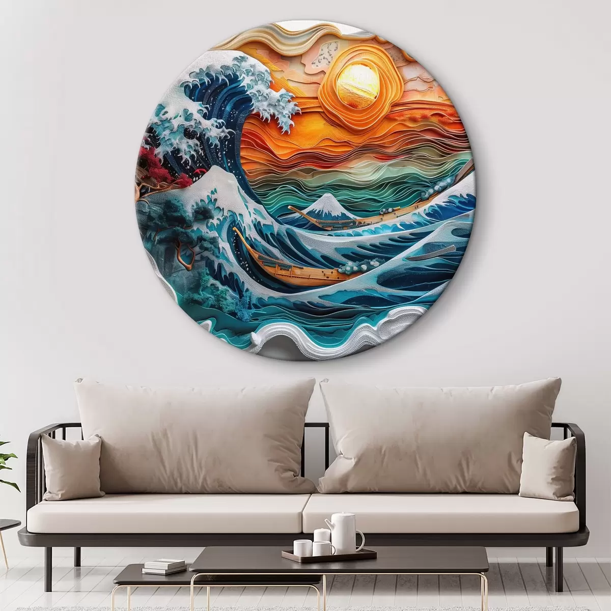 Pilt Baisereljeefi imitatsioon: tormiline ookean koos paatide ja päikesega Nr r40976