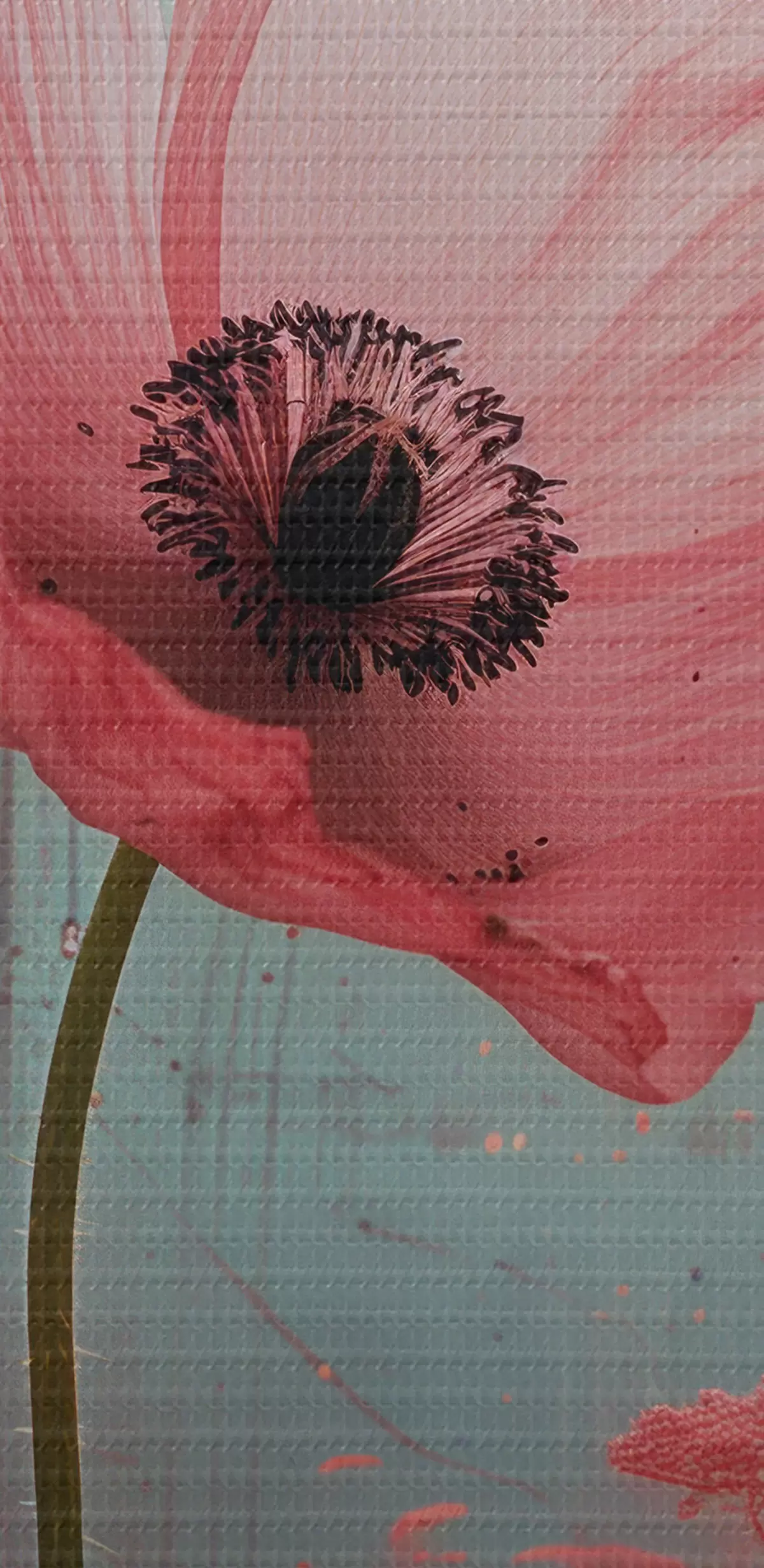 Selle lõuendi peenike niidipunus meenutab professionaalse kunstniku lõuendi pinda.