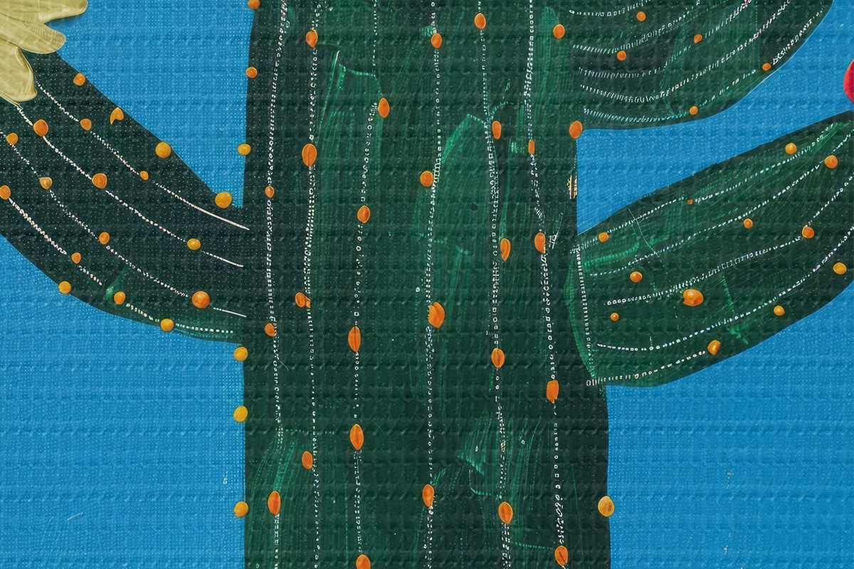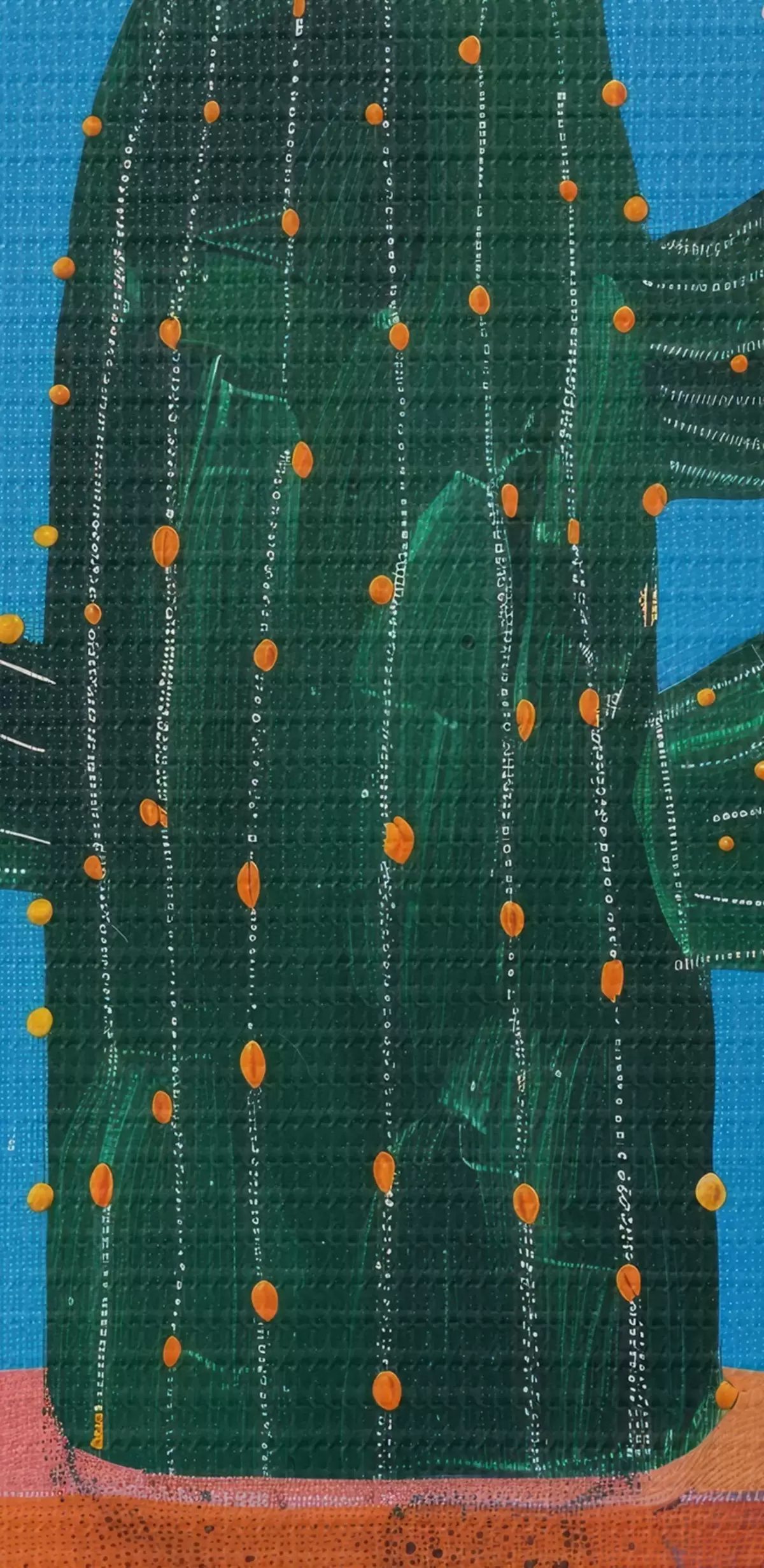 Selle lõuendi peenike niidipunus meenutab professionaalse kunstniku lõuendi pinda.