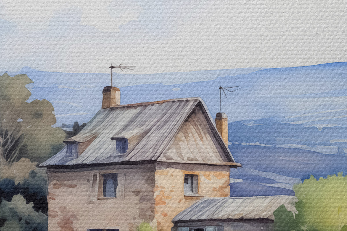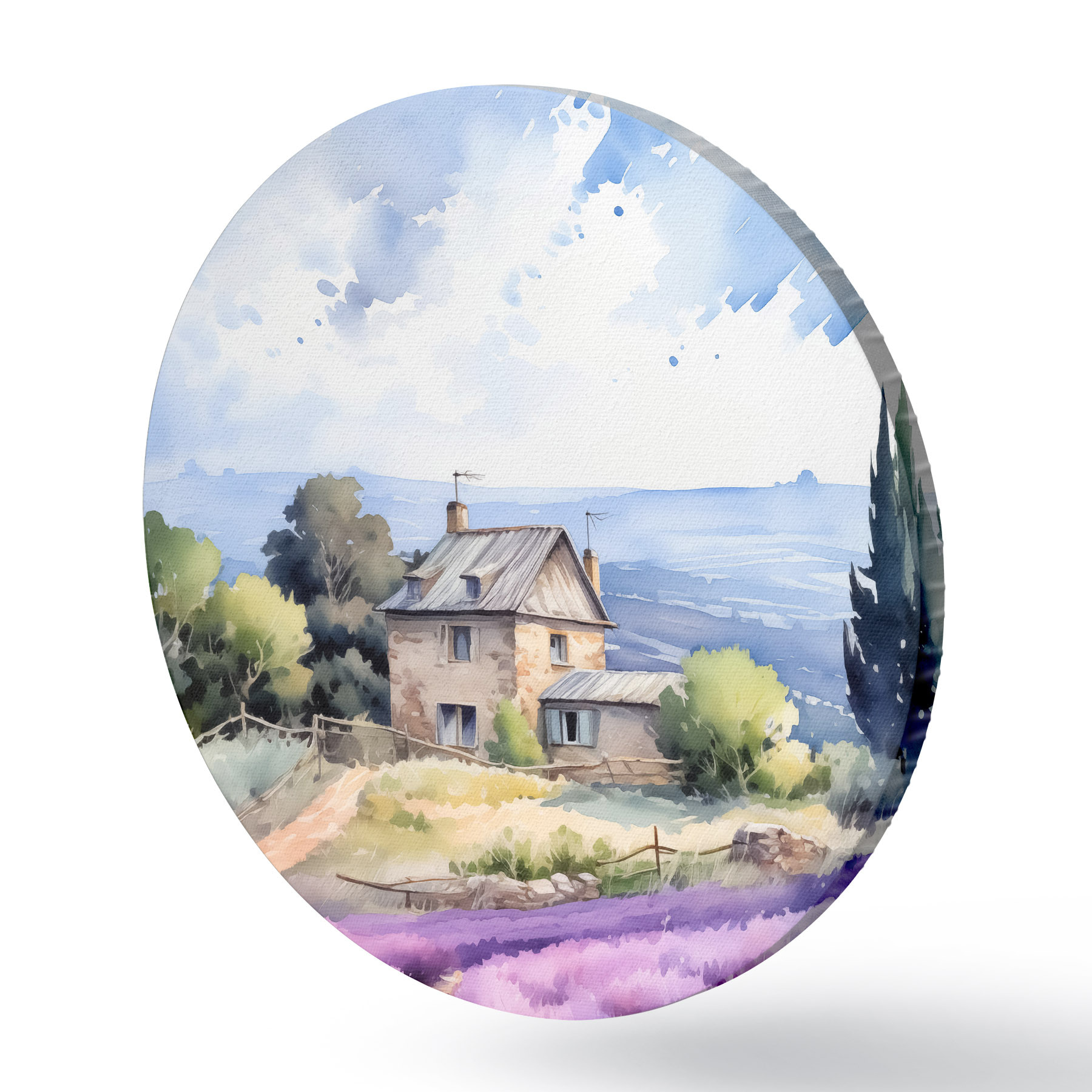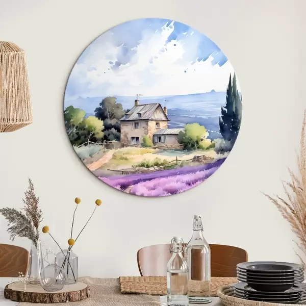 Pilt Maamaja koos mägedega taustal lavendlipõllu lähedal Nr r41012