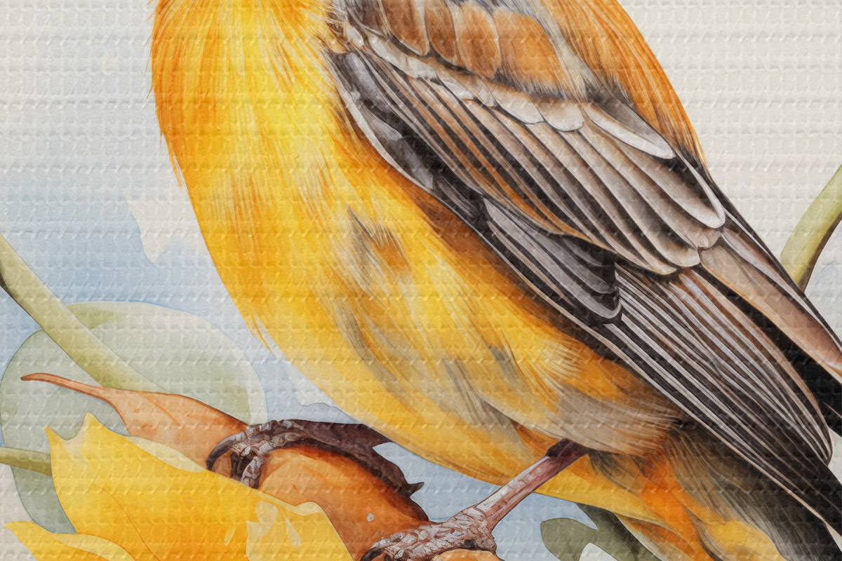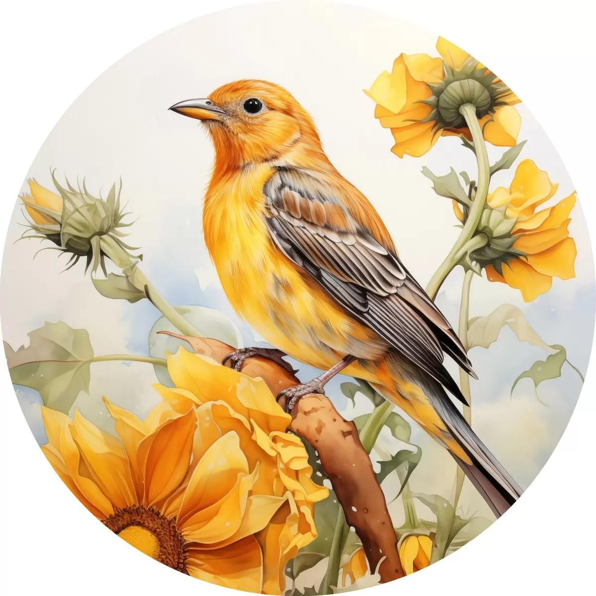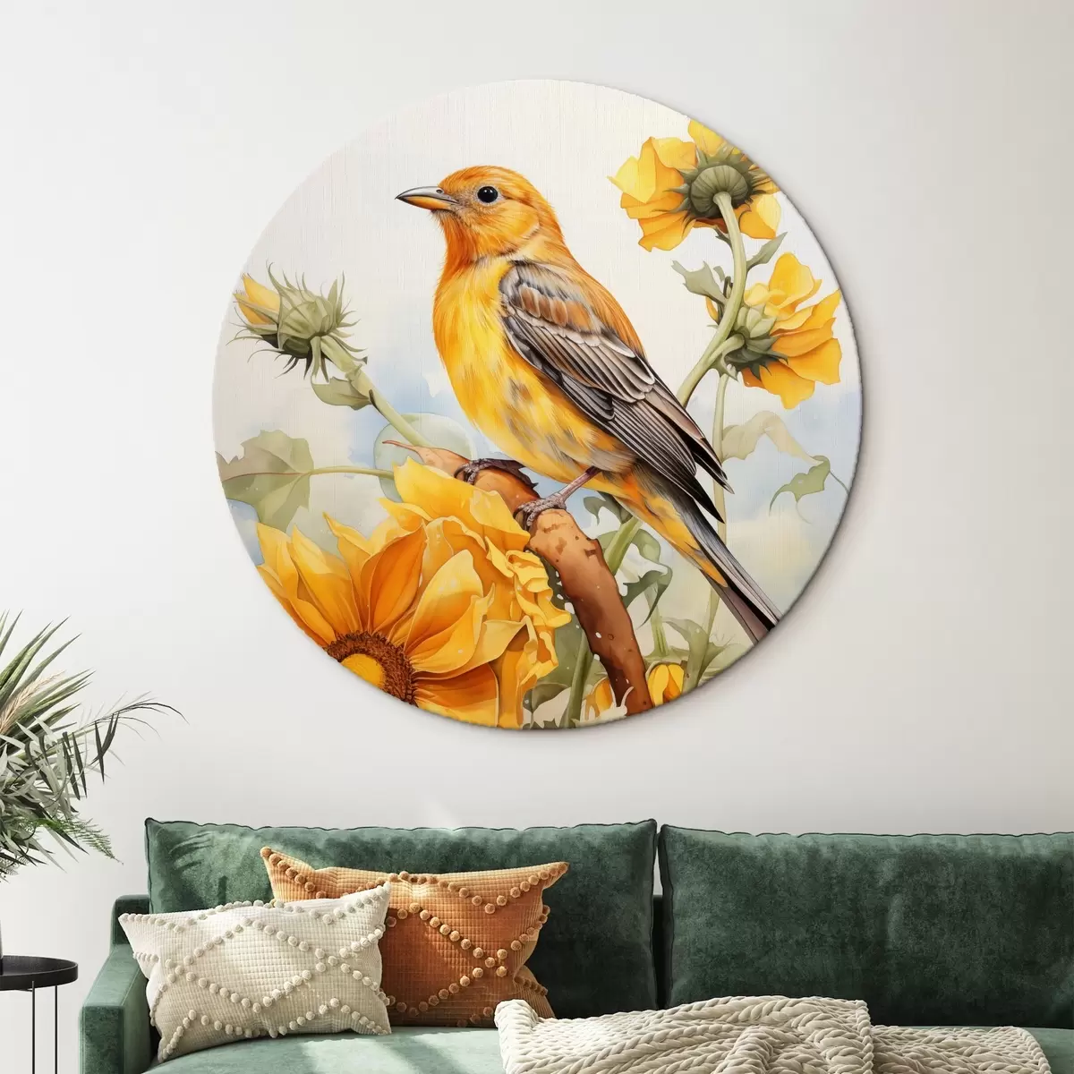 Pilt Kollane lind istub päevalille akvarellil Nr r41015