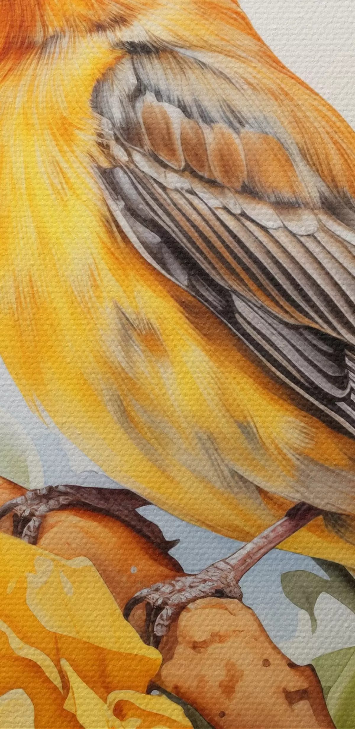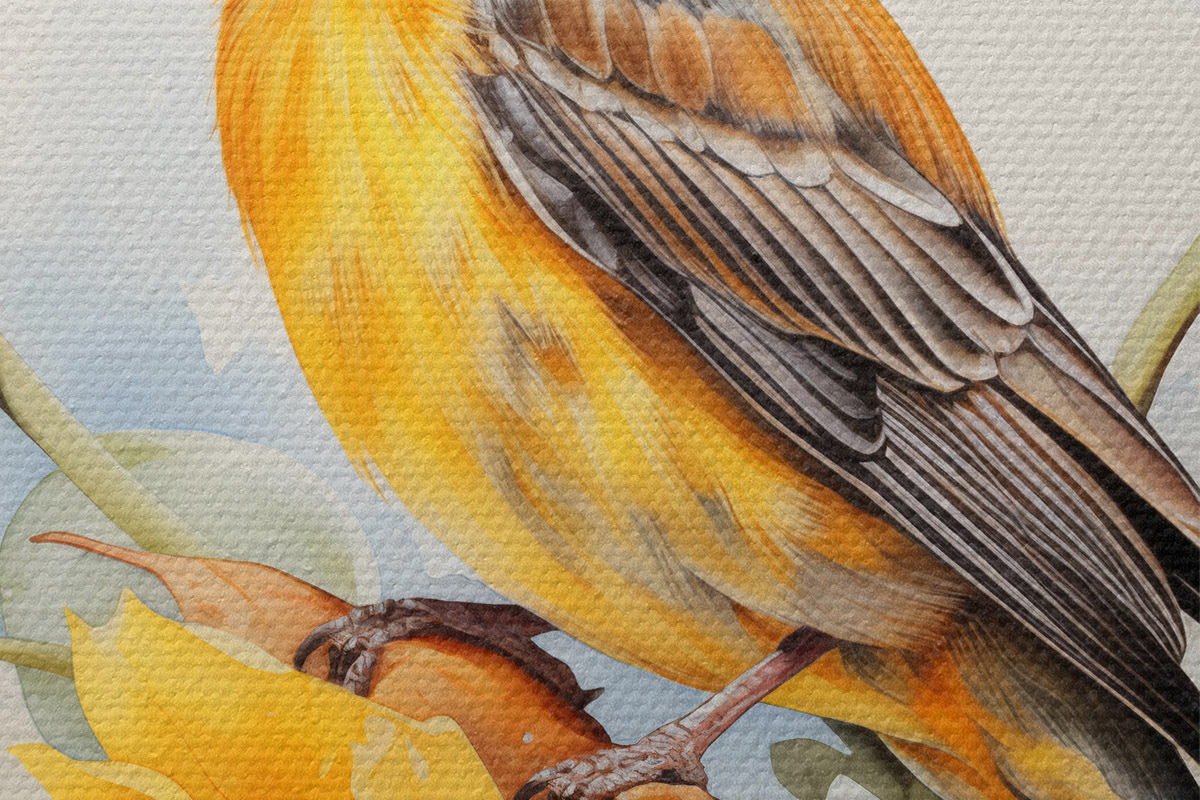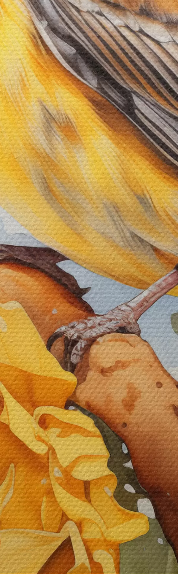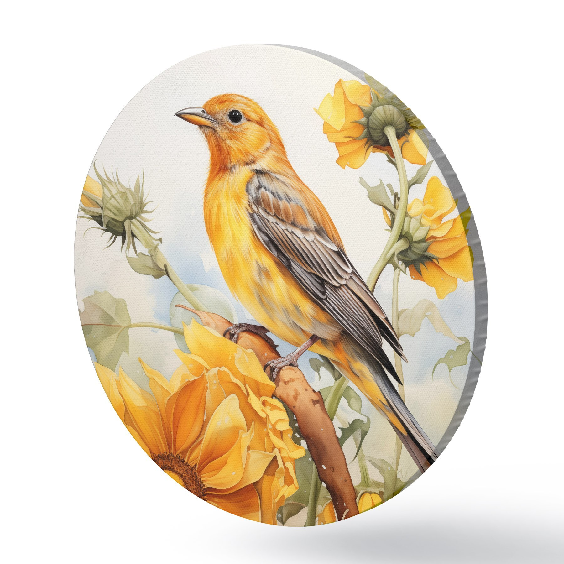 Pilt Kollane lind istub päevalille akvarellil Nr r41015
