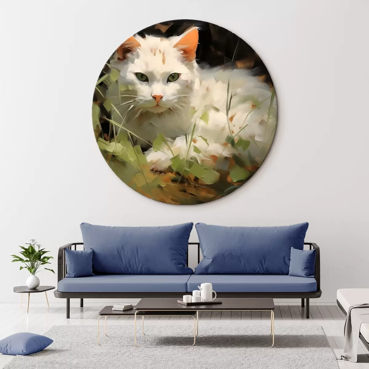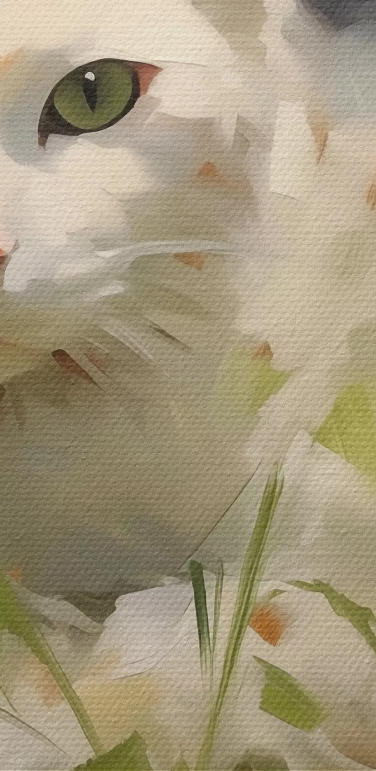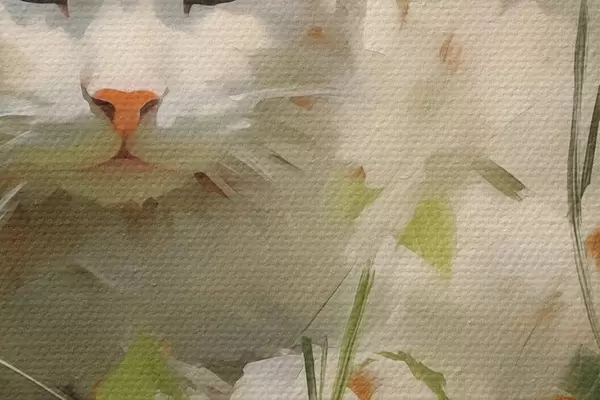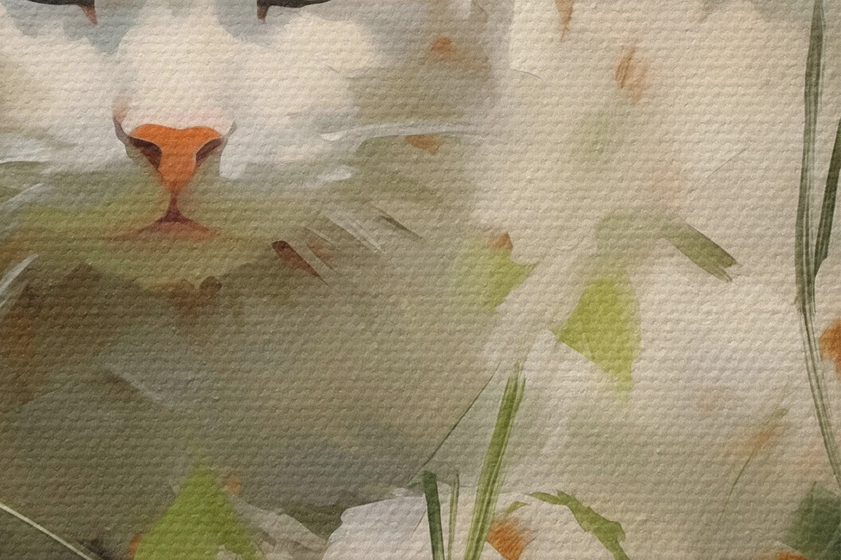 Pilt Valge kass lamab murus, pintslitõmmete imitatsioon Nr r41017