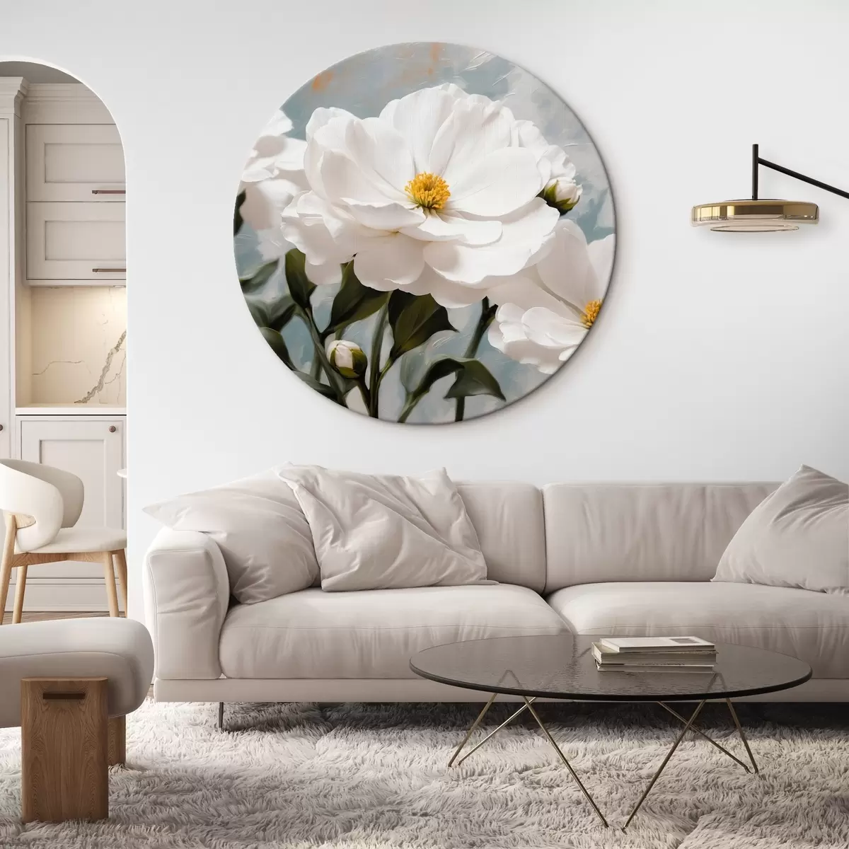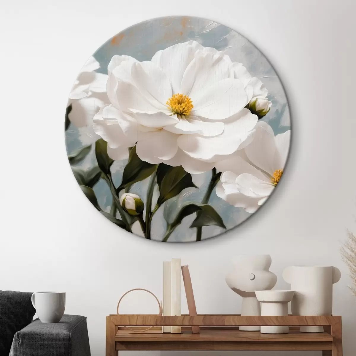 Pilt Valged lilled sinisel akrüülfoonil Nr r41040