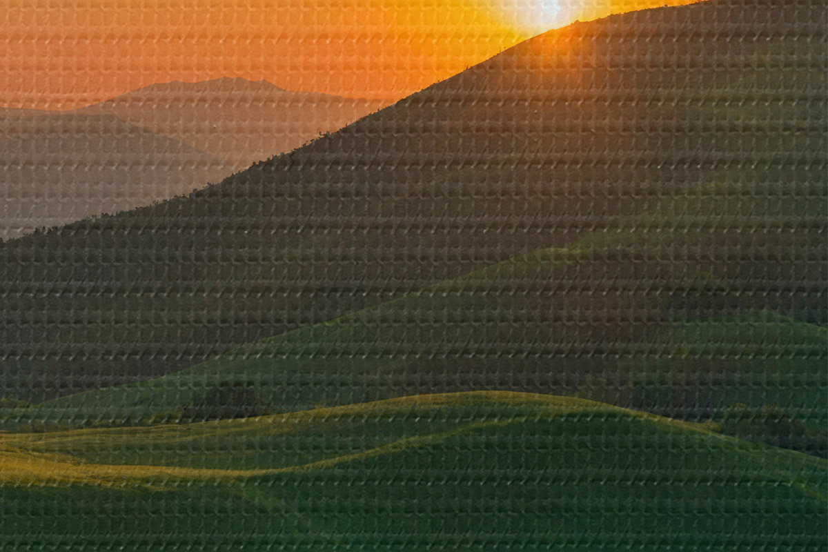 Selle lõuendi peenike niidipunus meenutab professionaalse kunstniku lõuendi pinda.