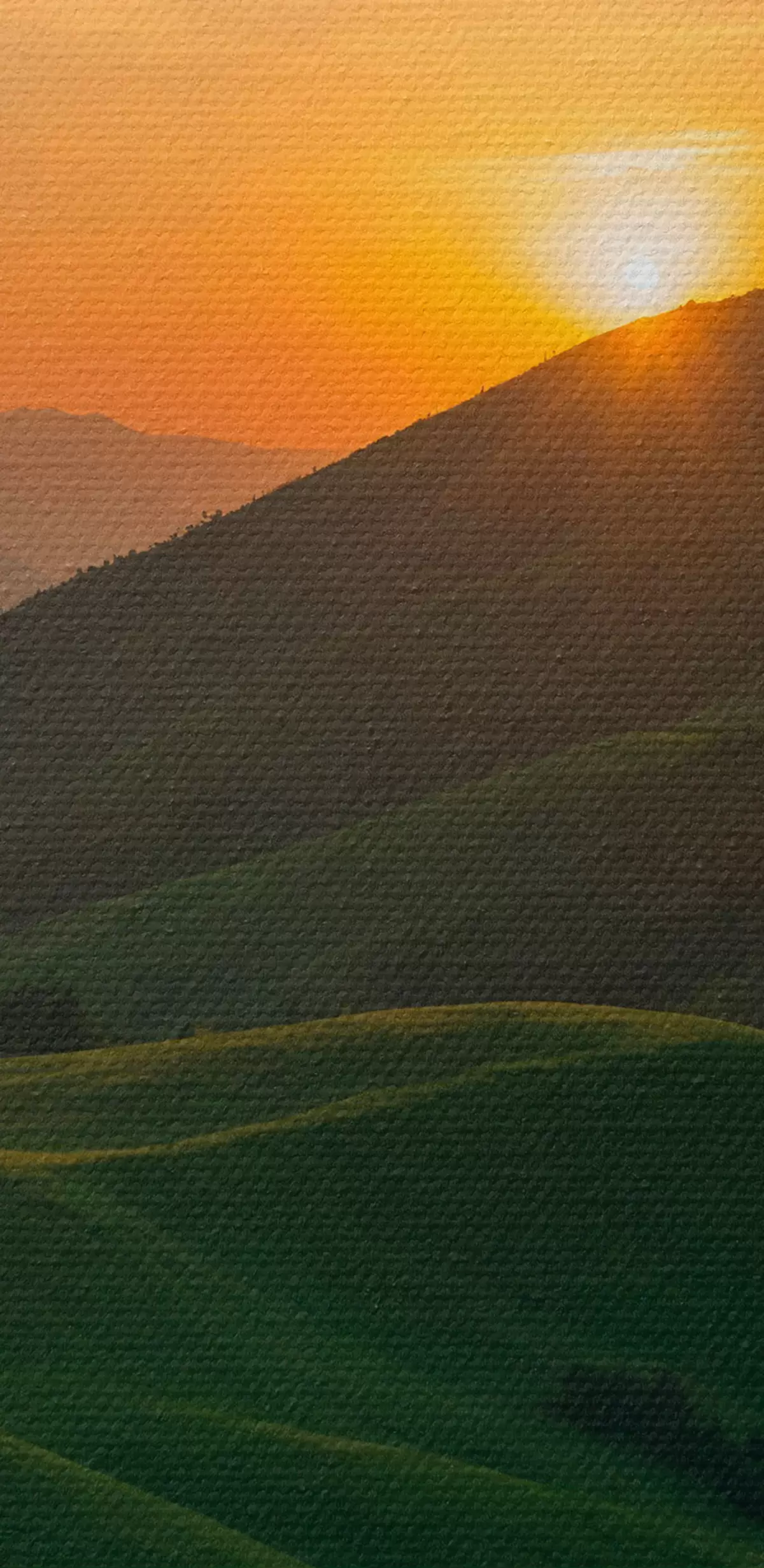 Maali võib riputada kohe pärast selle kättesaamist. Maal on pingutatud 2 cm laiusele puidust kandikule.