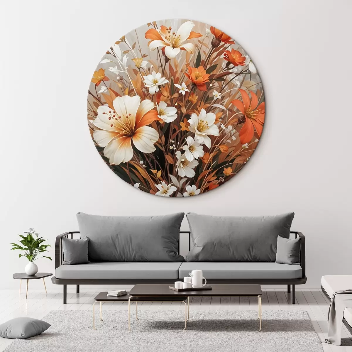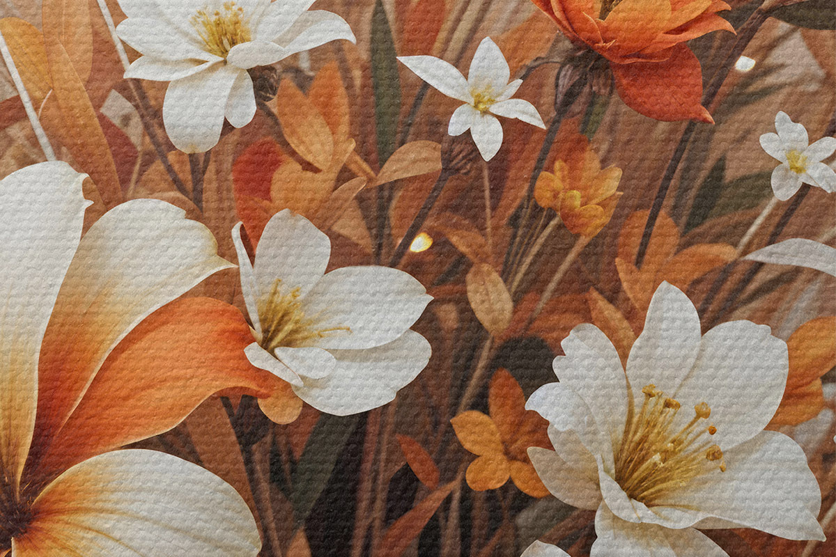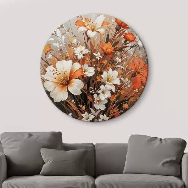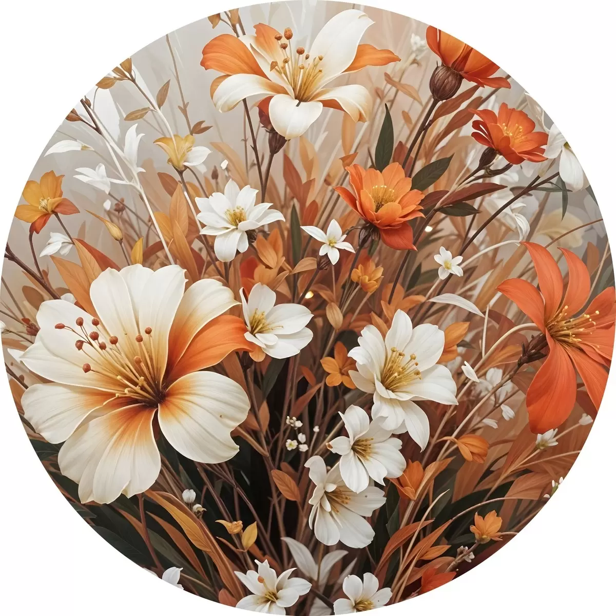 Pilt Oranžide ja valgete lillede, sealhulgas liiliate ja muude õrnade lillede elujõuline kimp Nr r41099