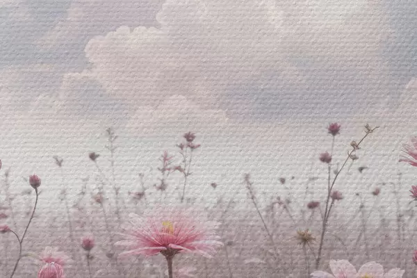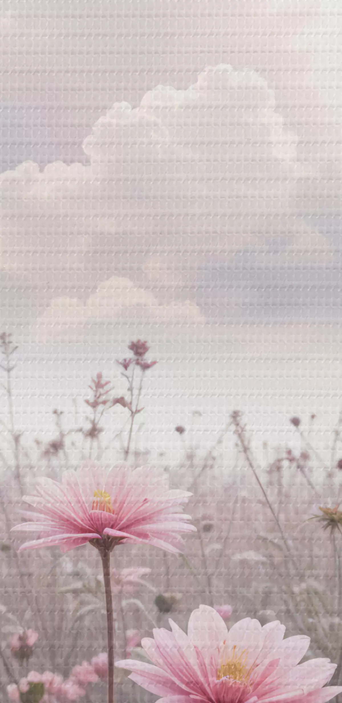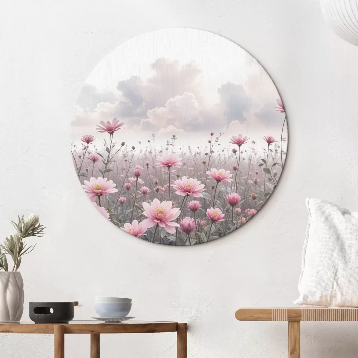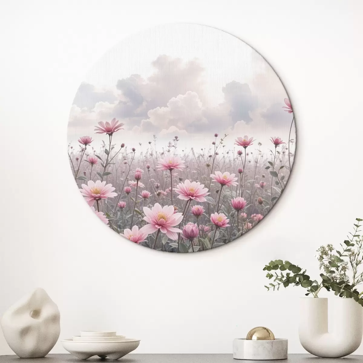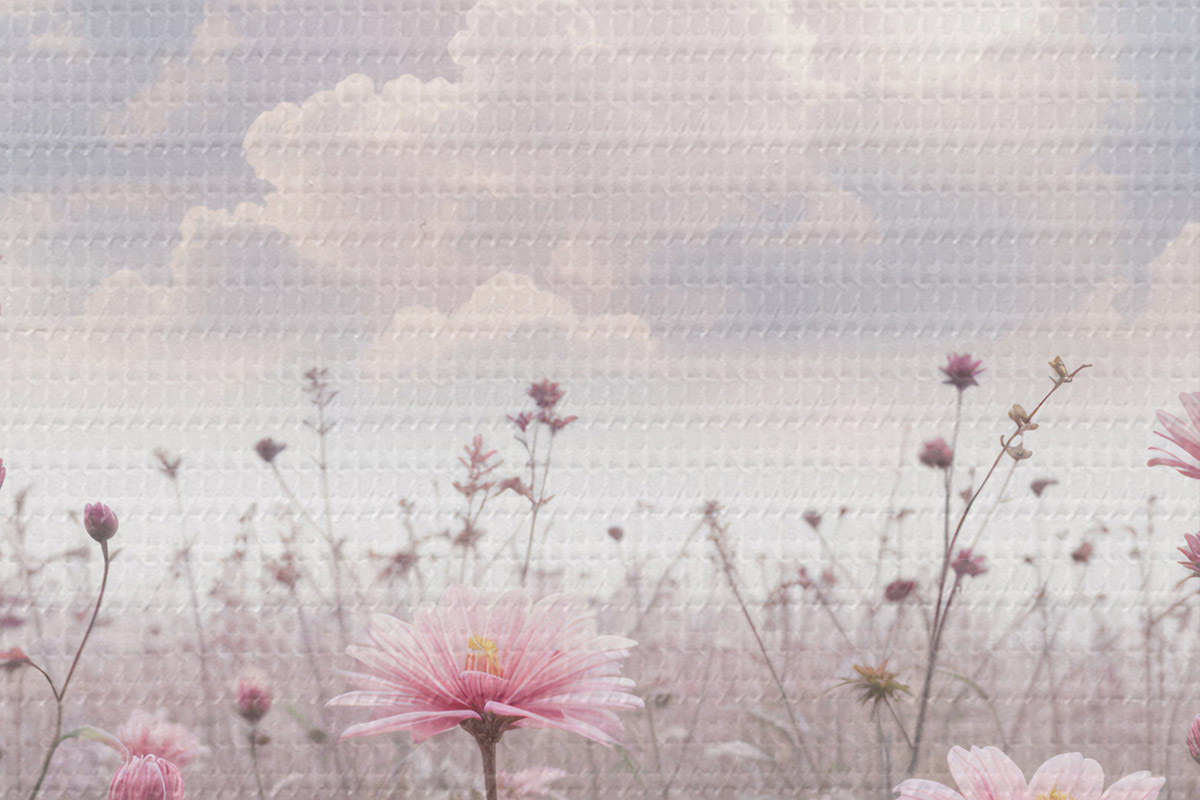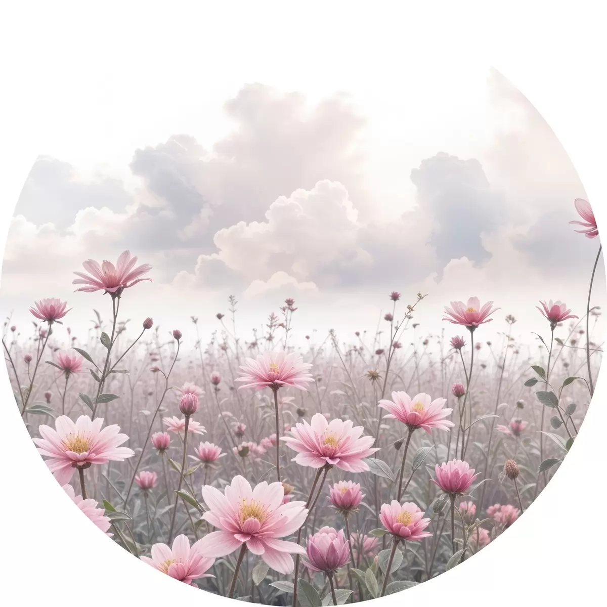Pilt Roosade päevaküünalillede väli pilvise taeva taustal Nr r41102