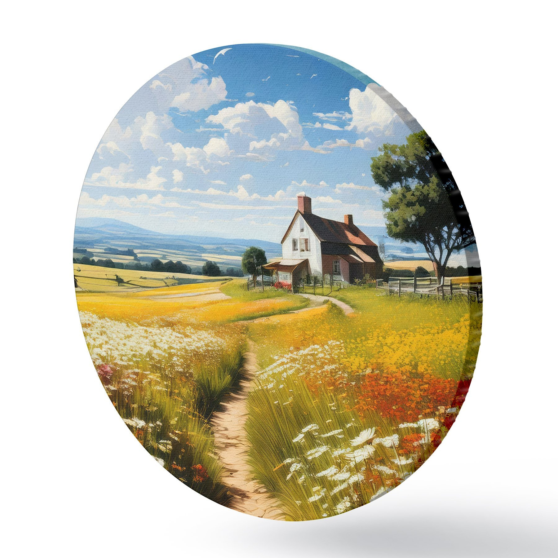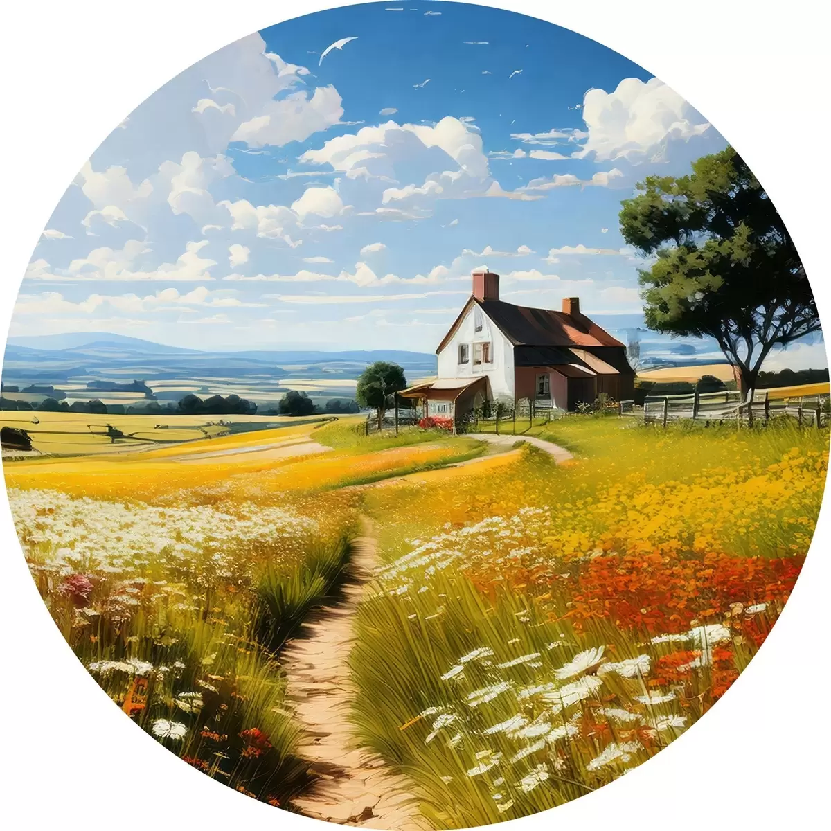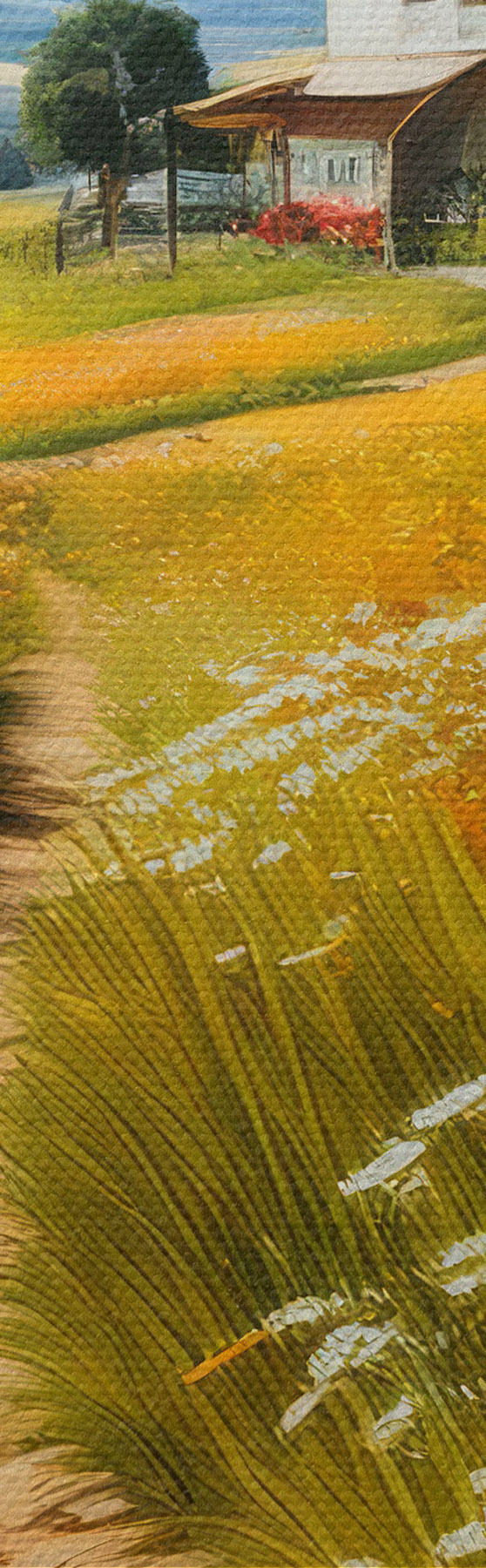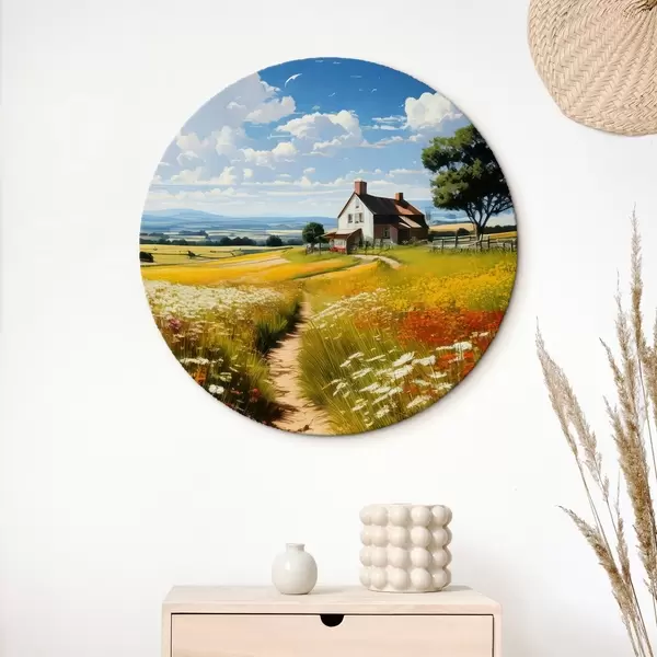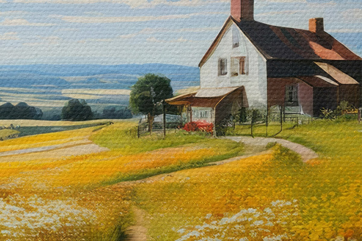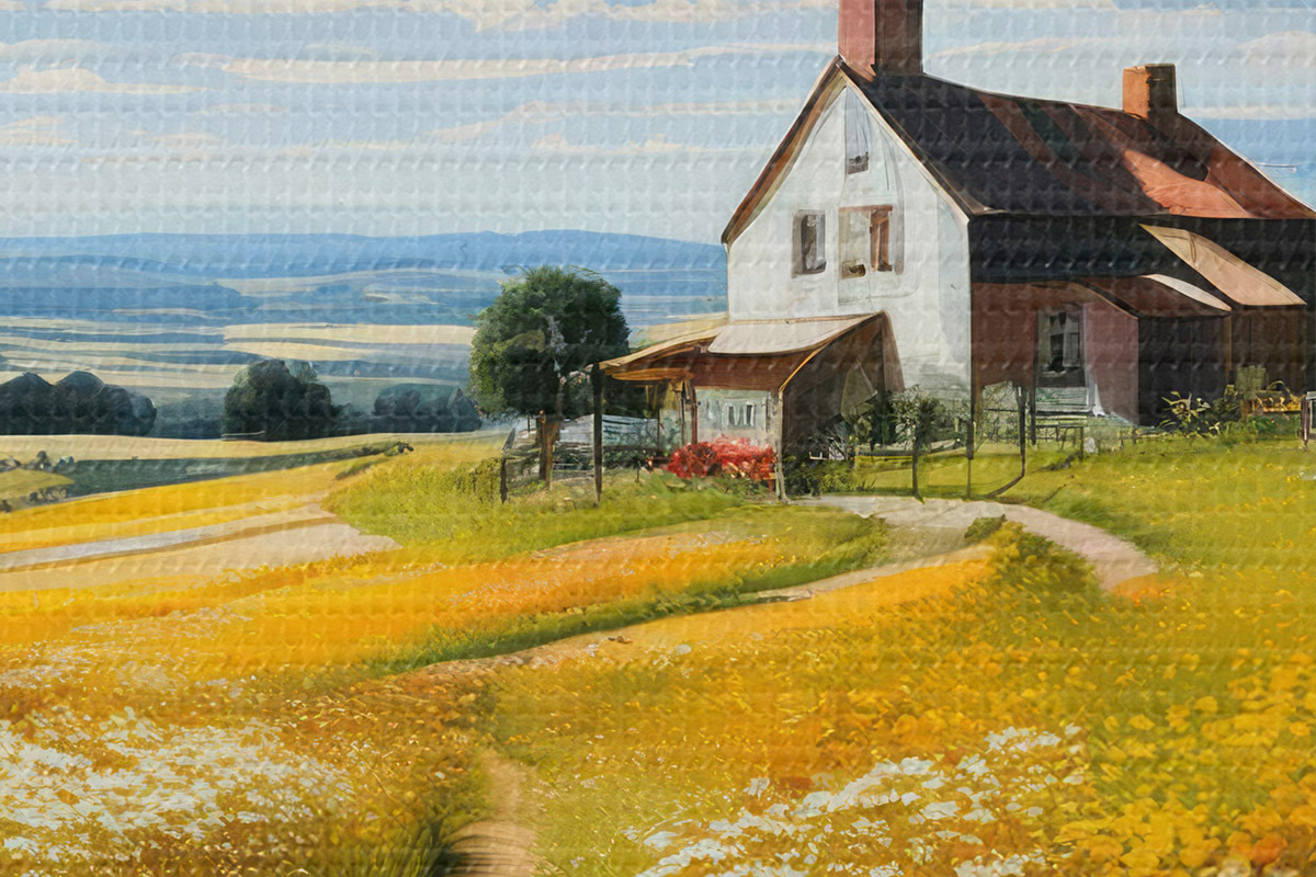 Pilt tee õitsval põllul ja majas Nr r41109