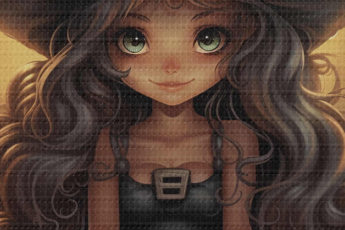 Selle lõuendi peenike niidipunus meenutab professionaalse kunstniku lõuendi pinda.