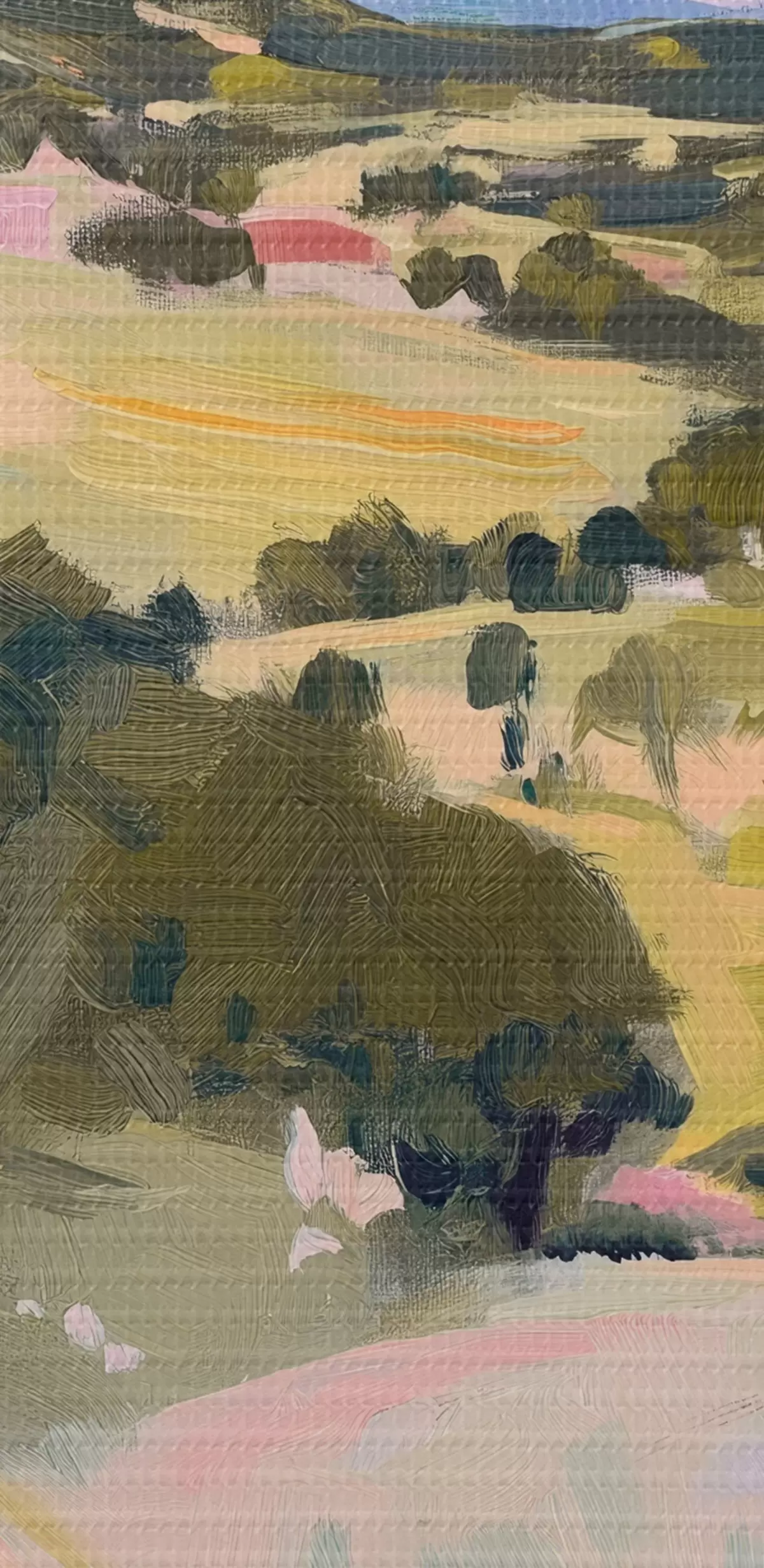 Selle lõuendi peenike niidipunus meenutab professionaalse kunstniku lõuendi pinda.