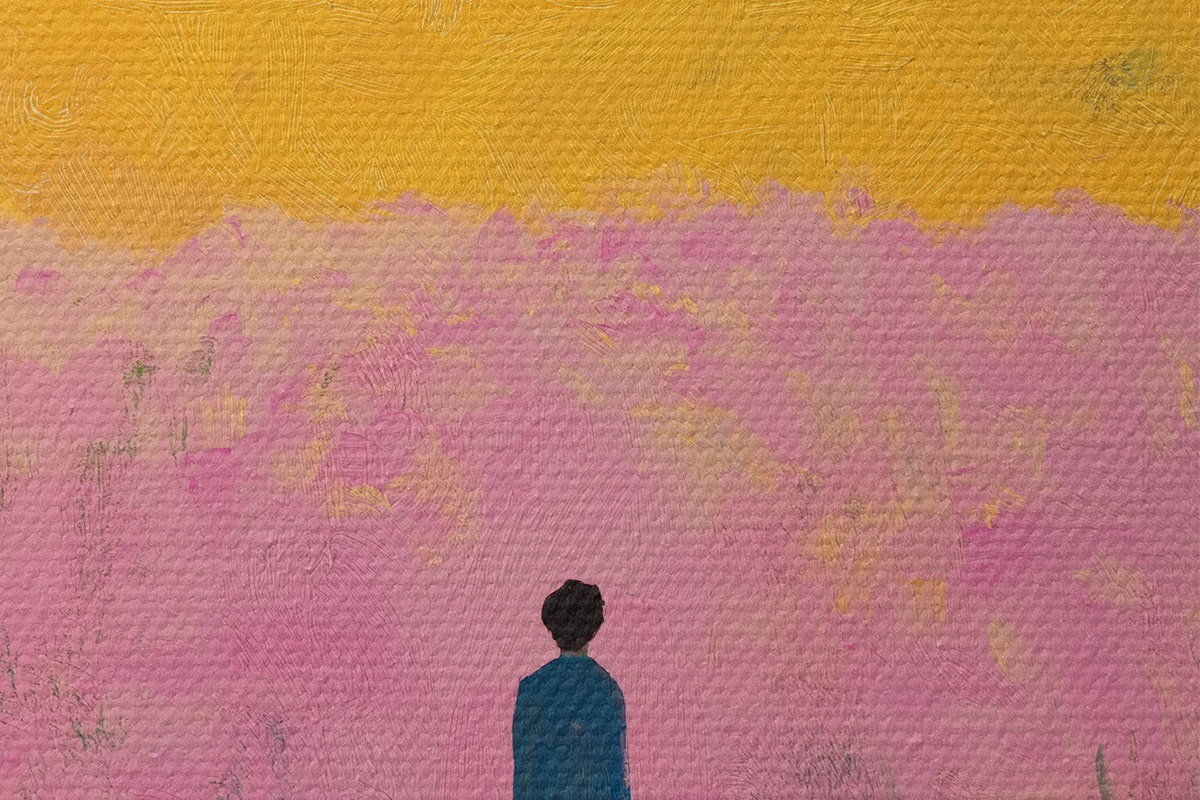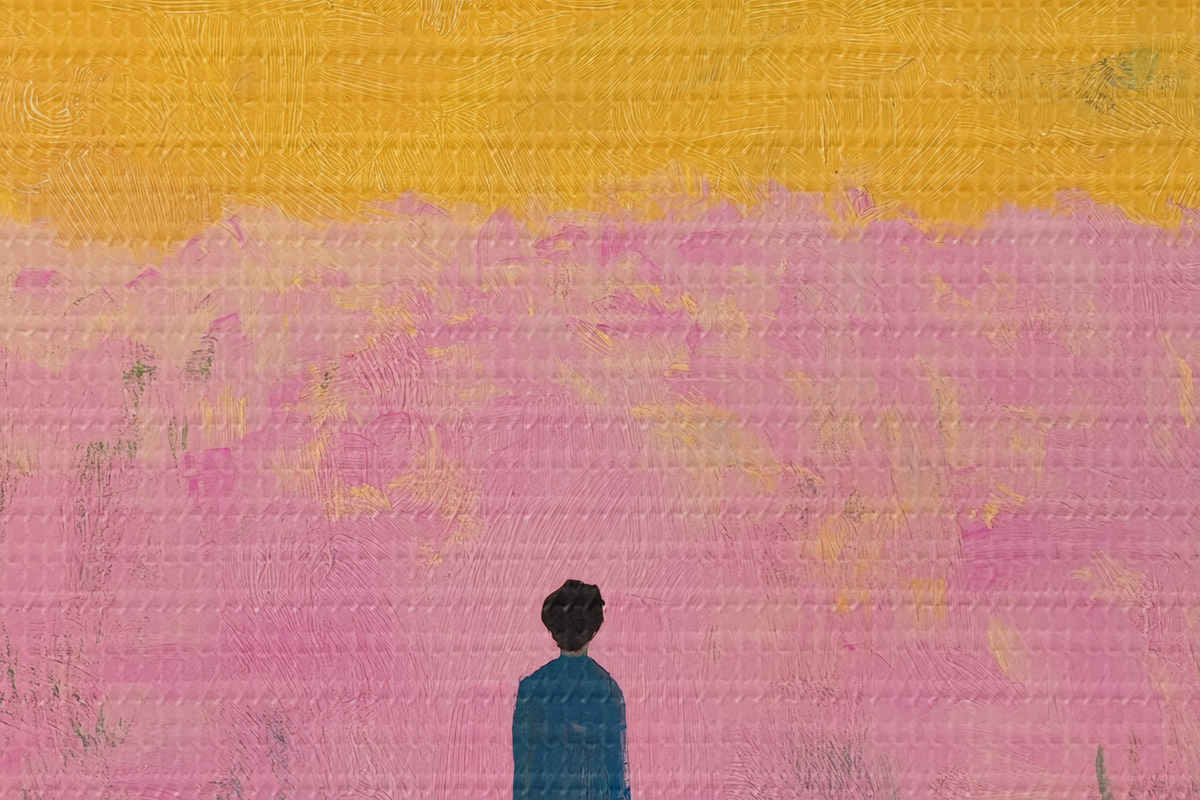 Selle lõuendi peenike niidipunus meenutab professionaalse kunstniku lõuendi pinda.