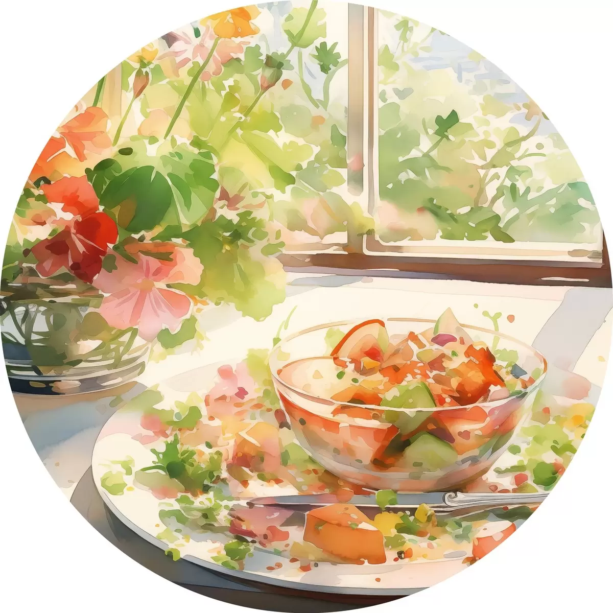 Pilt Akvarell roheline salat, päikesevalgus aknas, rustikaalne stiil Nr r41167