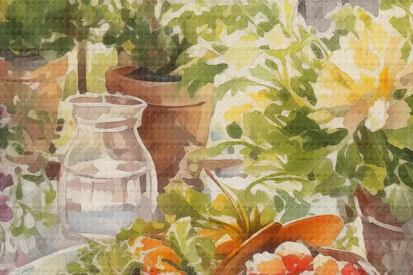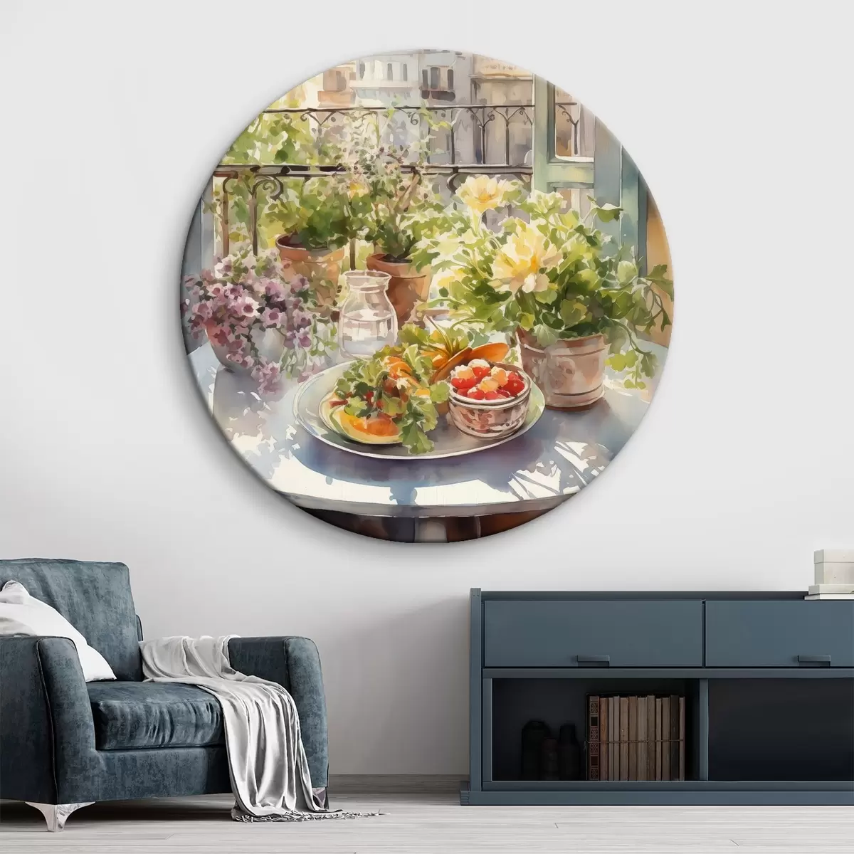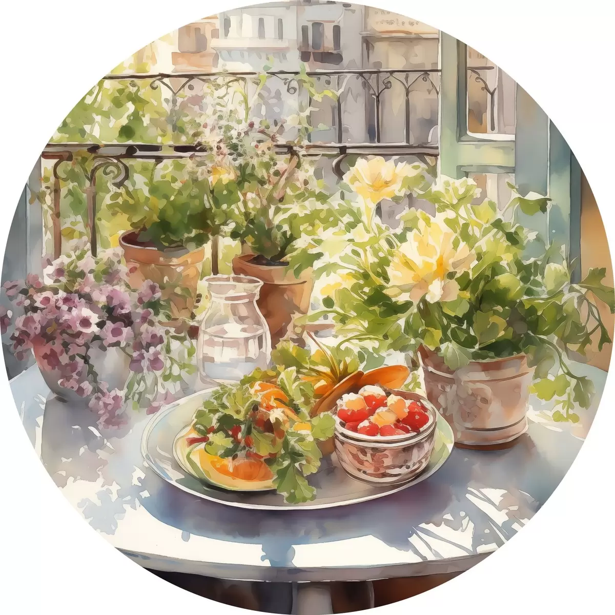 Pilt Romantiline õhtusöök vaatega linnale, akvarell, lilled Nr r41168