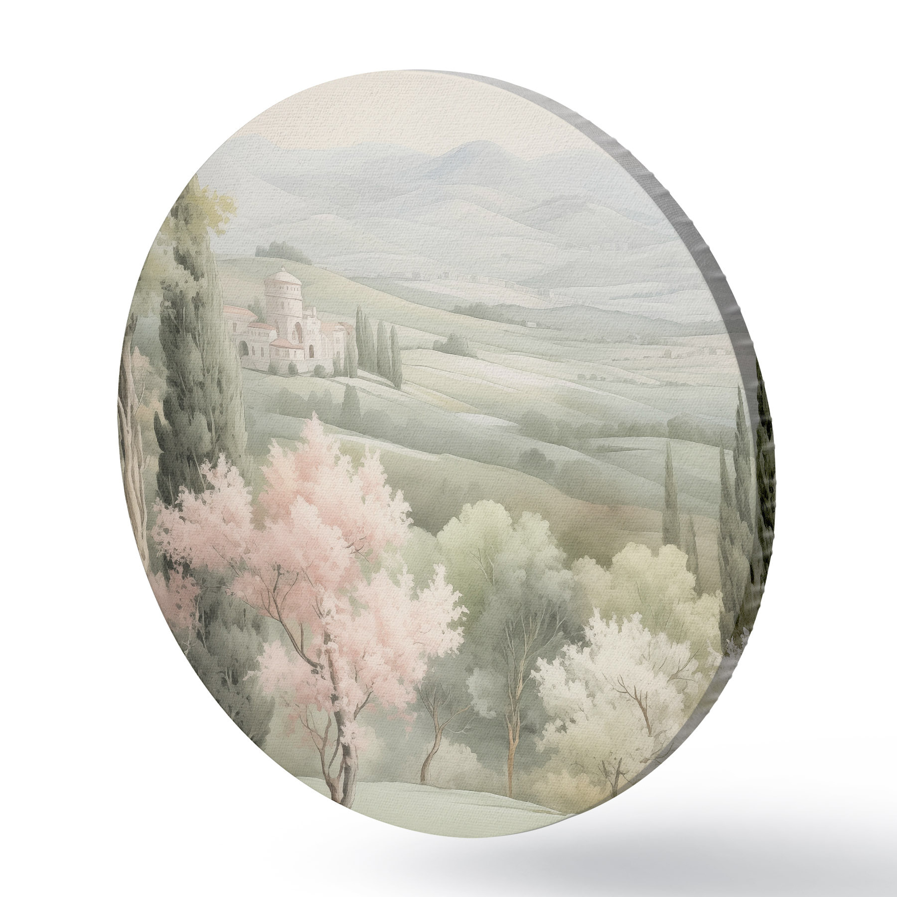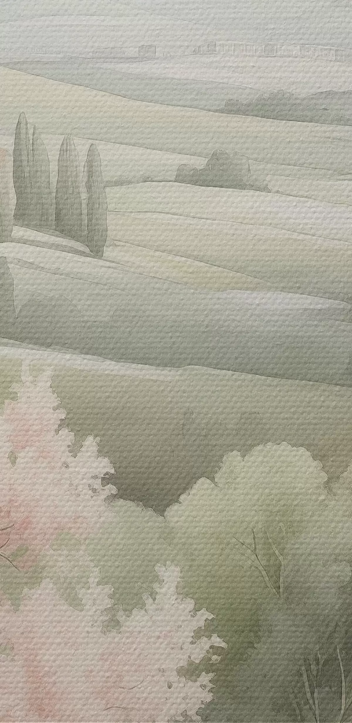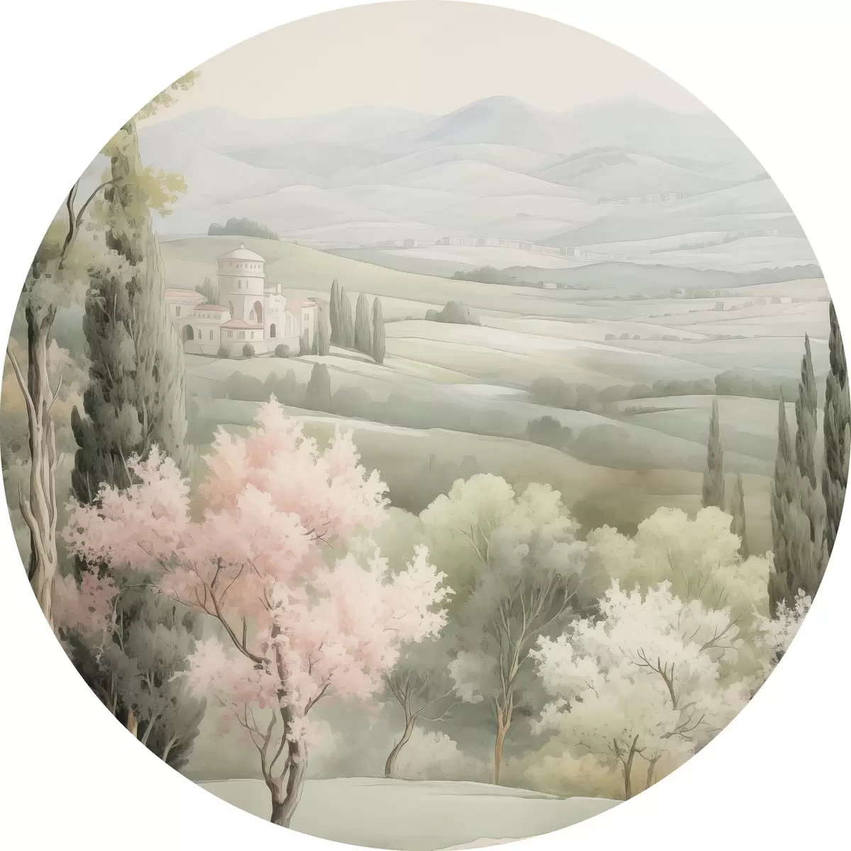 Pilt Akvarell loodus, õrnad värvid, roosid, puud, rohelised künkad Nr r41223