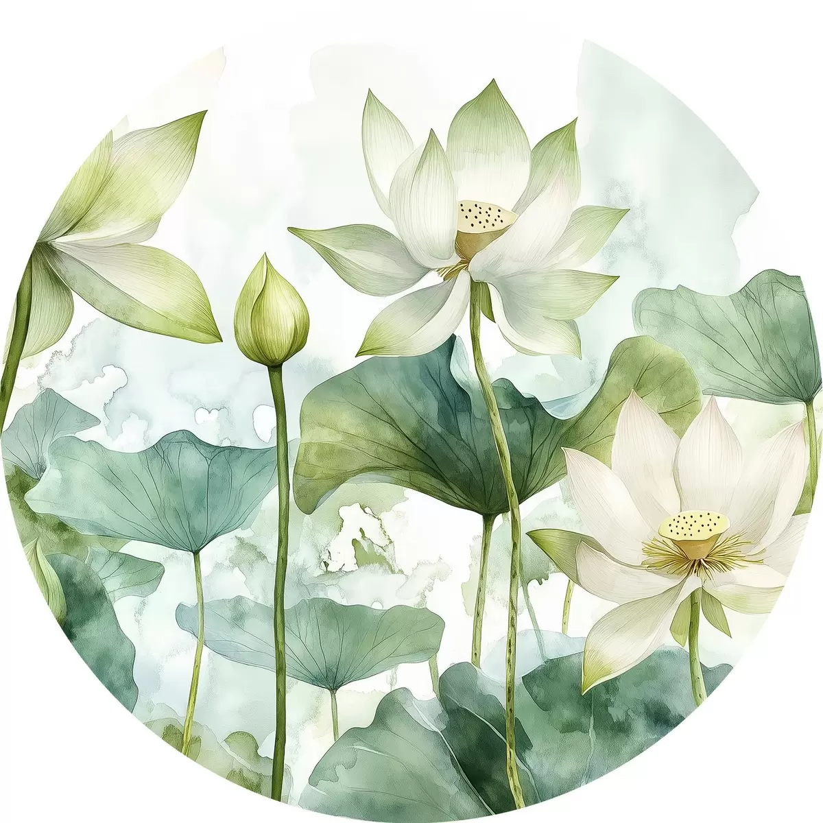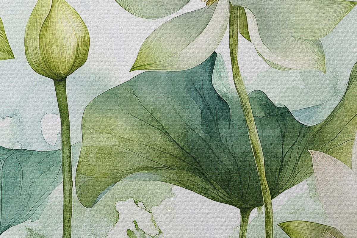 Pilt Akvarell-lootoseid, lopsakas rohelus Nr r41226