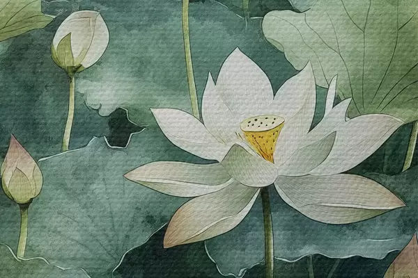 Pilt Lootoseid tiigis, akvarell, roheline Nr r41228