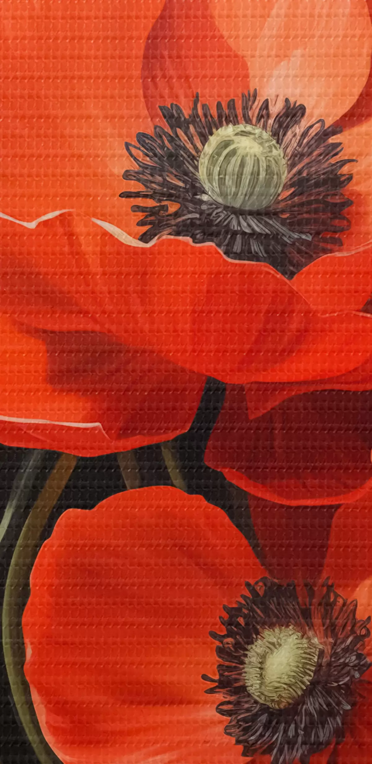 Selle lõuendi peenike niidipunus meenutab professionaalse kunstniku lõuendi pinda.