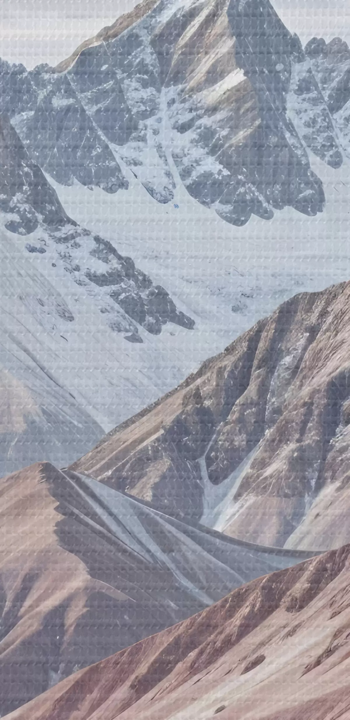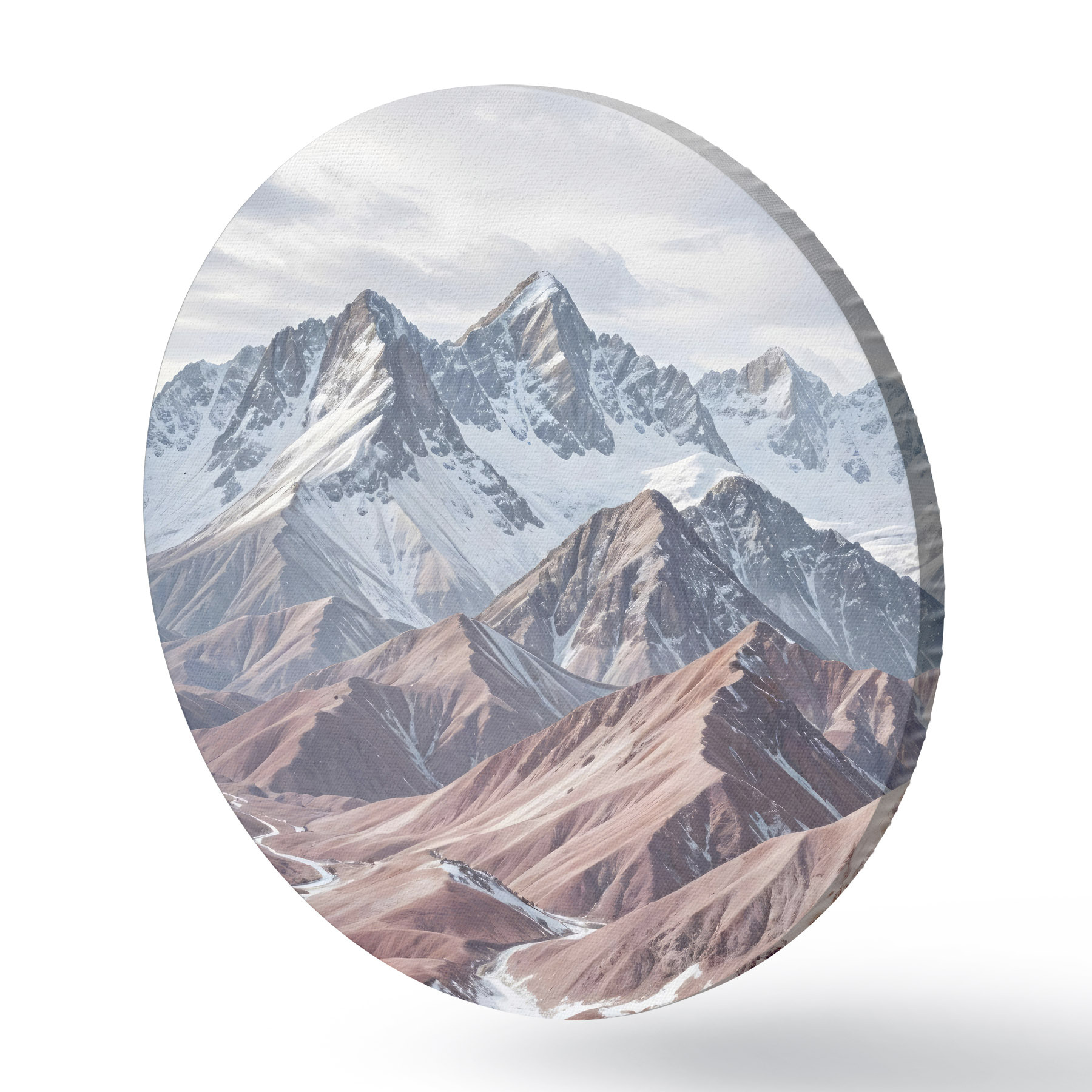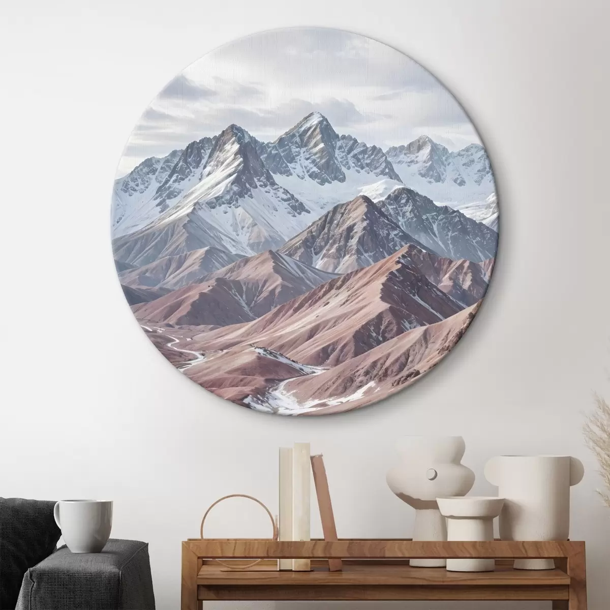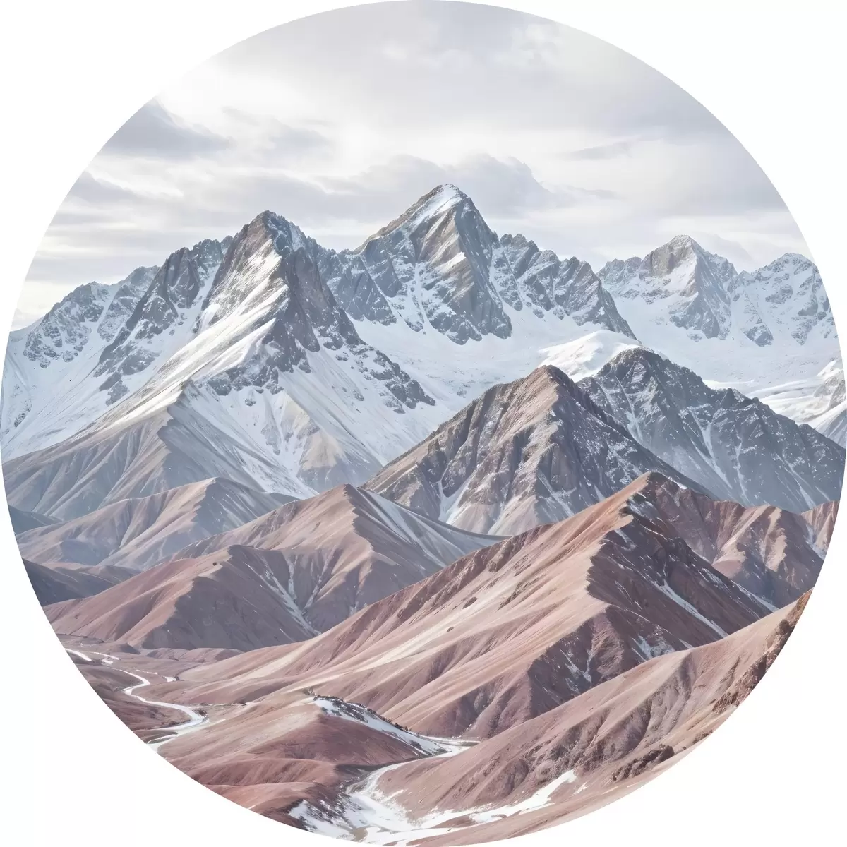 Pilt Karmid, lumekattega mäed, mida läbib kurviline jõgi, mis voolab läbi tohutu värvilise maastiku Nr r41262