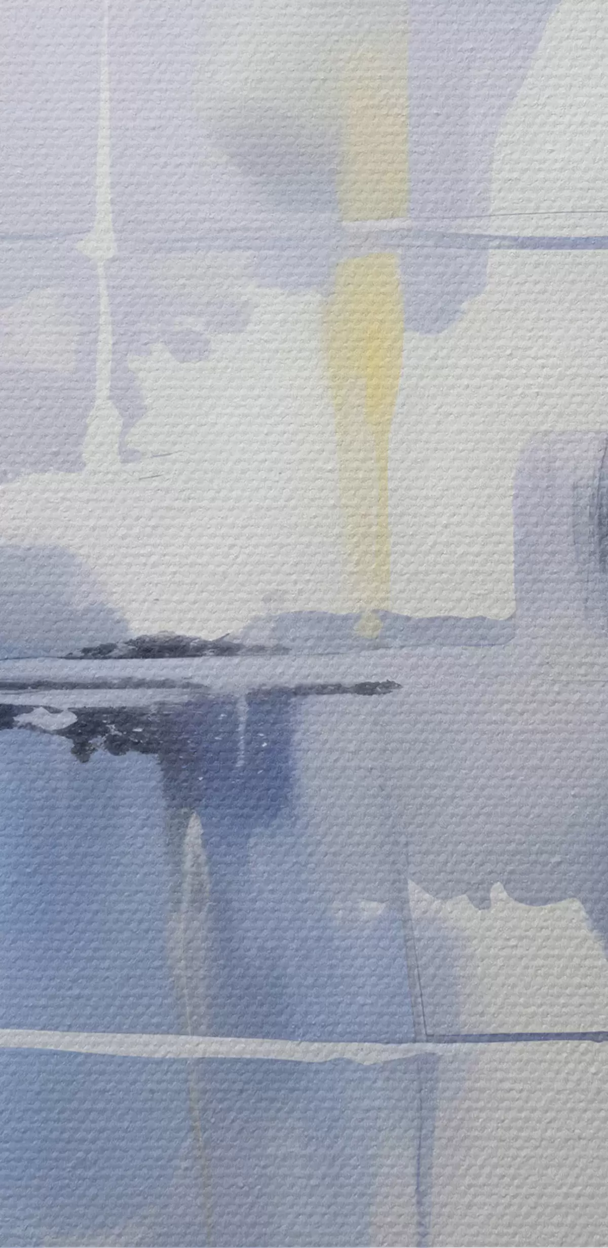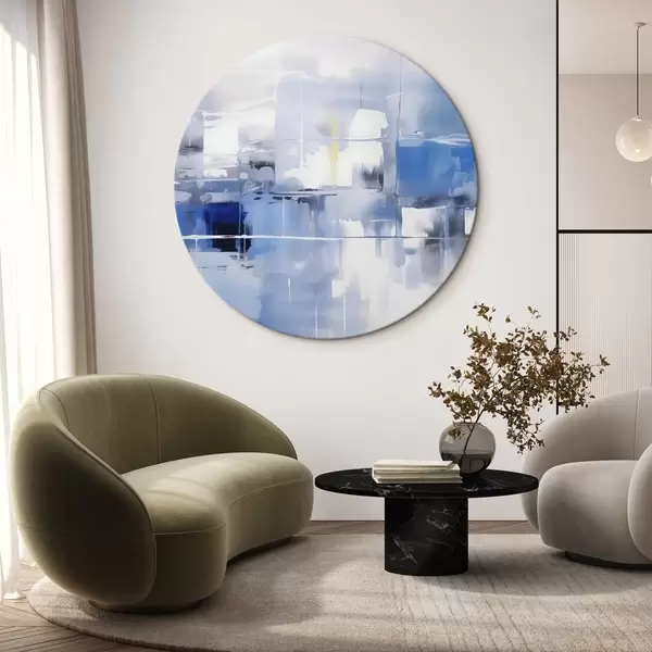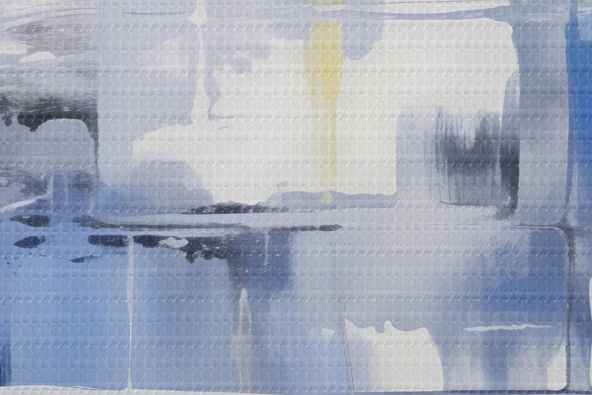 Pilt Modernne abstraktsioon sinise, valge ja halli toonides, häguste joonte ja kujunditega Nr r41269