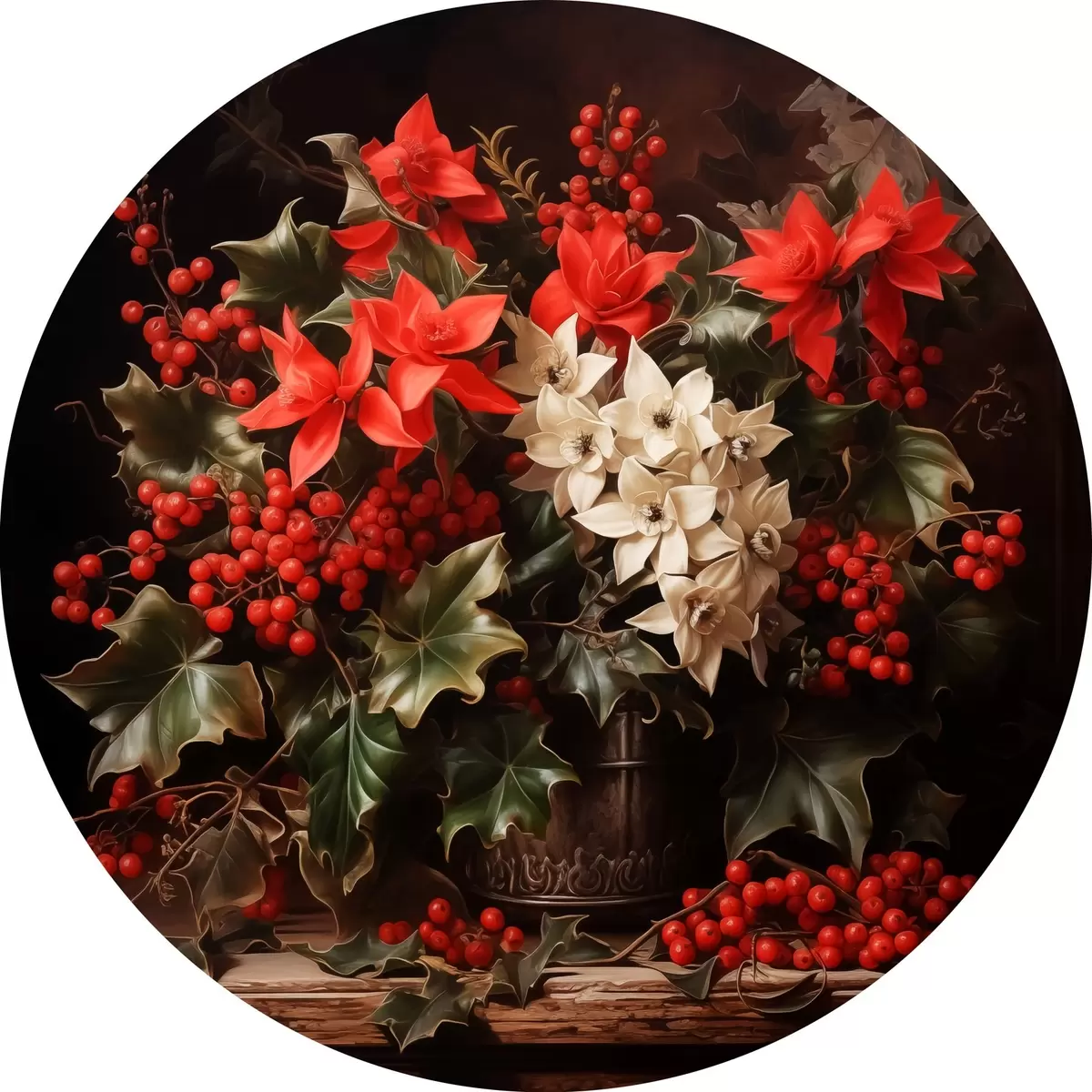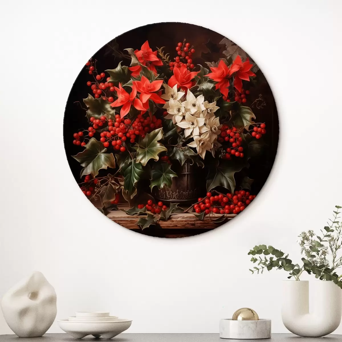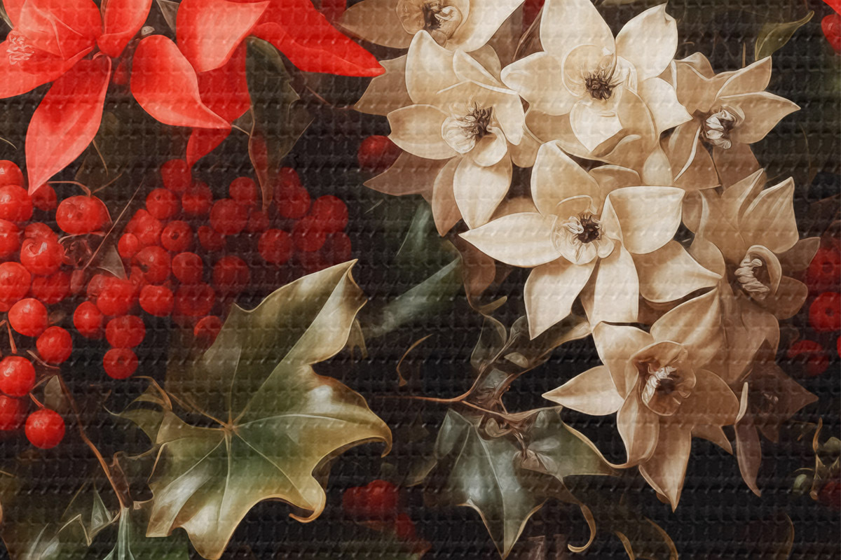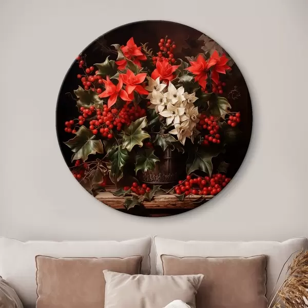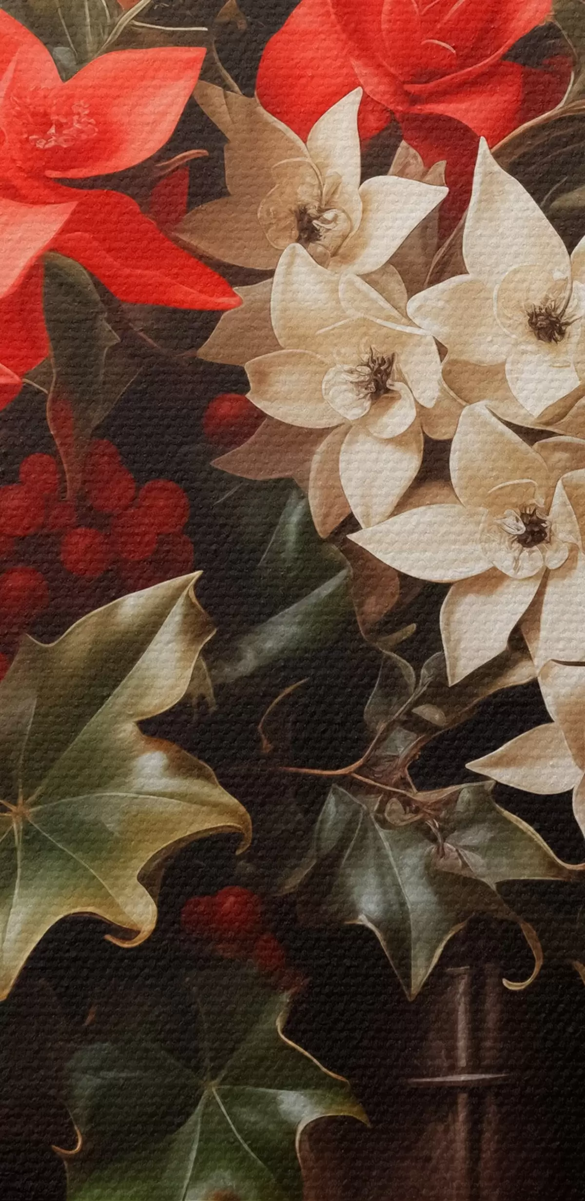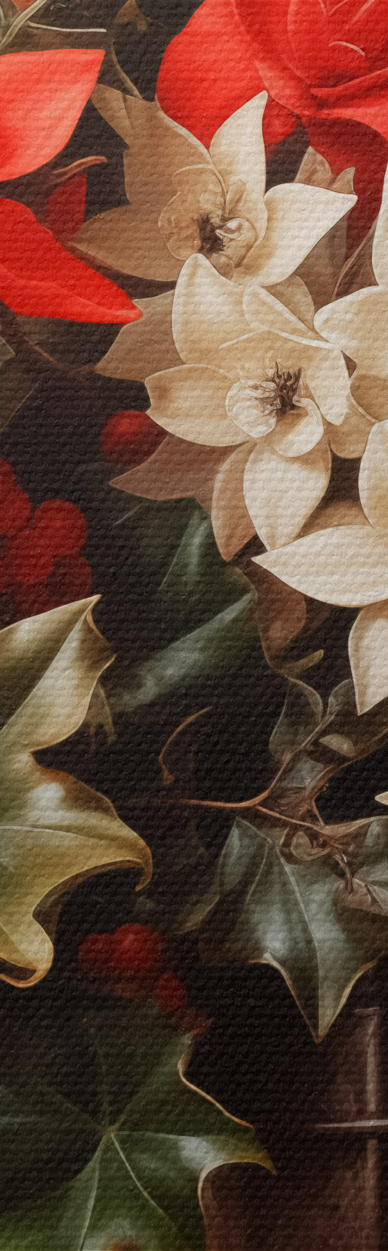 Pilt Kimp jalakas ja jõululilledega tumedal taustal Nr r41272