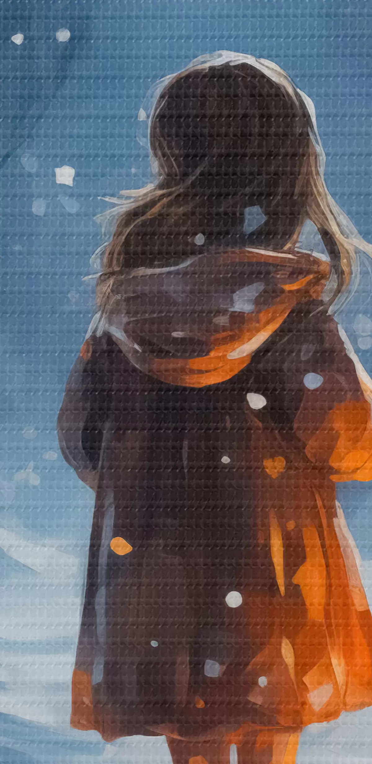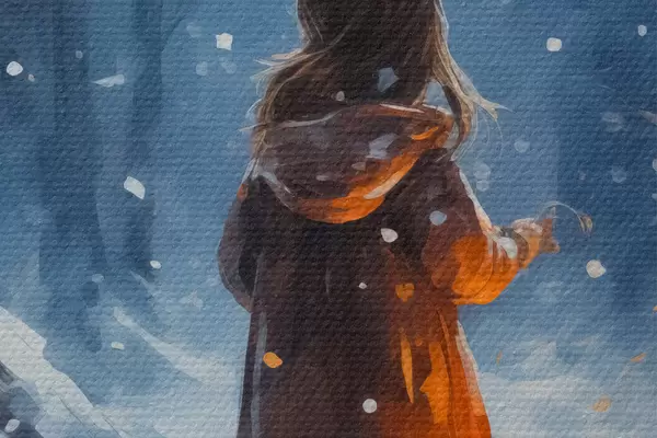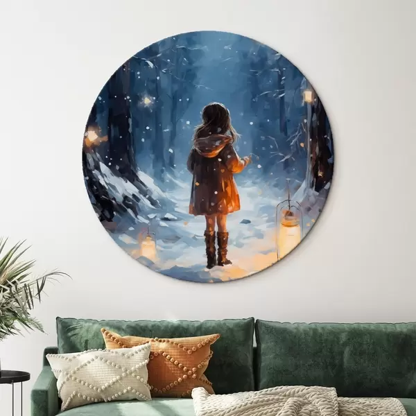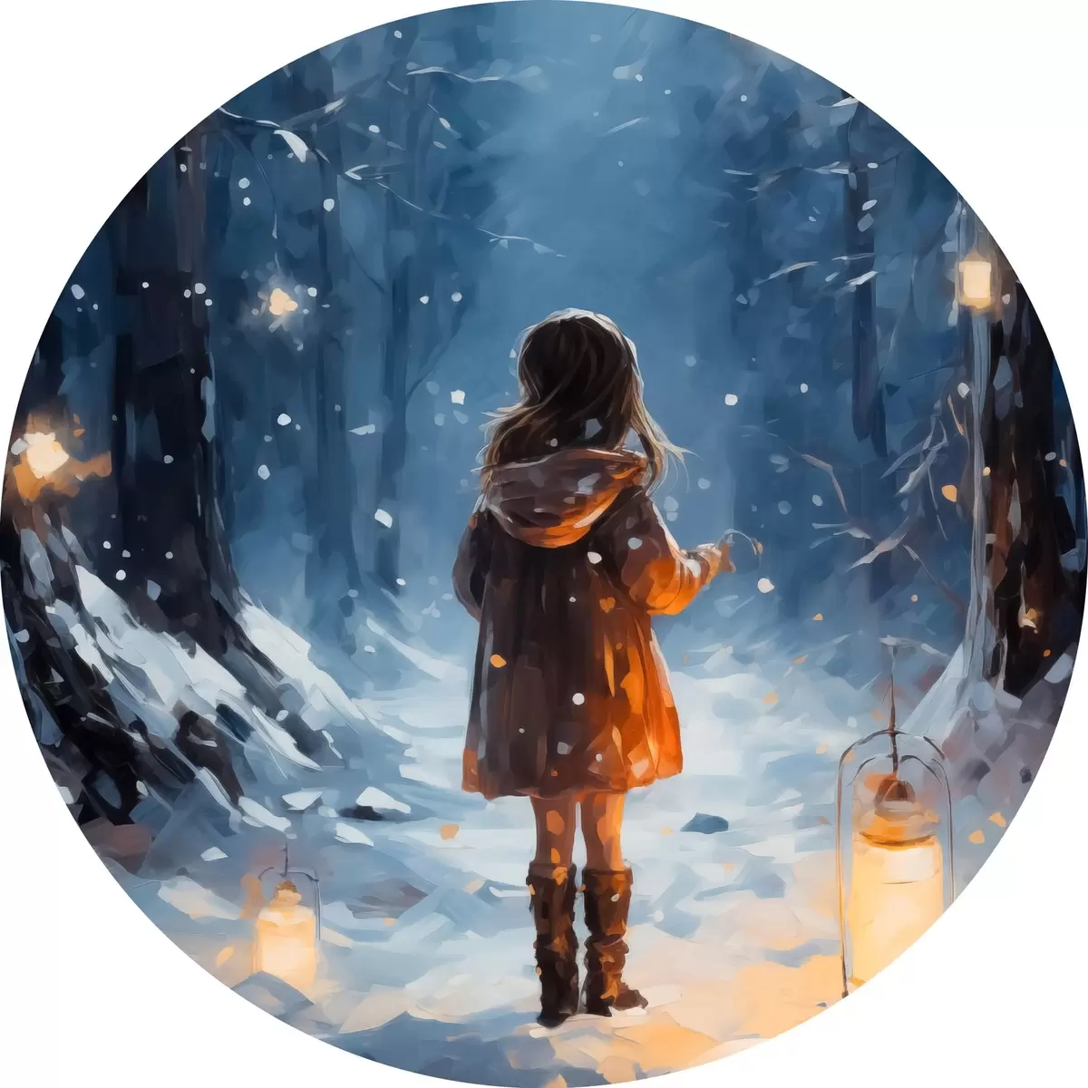 Pilt Tüdruk öises talvemetsas puude ja laternate vahel Nr r41277