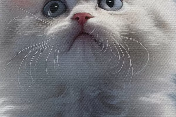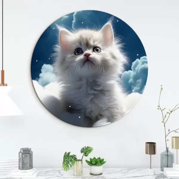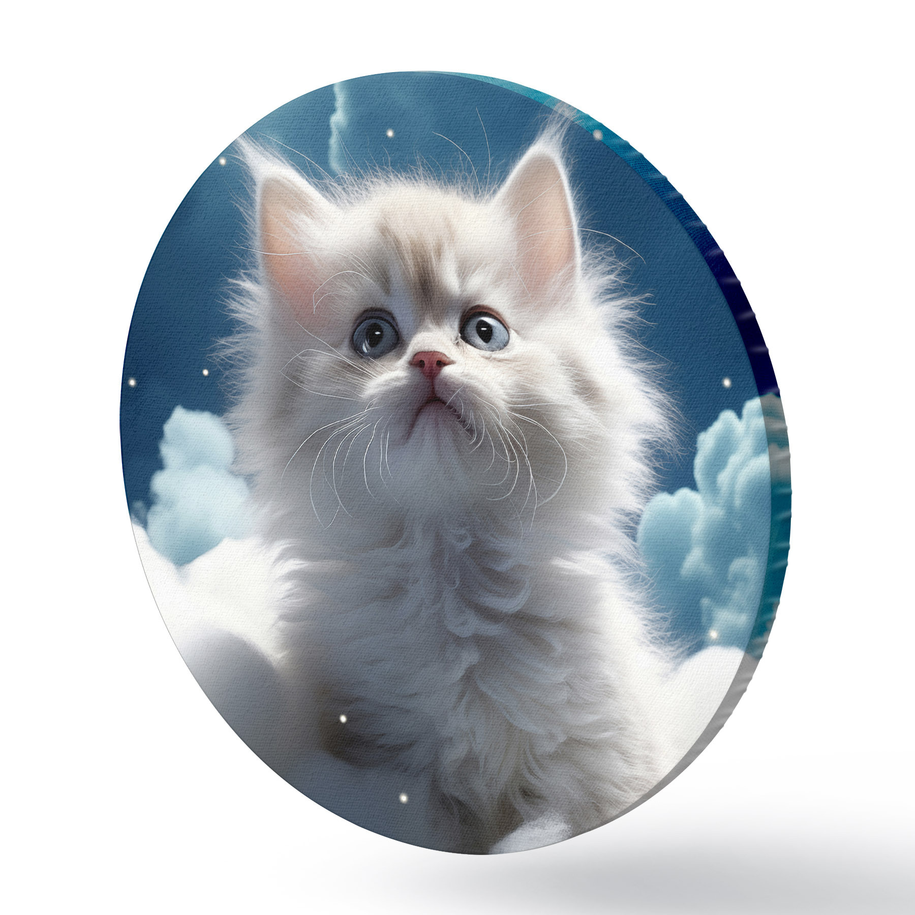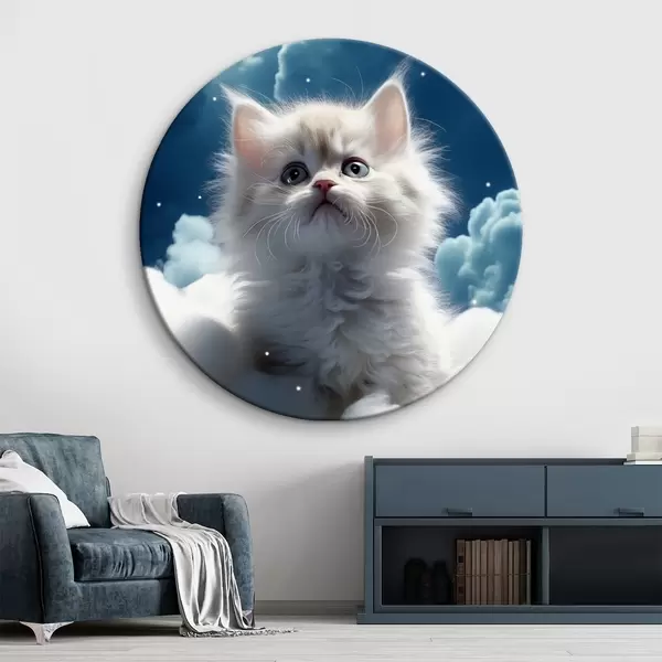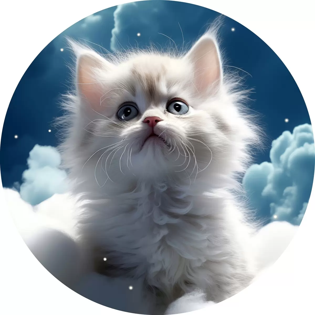 Pilt Valge kohev kassipoeg taevas istub pilve peal Nr r41279