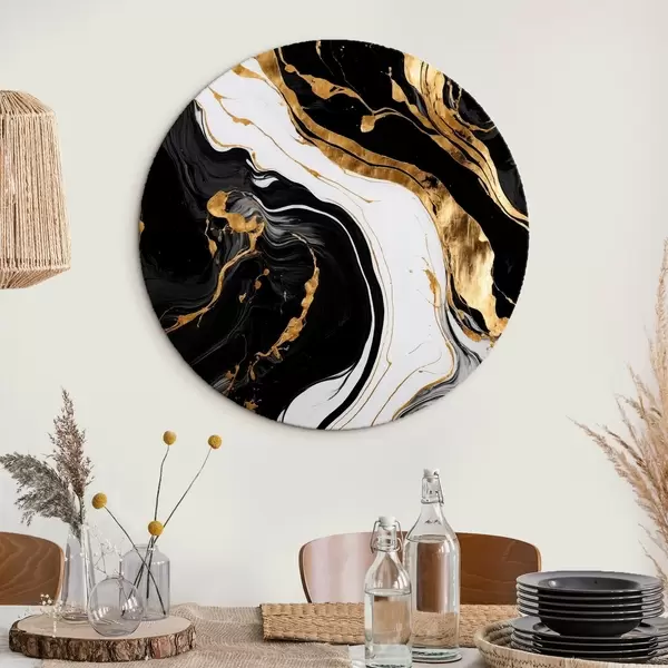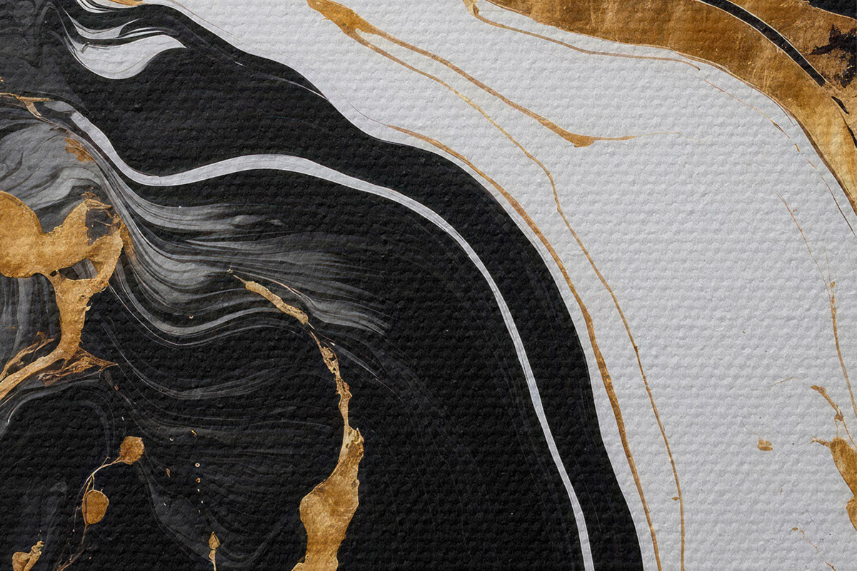 Pilt Must-valge abstraktne pilt kollaste laikudega Nr r41292
