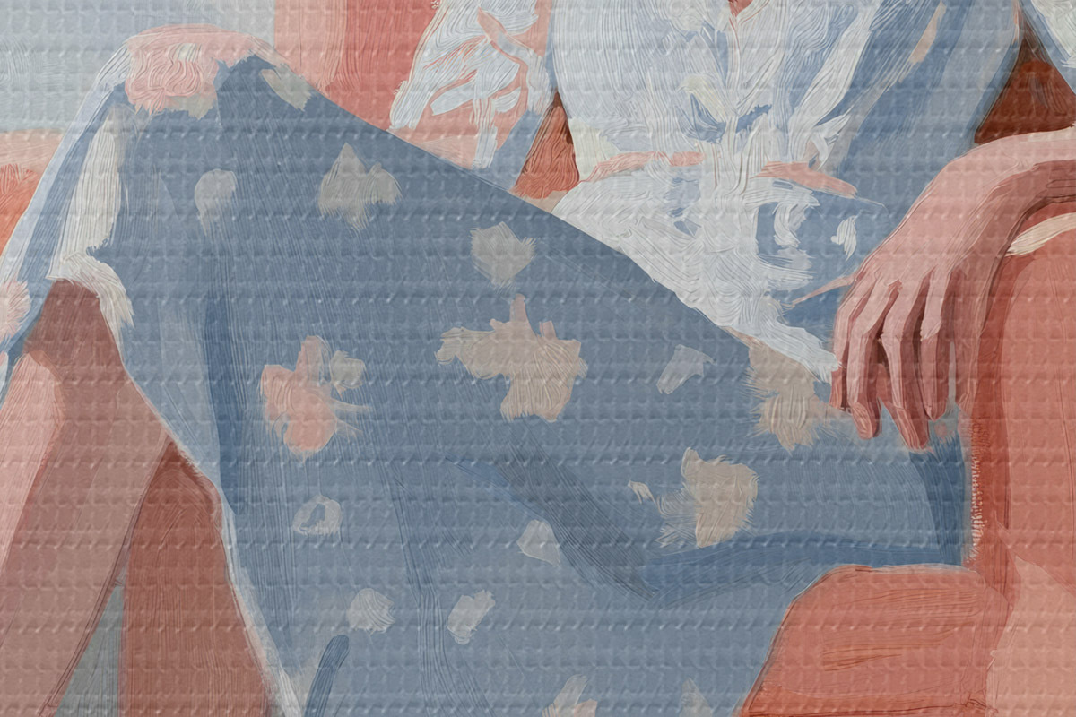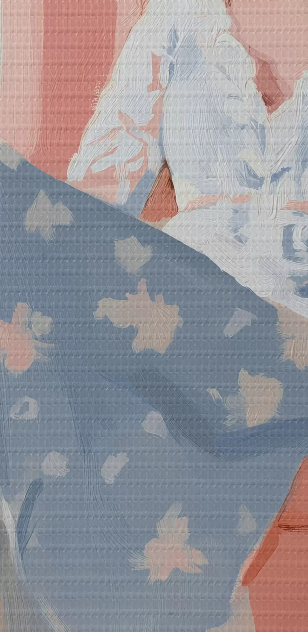 Selle lõuendi peenike niidipunus meenutab professionaalse kunstniku lõuendi pinda.