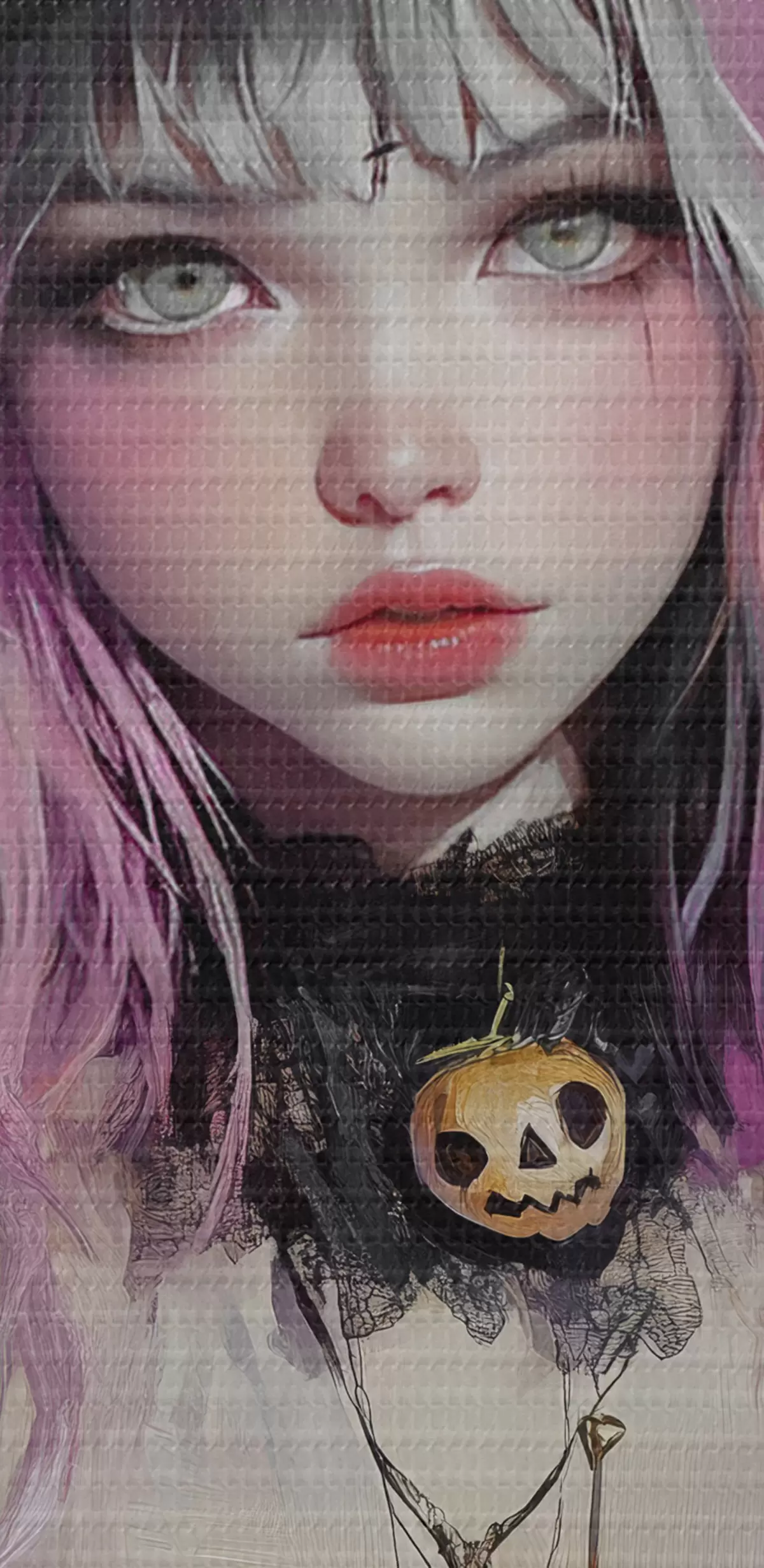 Selle lõuendi peenike niidipunus meenutab professionaalse kunstniku lõuendi pinda.