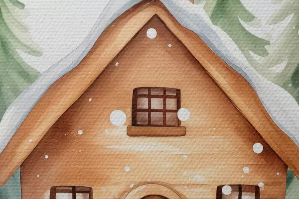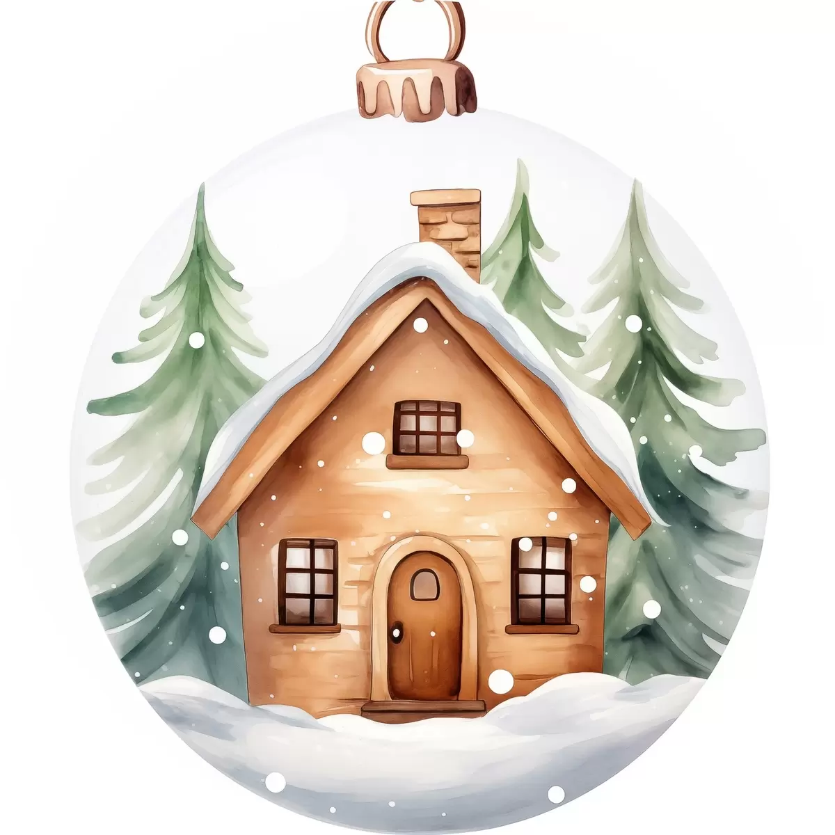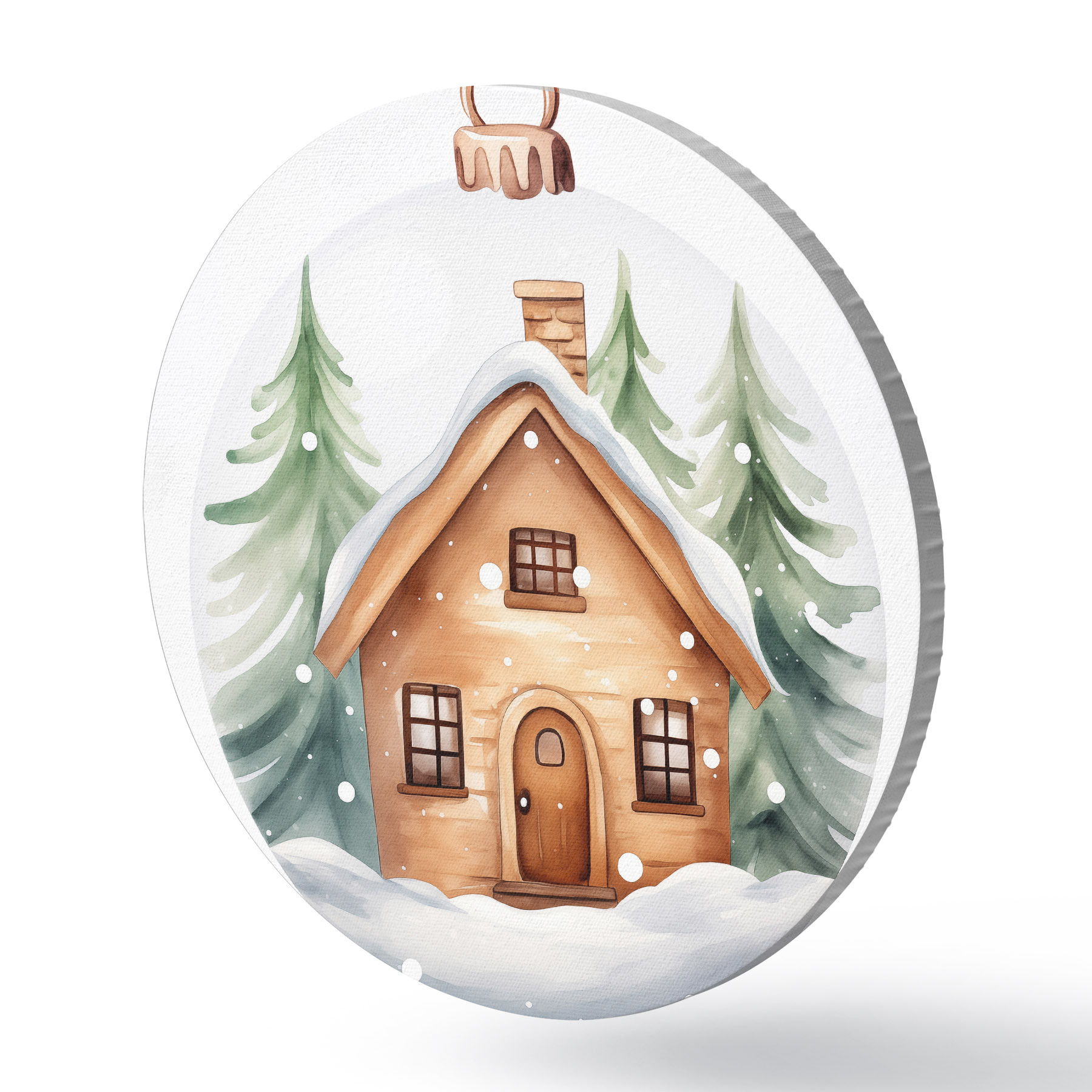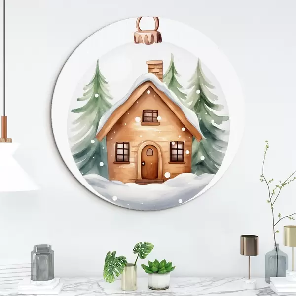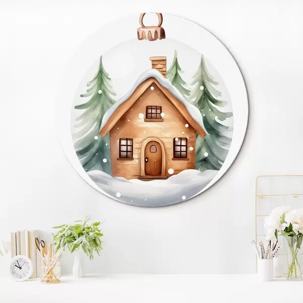 Pilt Kristallkuulikas koos akvarellmaja lumega, männipuudega Nr r41362