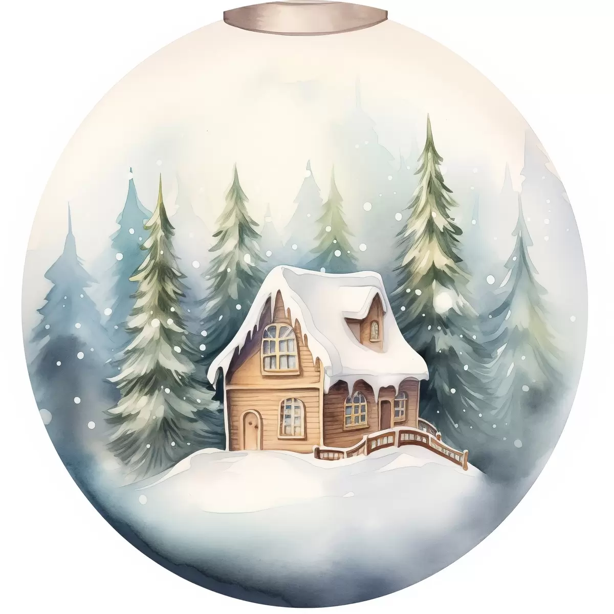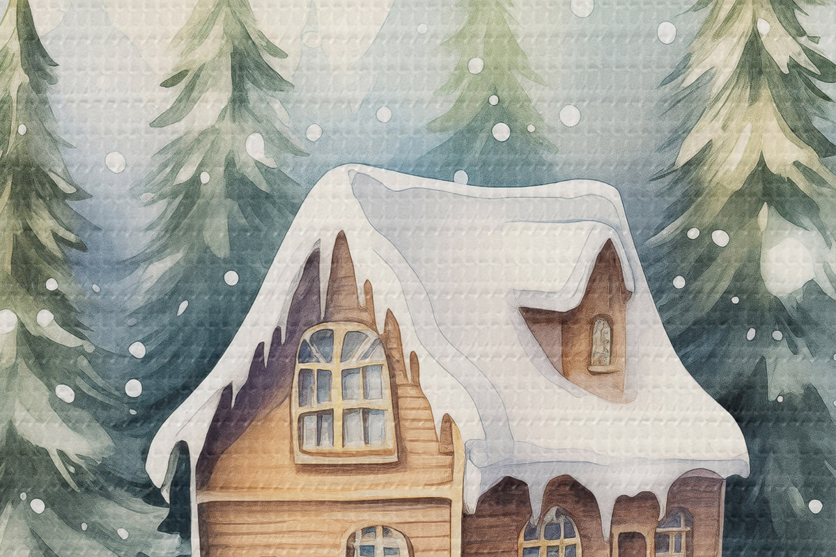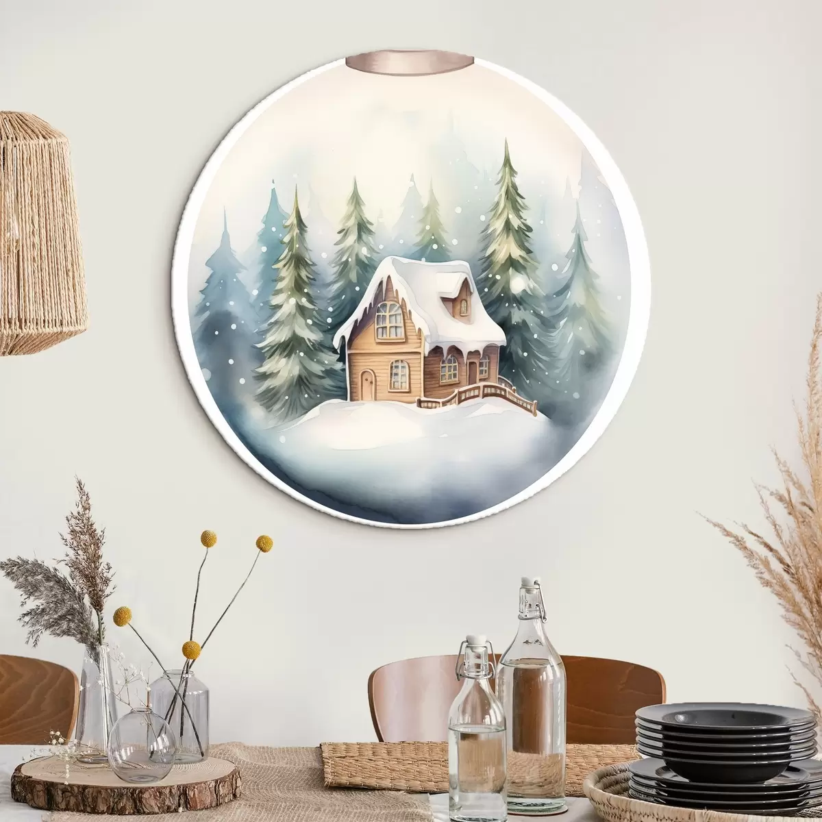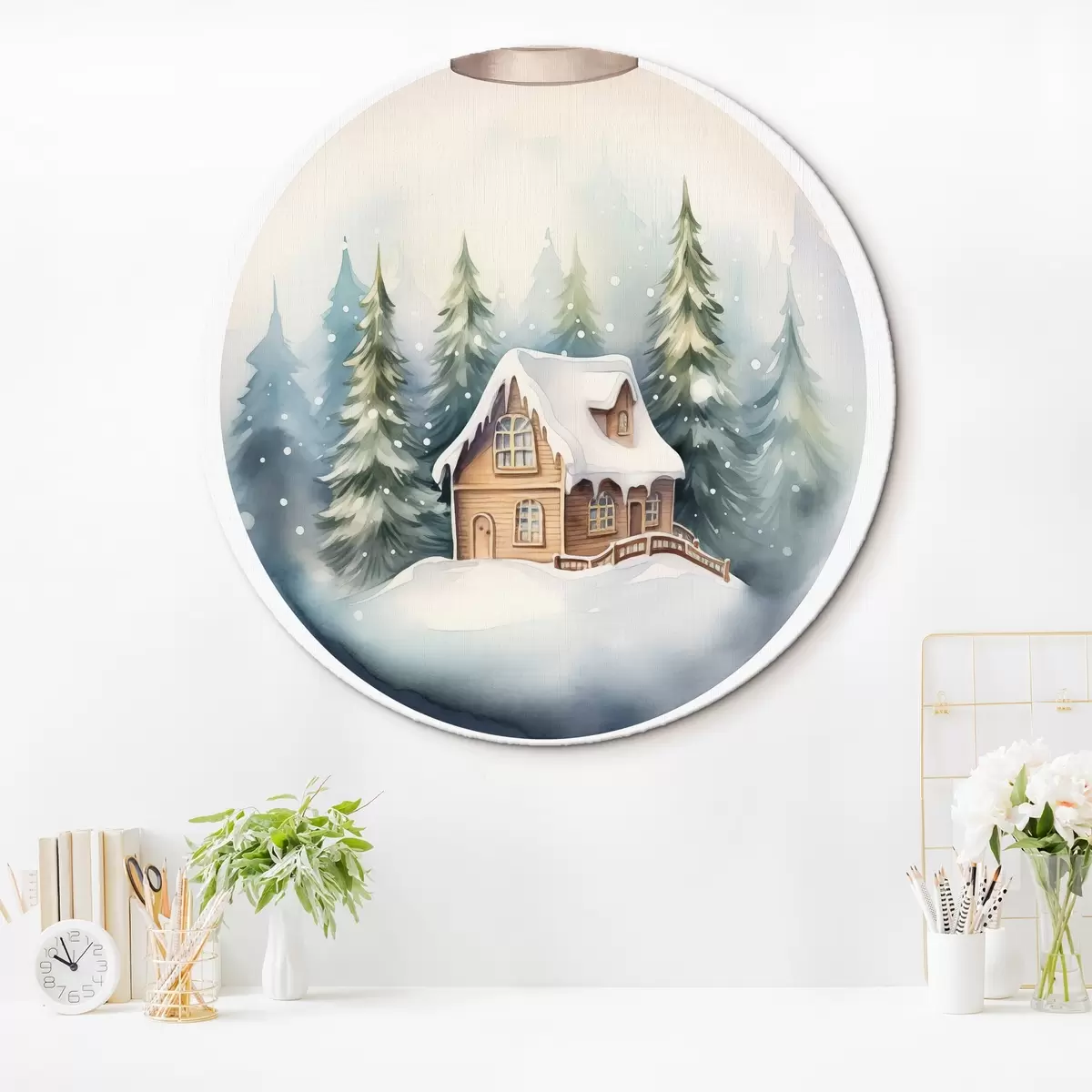 Pilt Akvarell kristallkeraamika talvise maastikuga, maja metsas, lumi Nr r41366