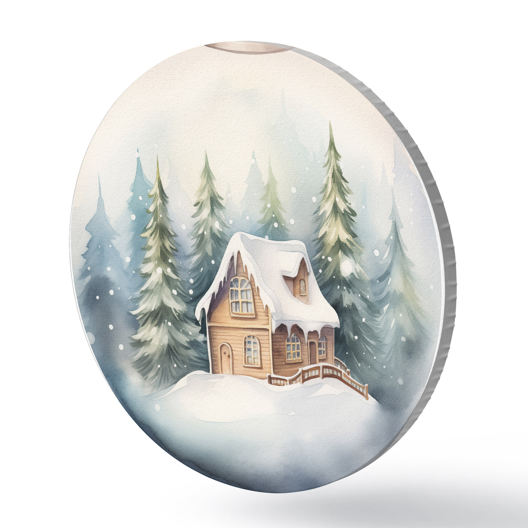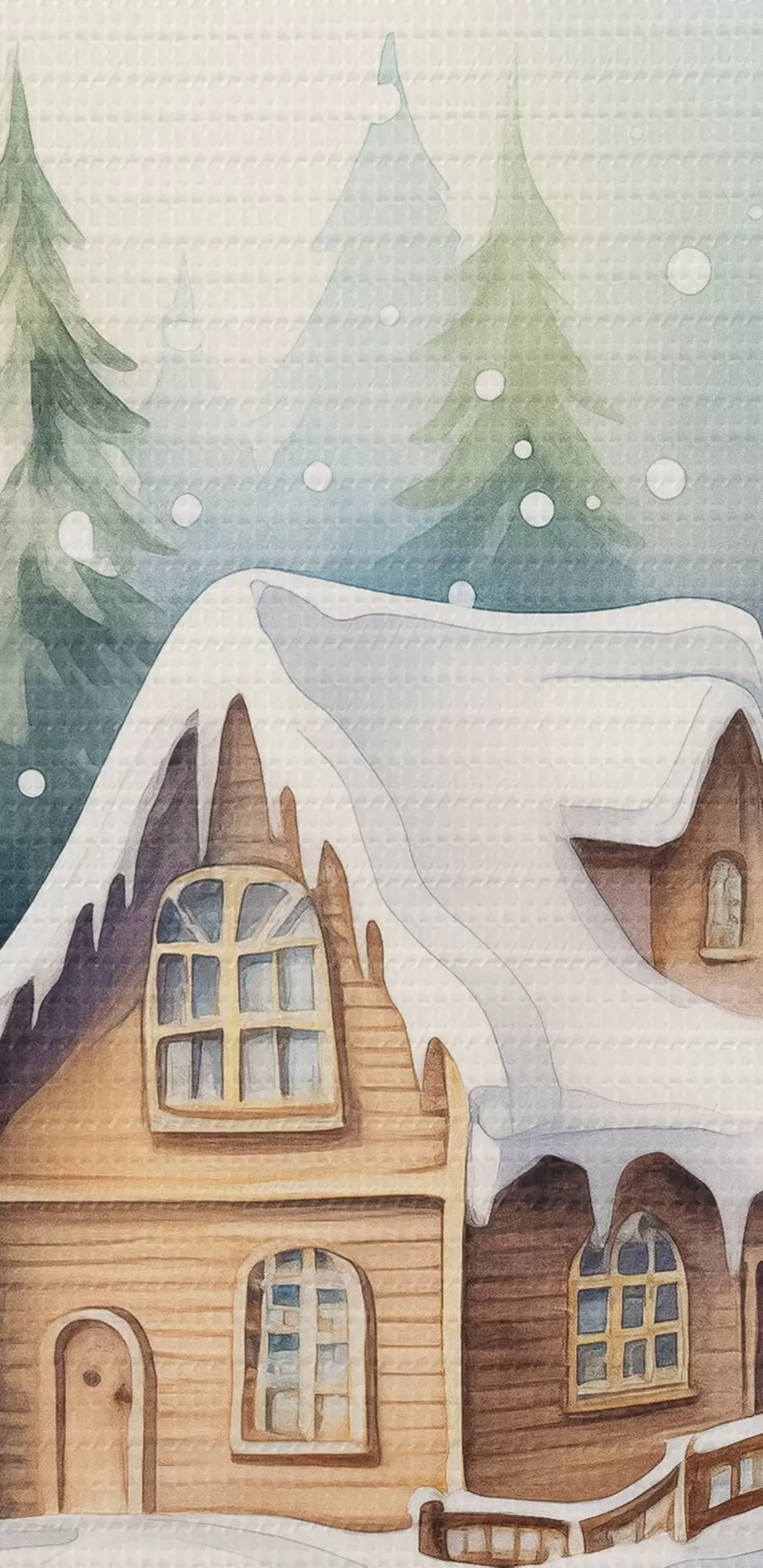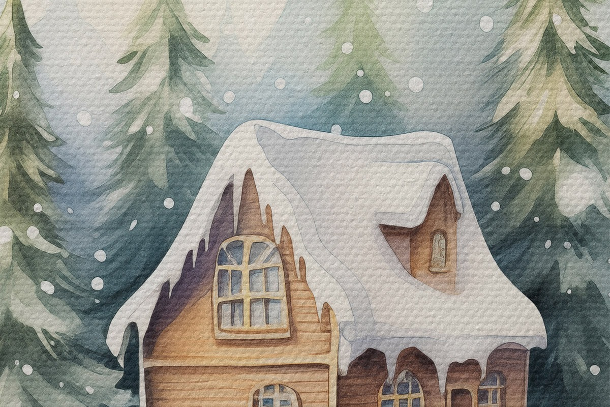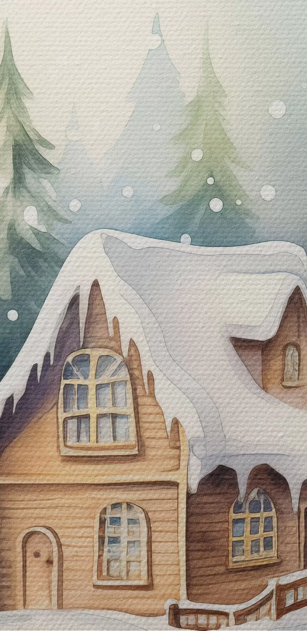 Pilt Akvarell kristallkeraamika talvise maastikuga, maja metsas, lumi Nr r41366