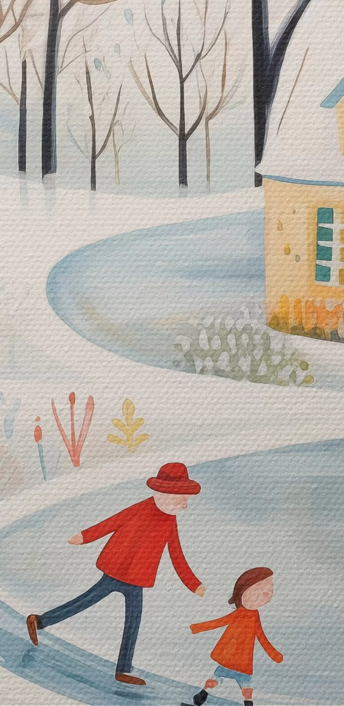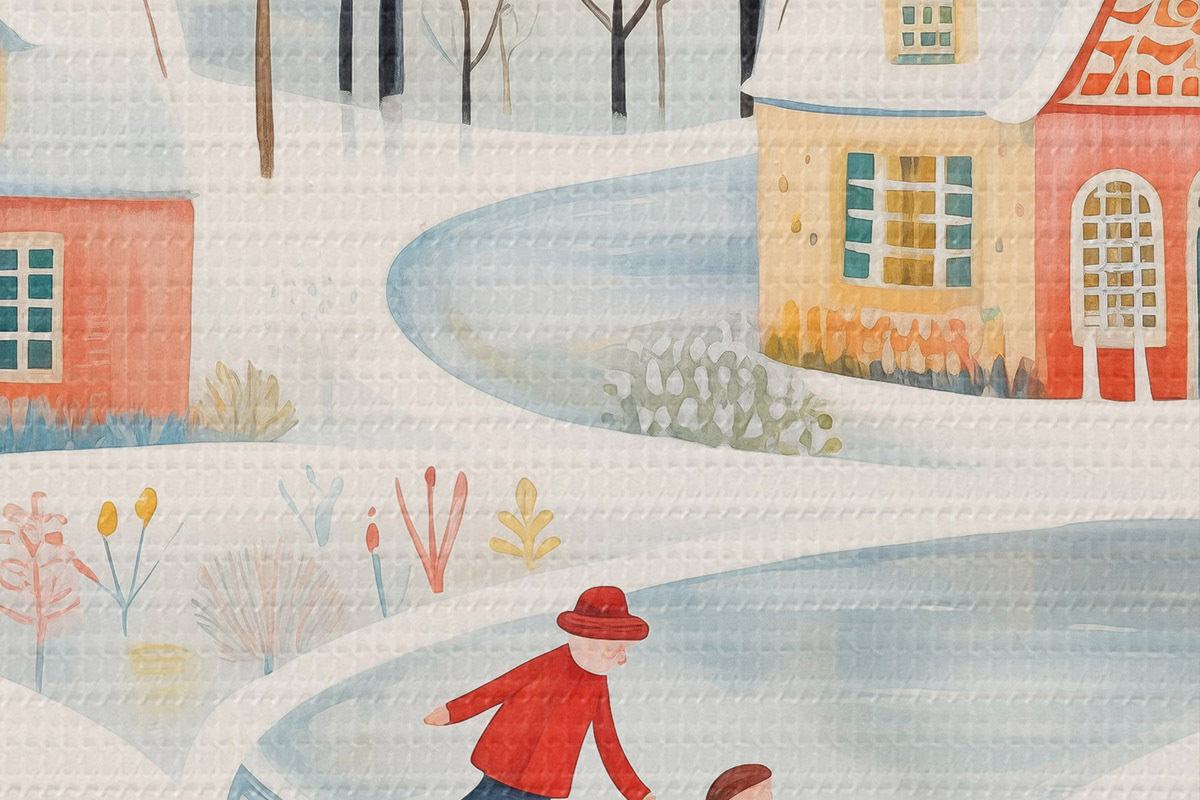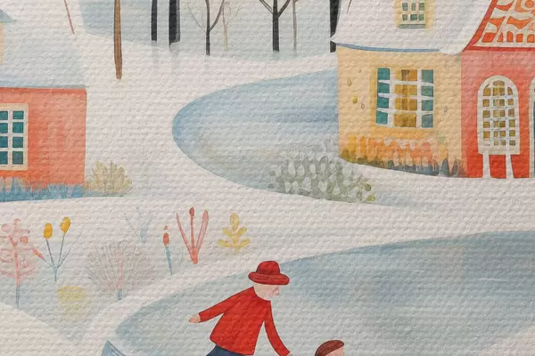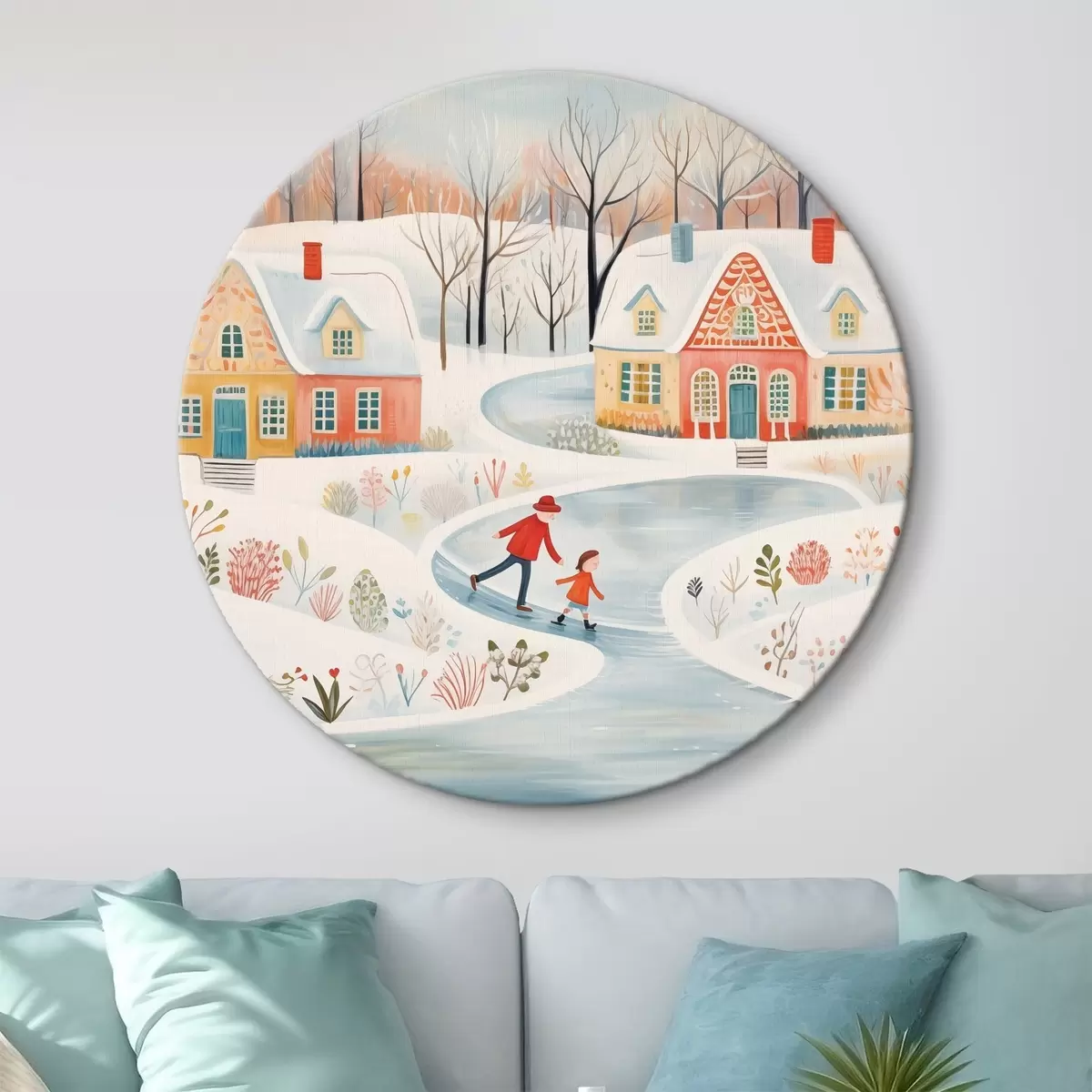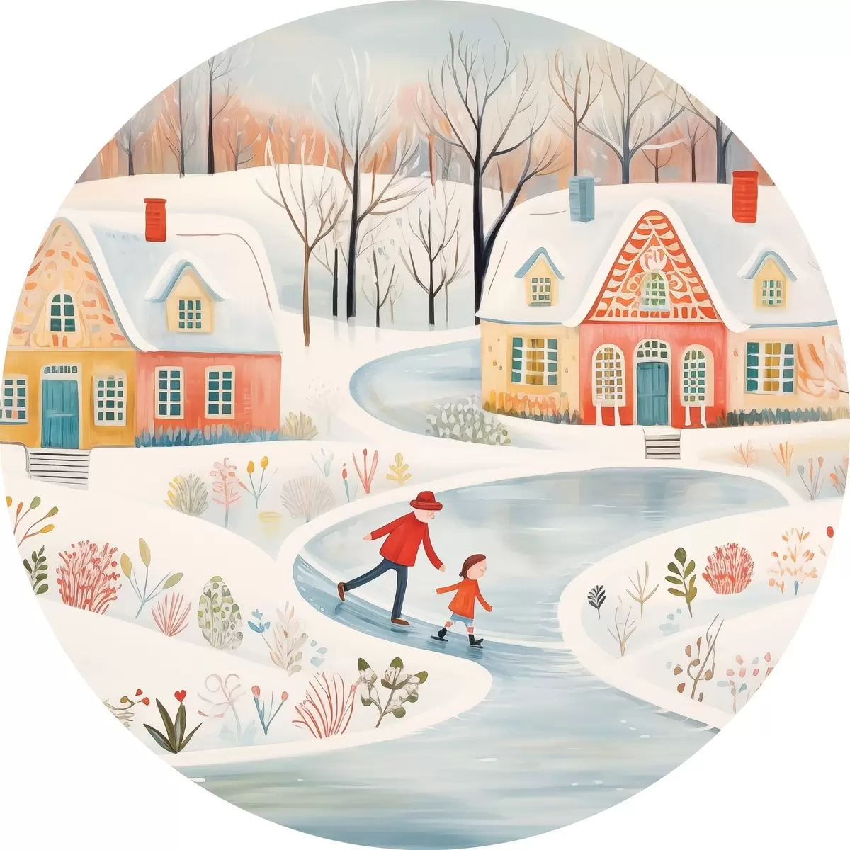 Pilt Talveküla, mets, lilled, uisud, värvilised majad Nr r41378