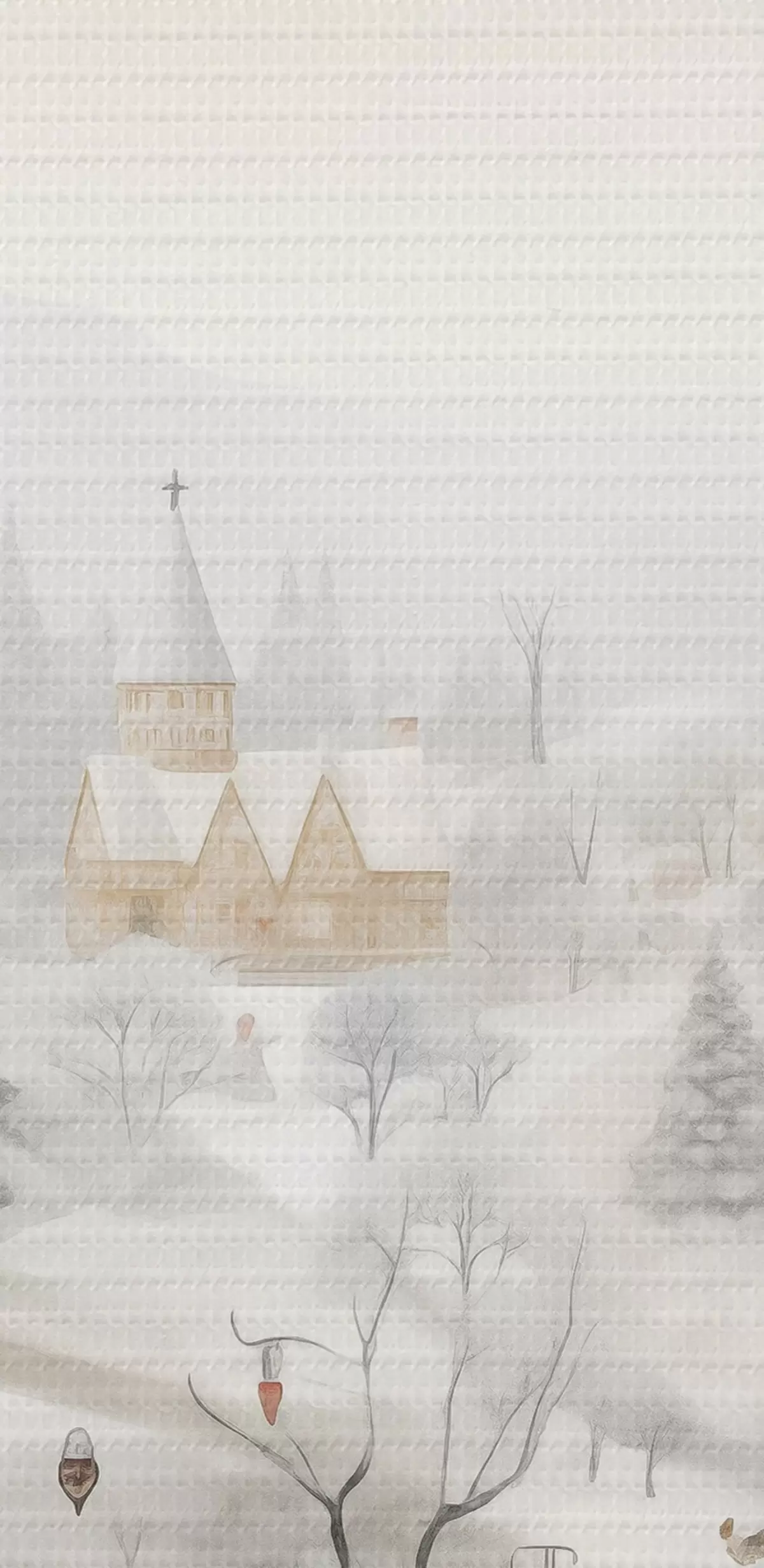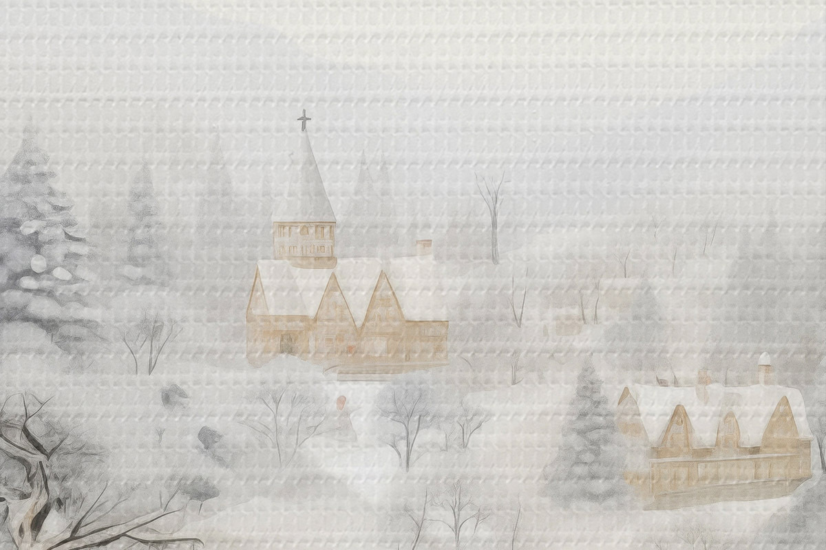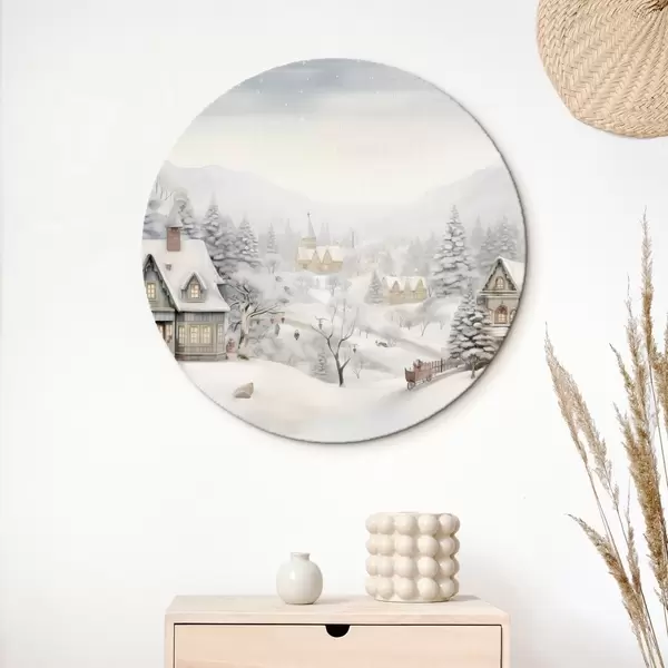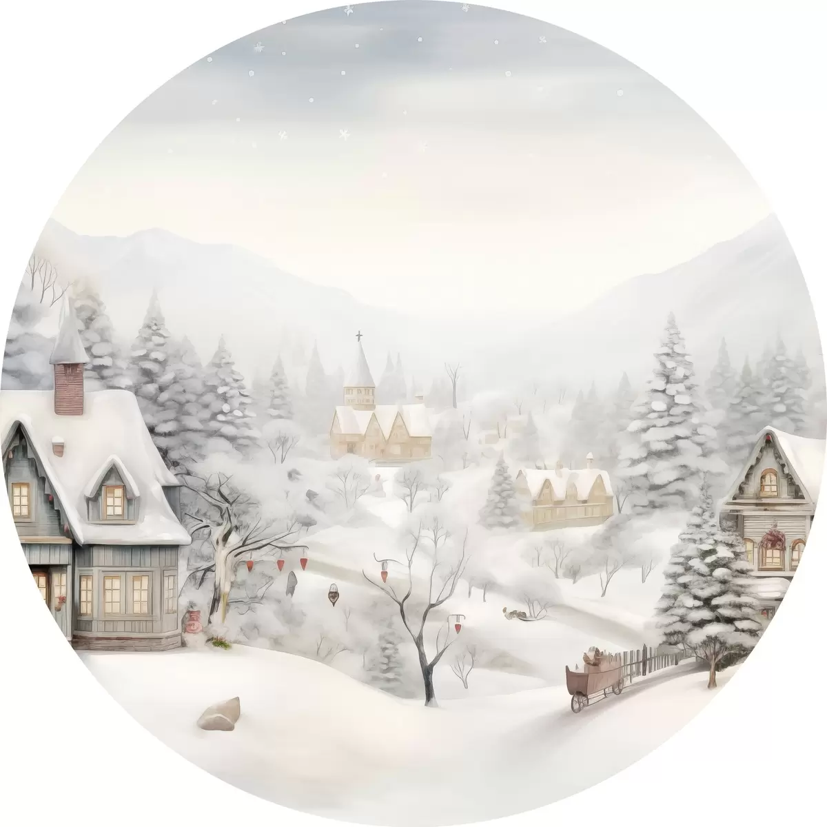 Pilt Kaunis talvine maastik küla, mändide, majade, mägedega Nr r41384