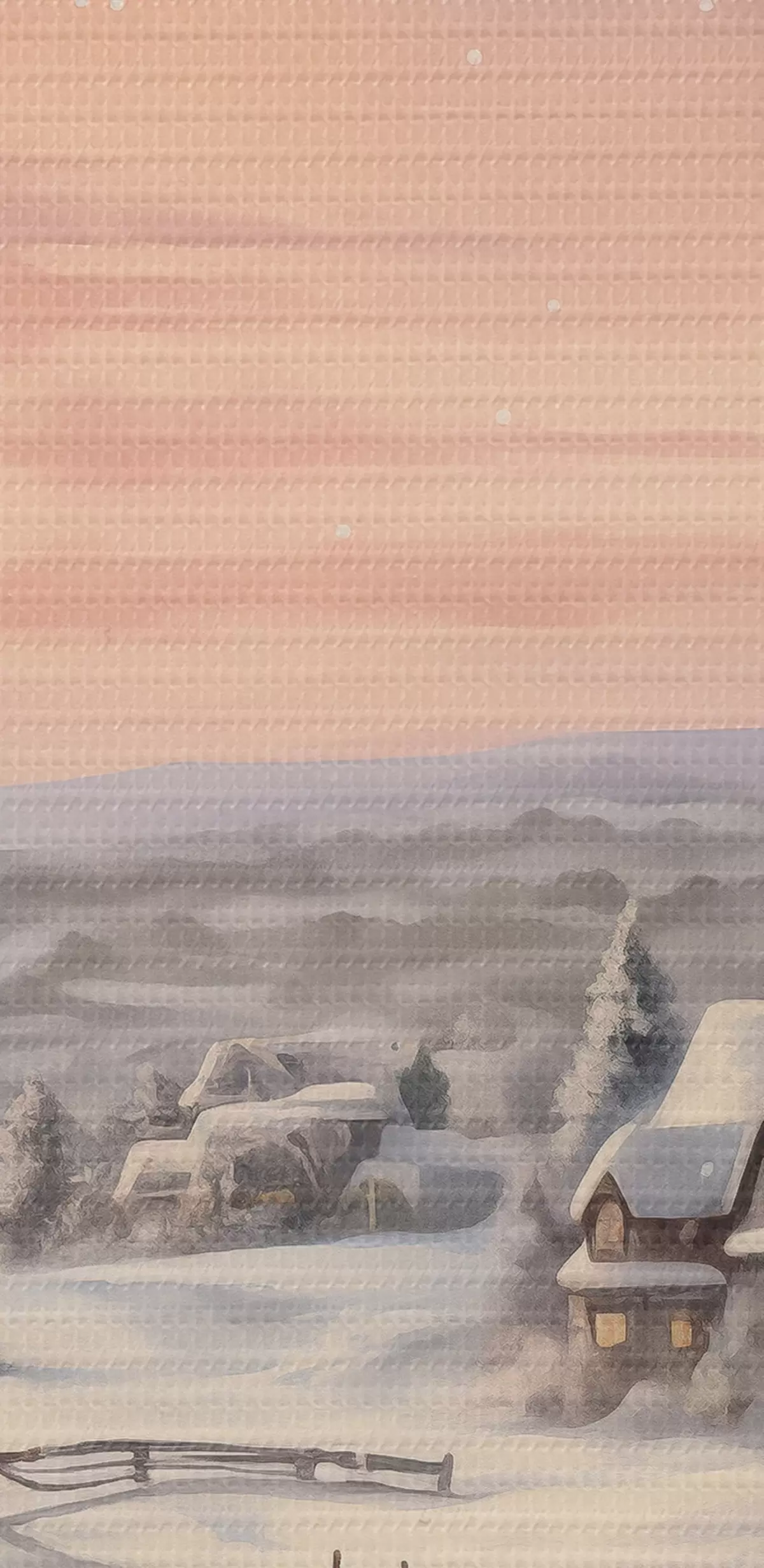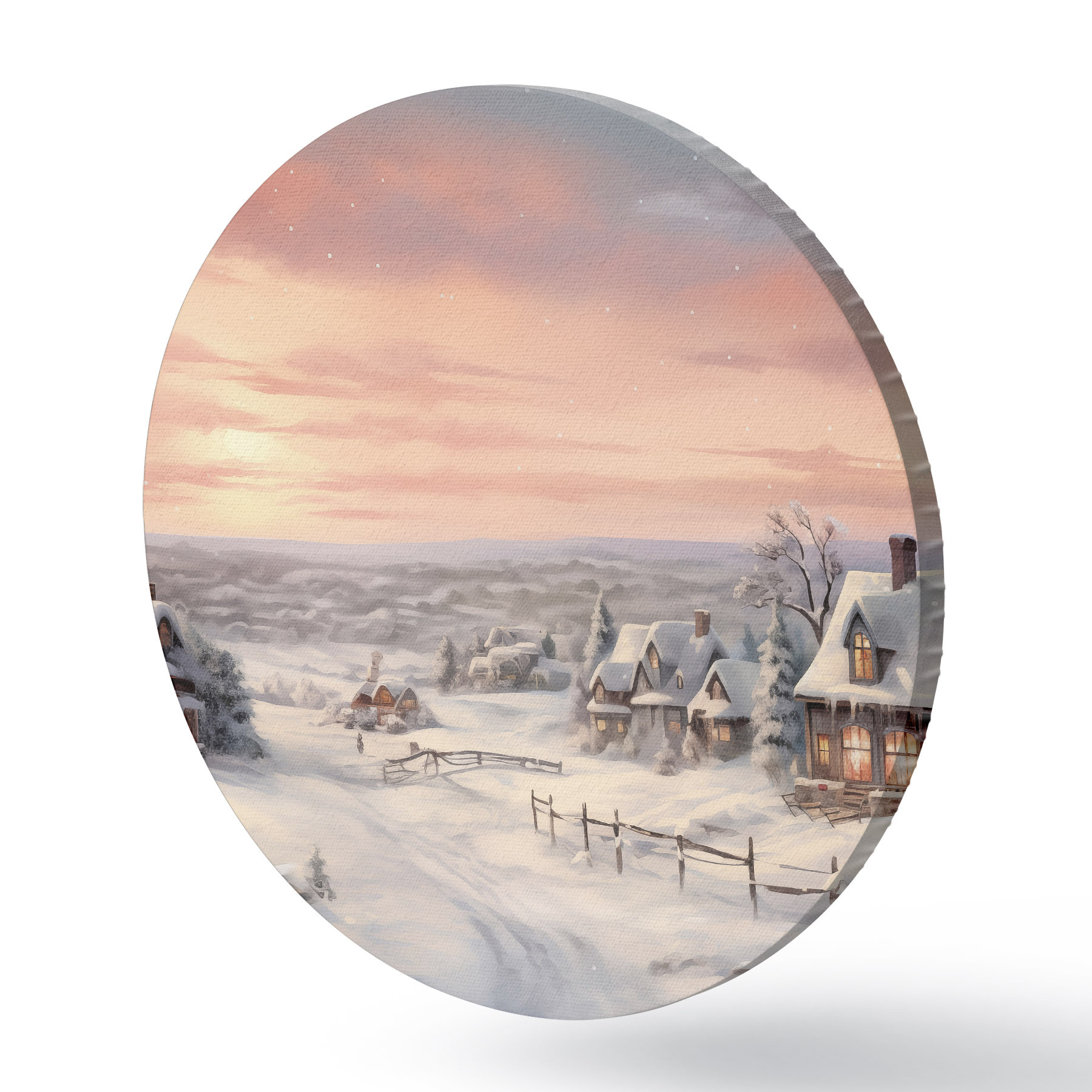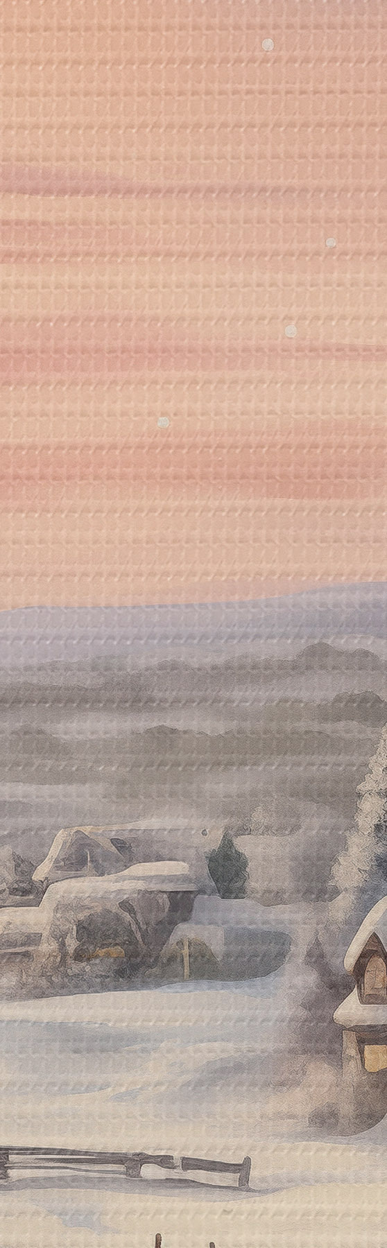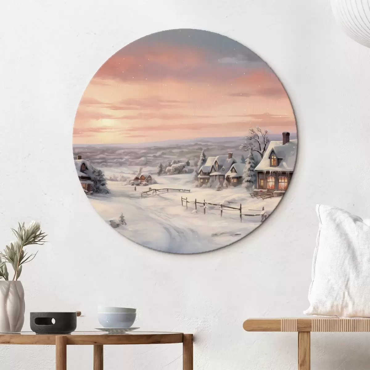 Pilt Päikeseloojang talvekülas, maaliline, akvarell, lumehelbed Nr r41386