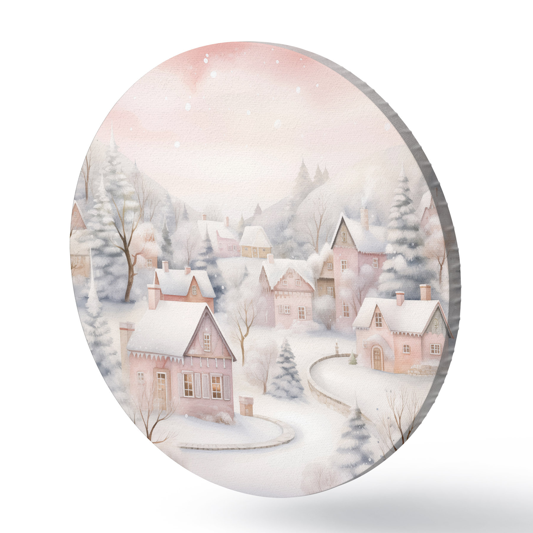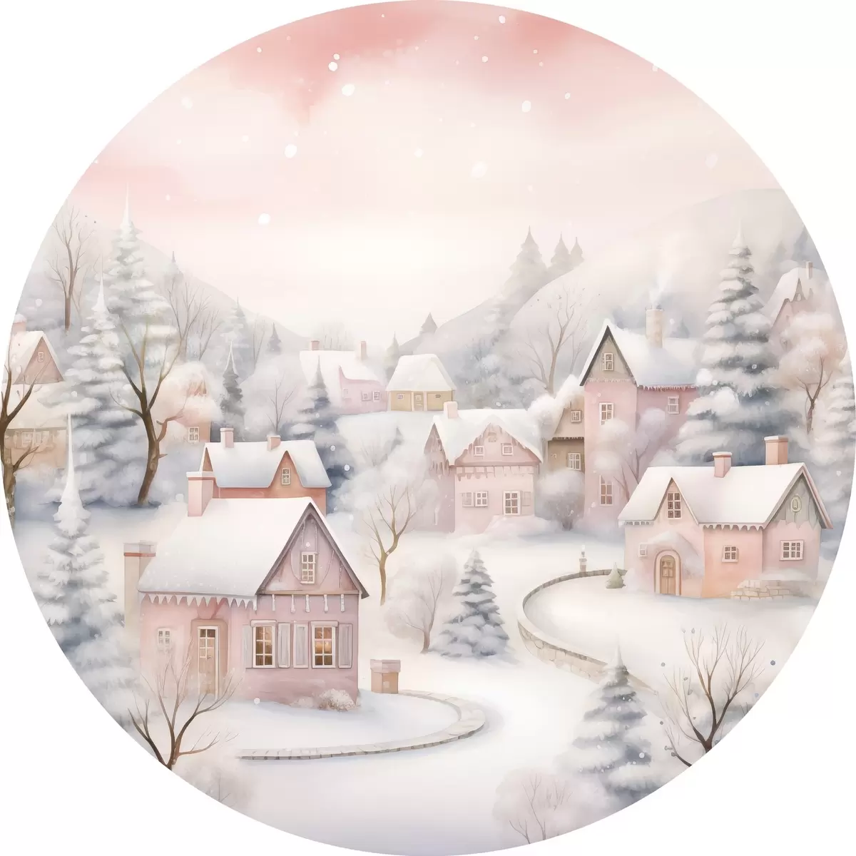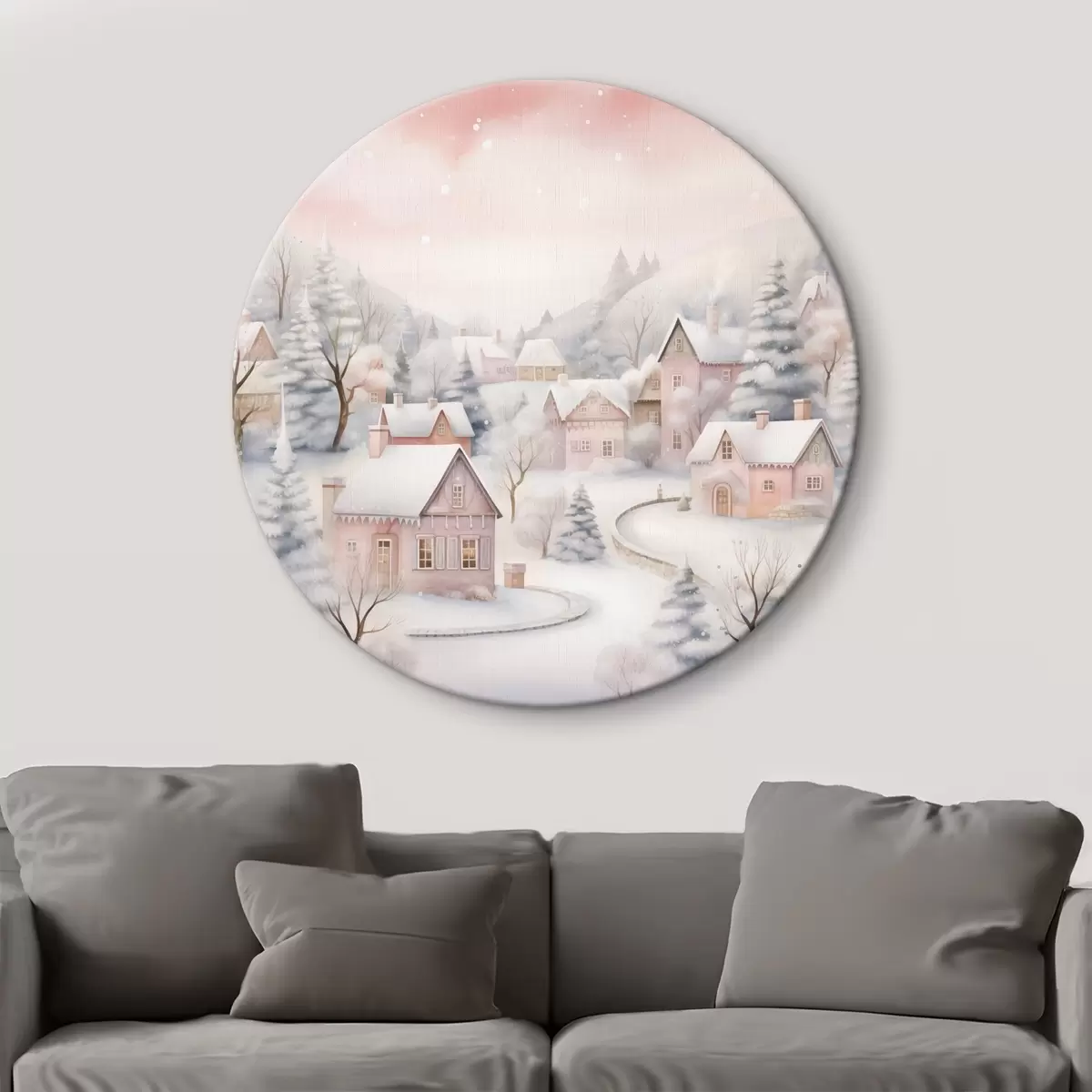 Pilt Akvarell talveküla, männimets, majad, mäed, pehmed pastellvärvid Nr r41388