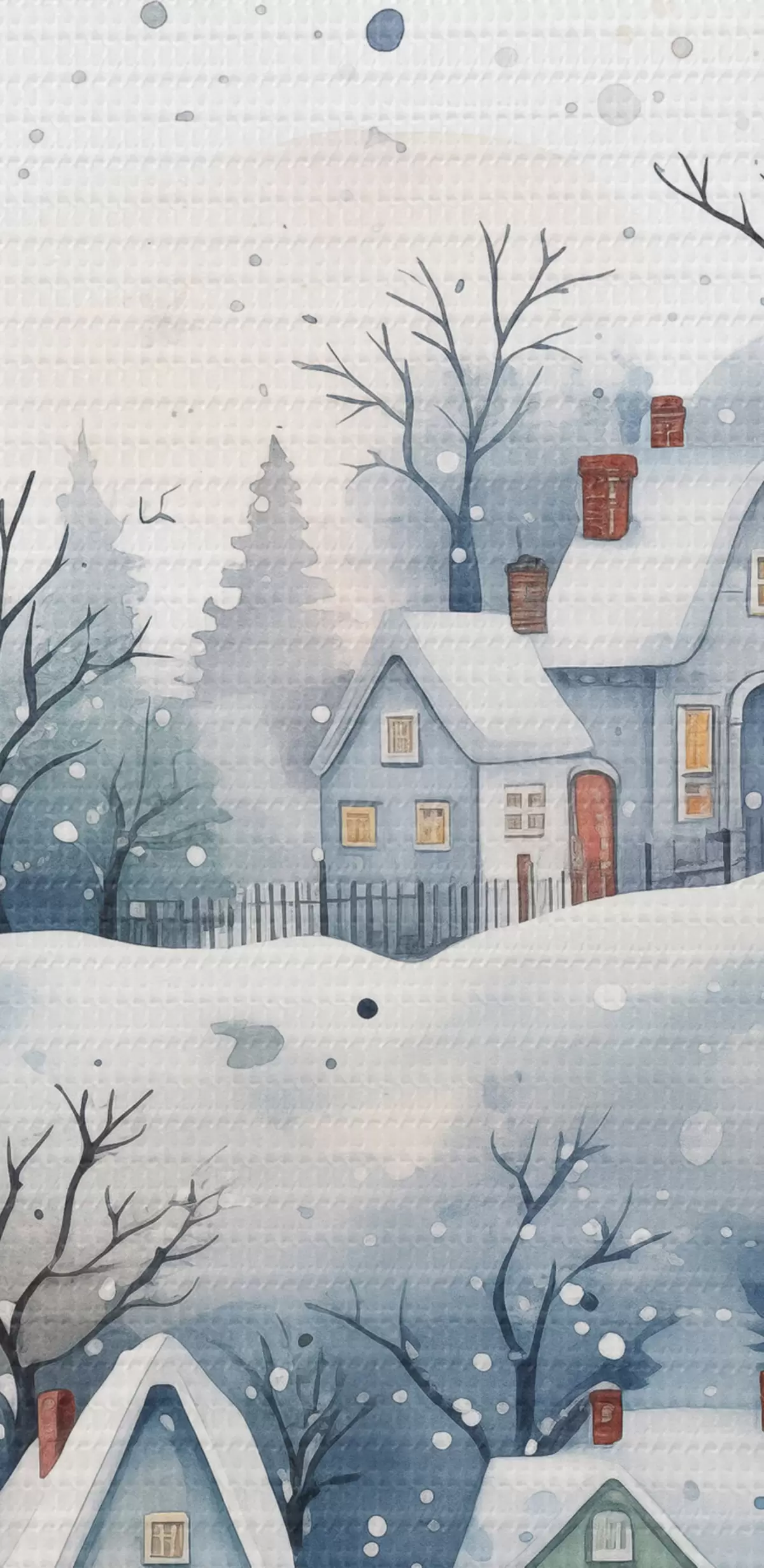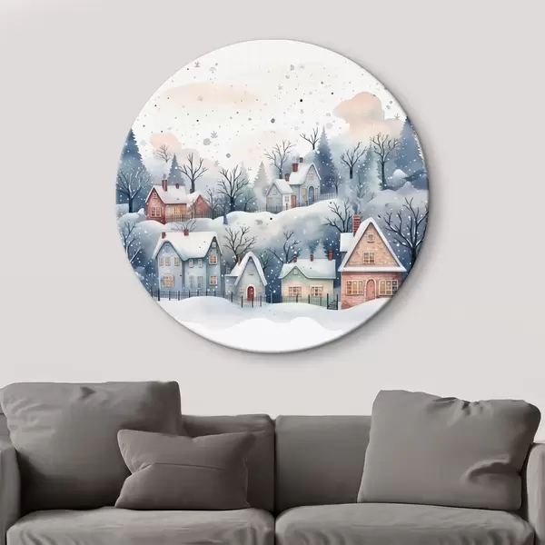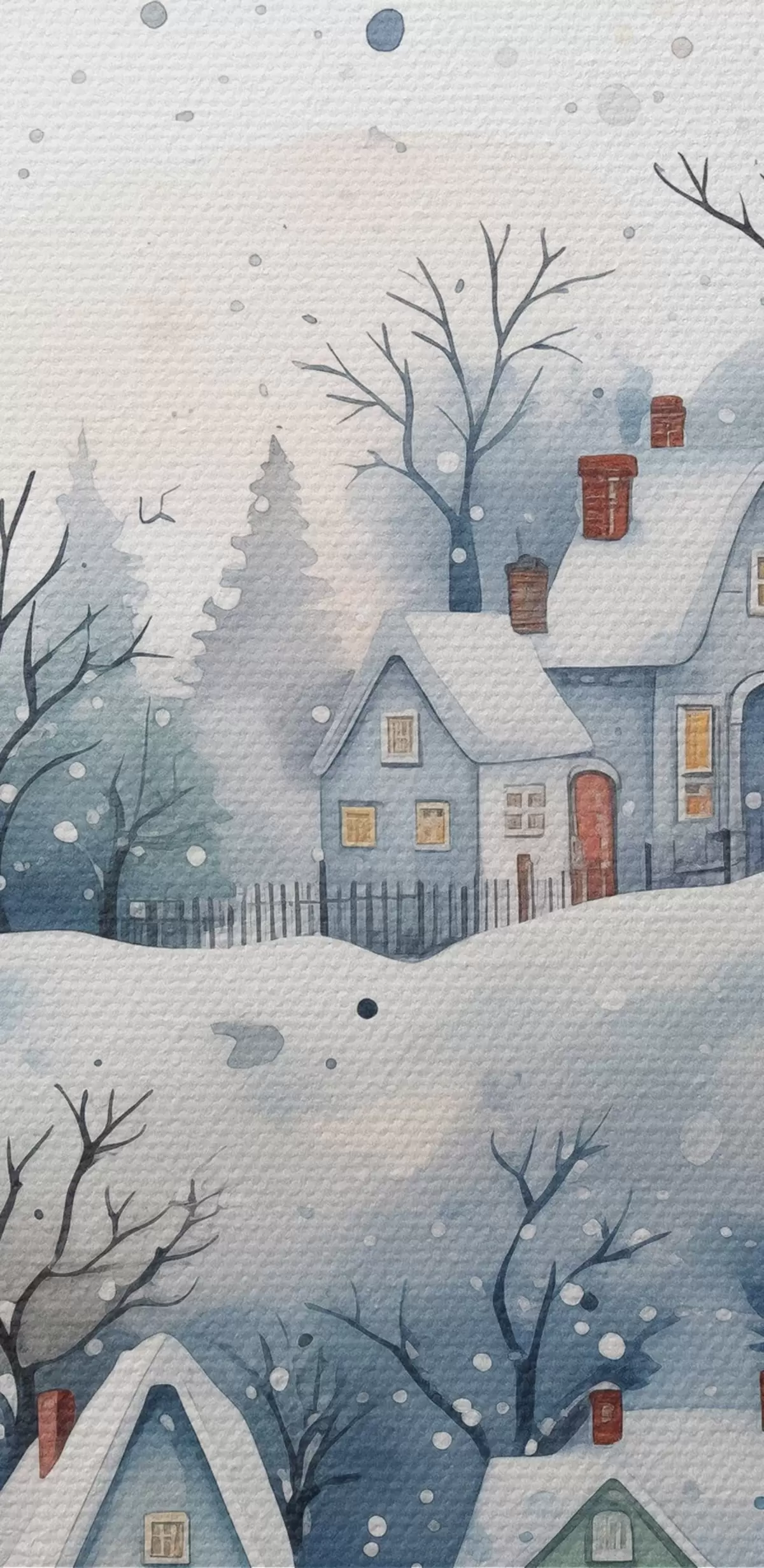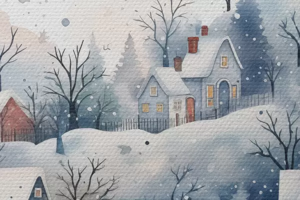 Pilt Akvarell talvemaastik majade ja männimetsaga Nr r41389