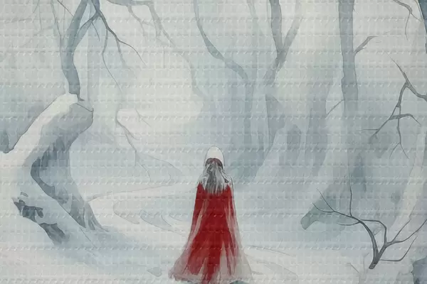Ümmargused maalid Punases mantlis mees keset talvist metsa r41438