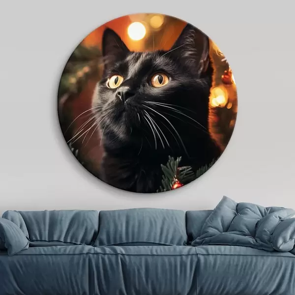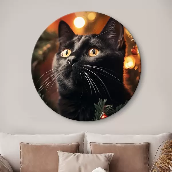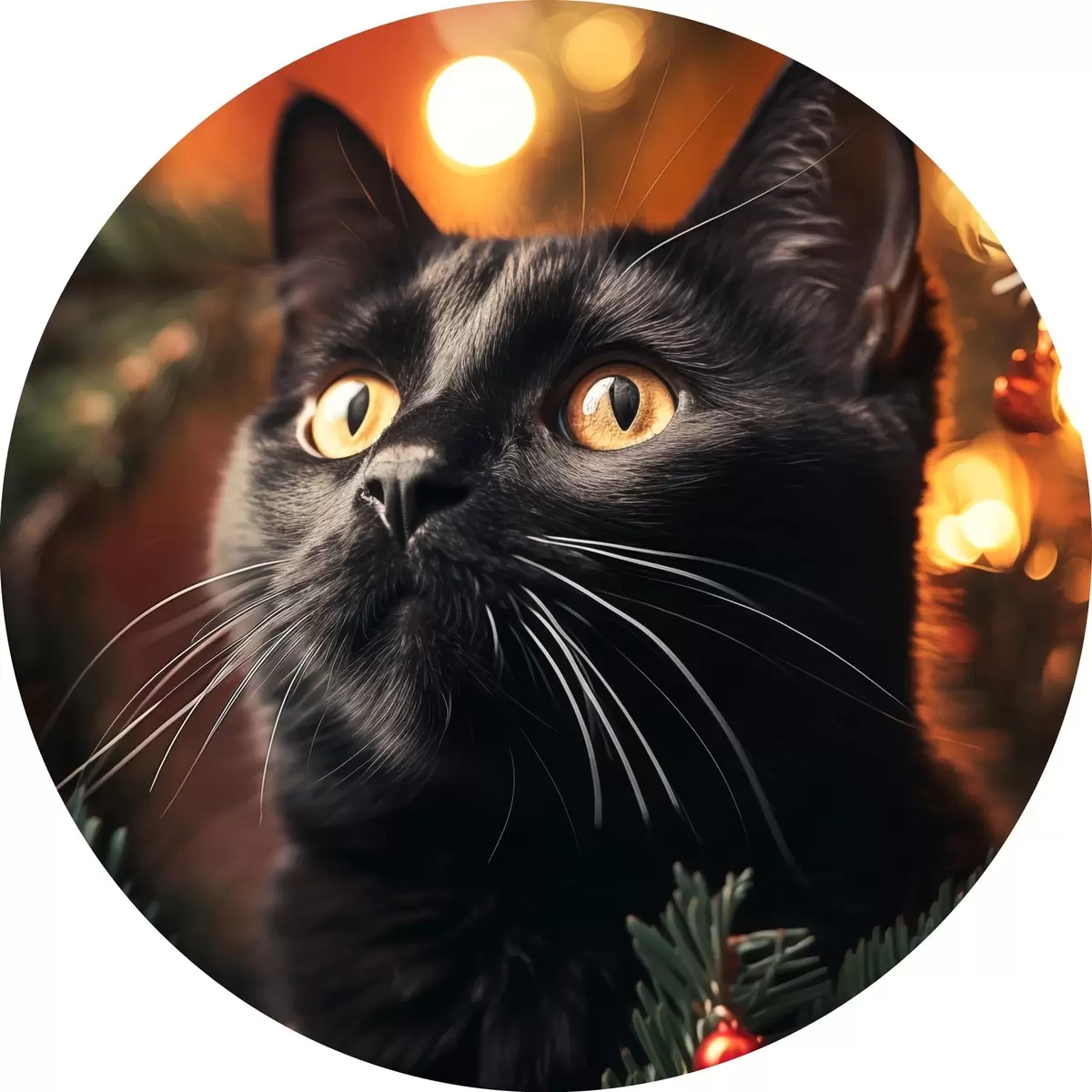 Pilt Must kass uusaastatulede taustal Nr r41441